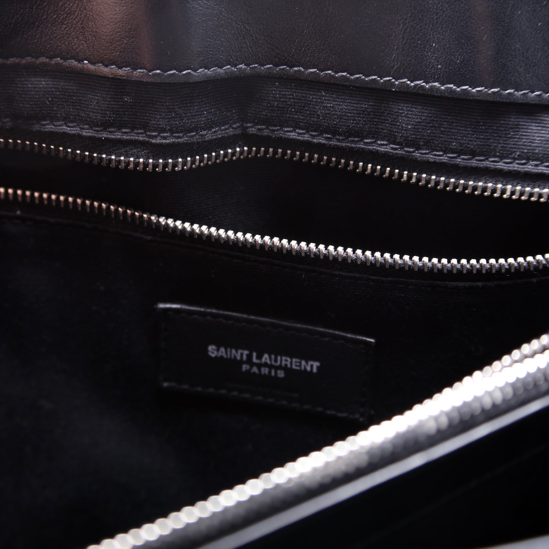 Interior: The interior is clean and features two open sections and two zip closure pockets.