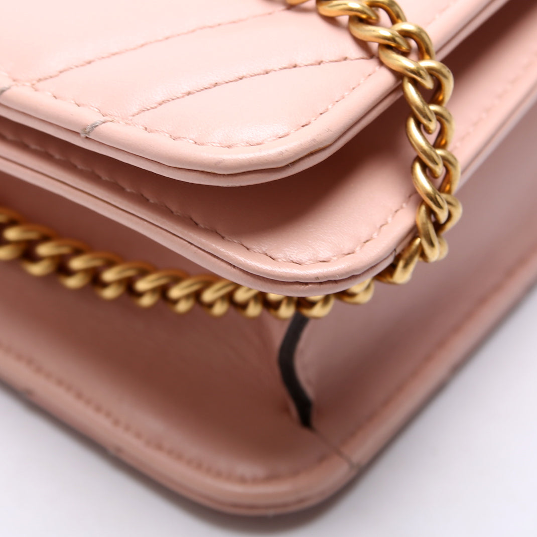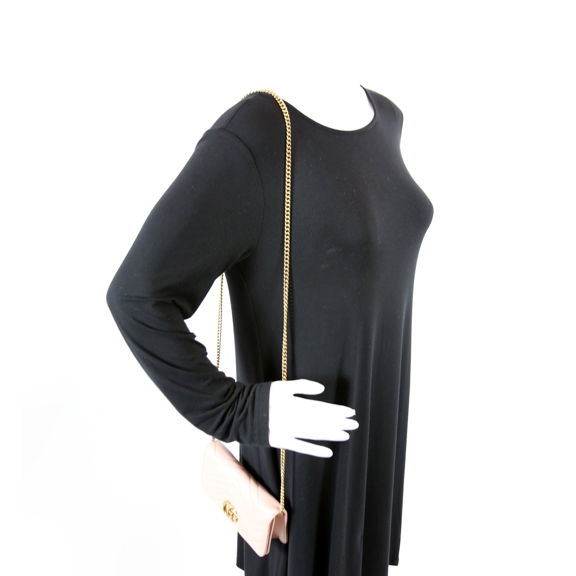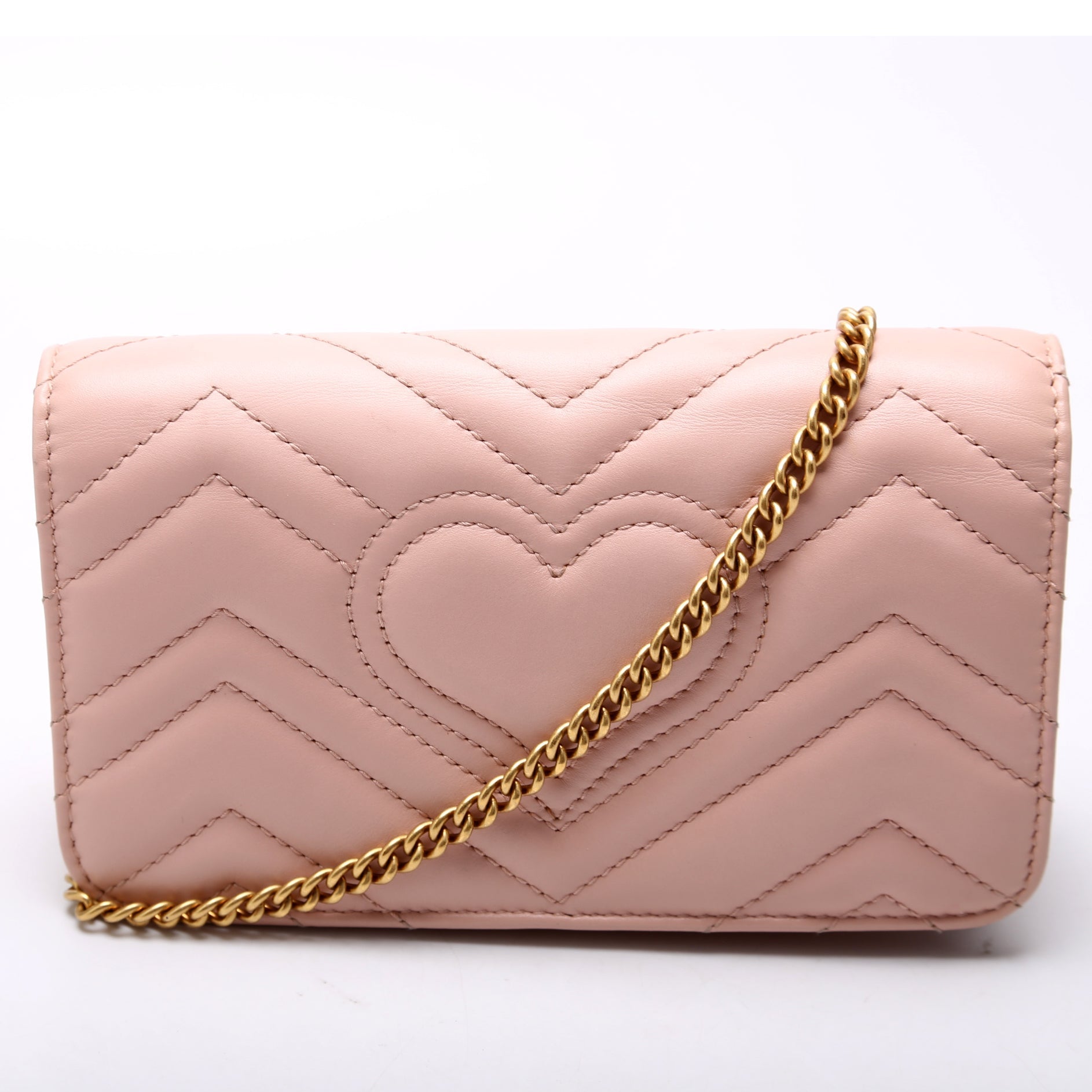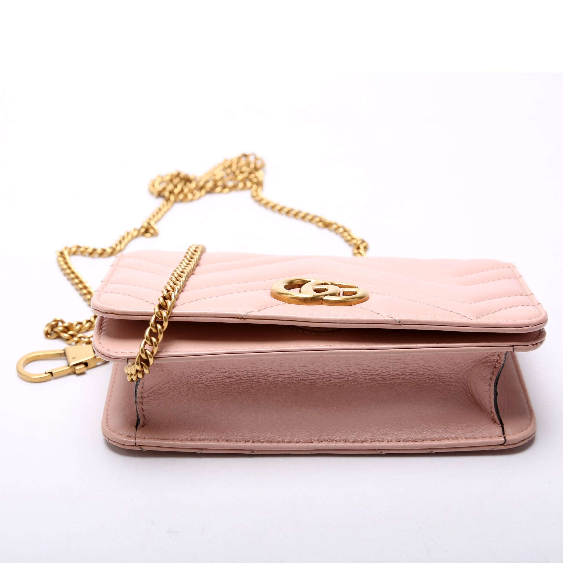 This Marmont Mini Bagis eye catching bag. The exterior is in the classic Gucci Marmont leather.