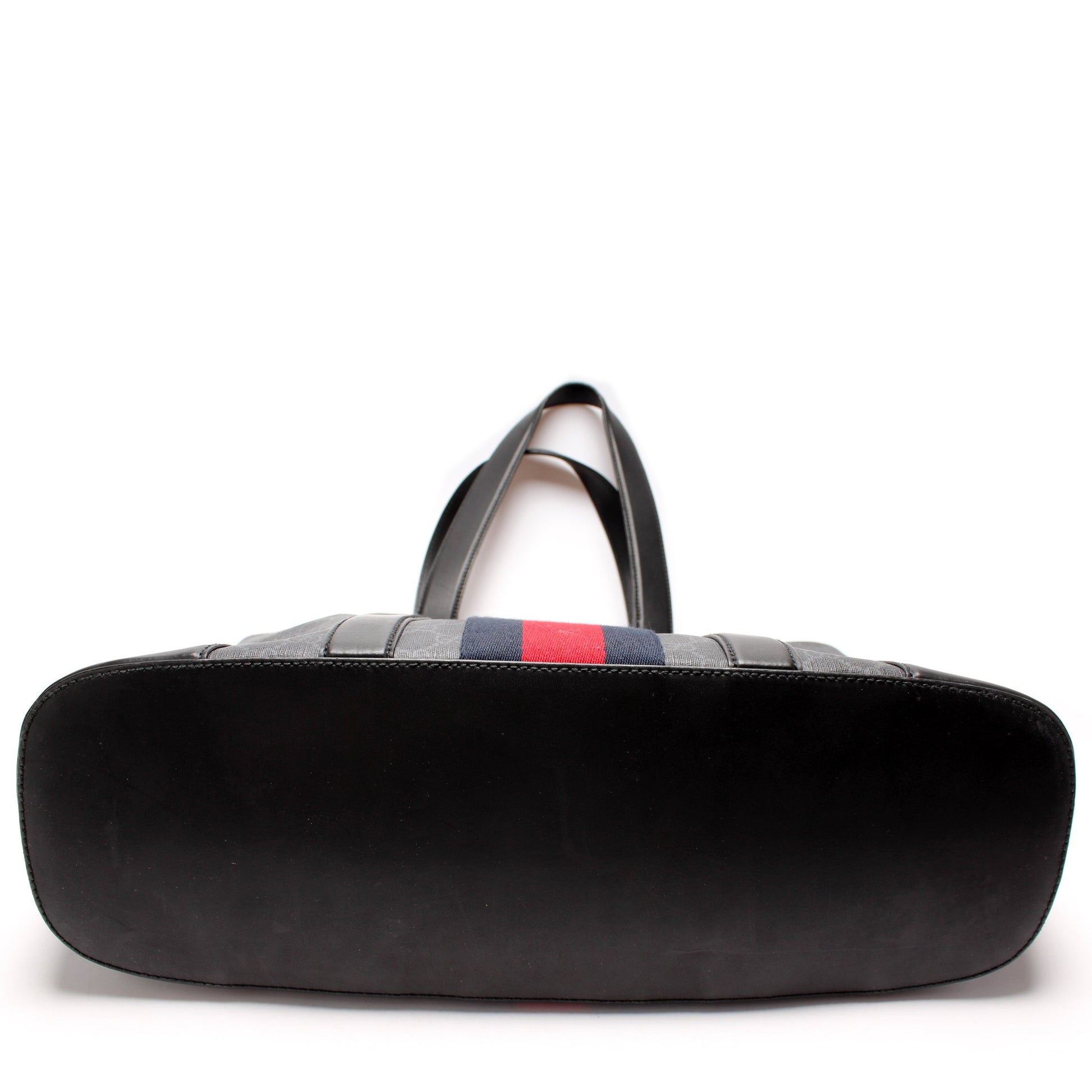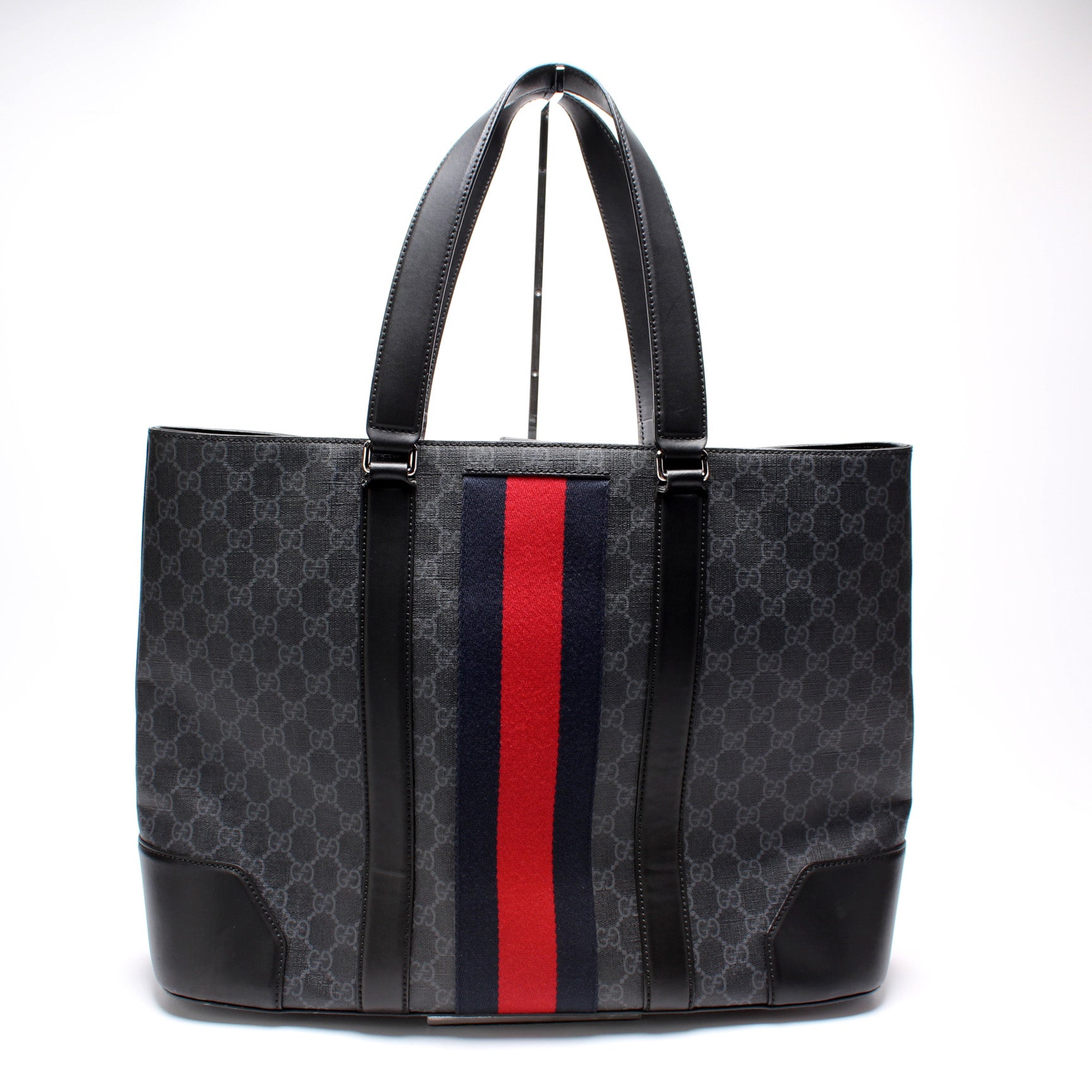 This Gucci GG Supreme Tote is d 100% . The exterior is in the classic Gucci GG Supreme coated canvas.