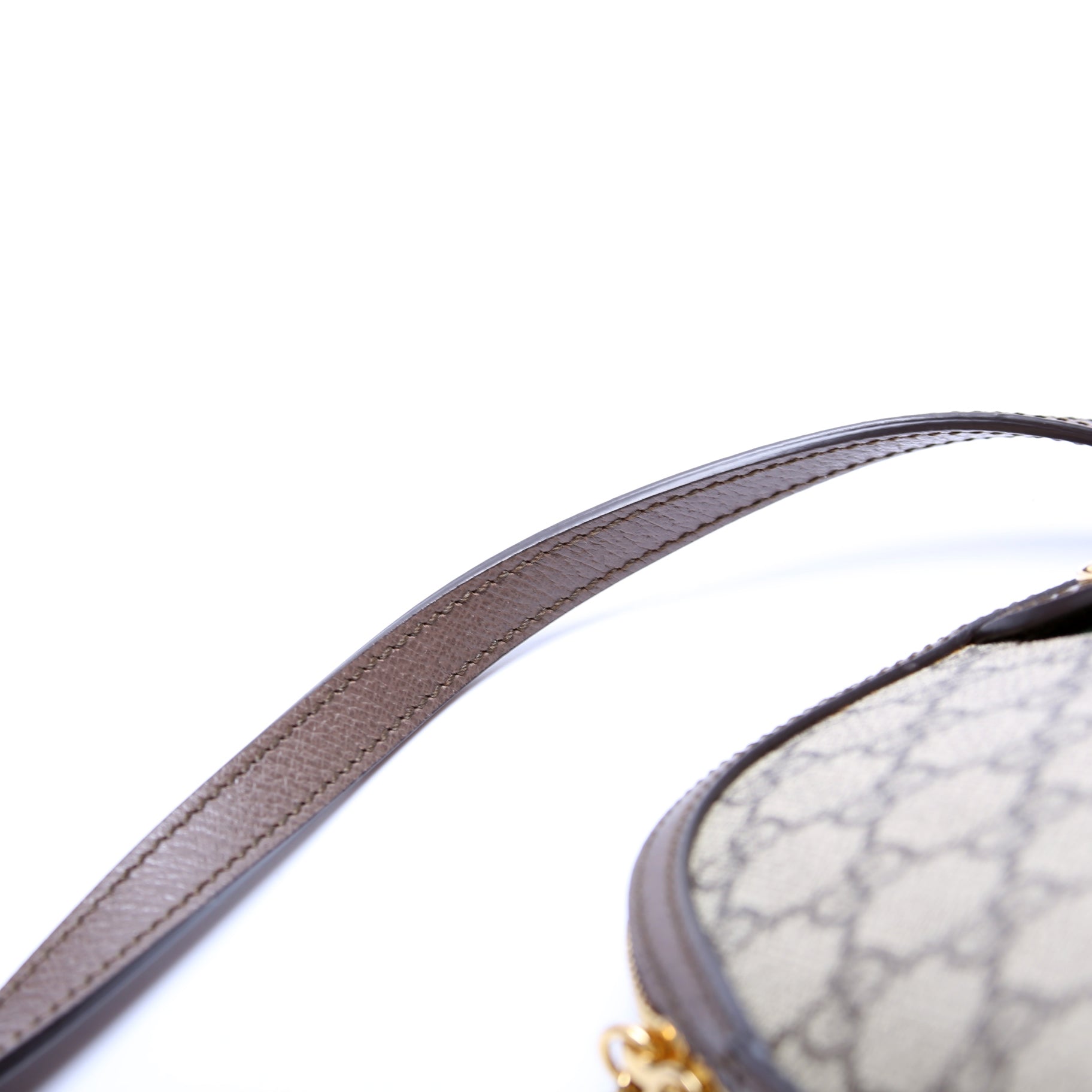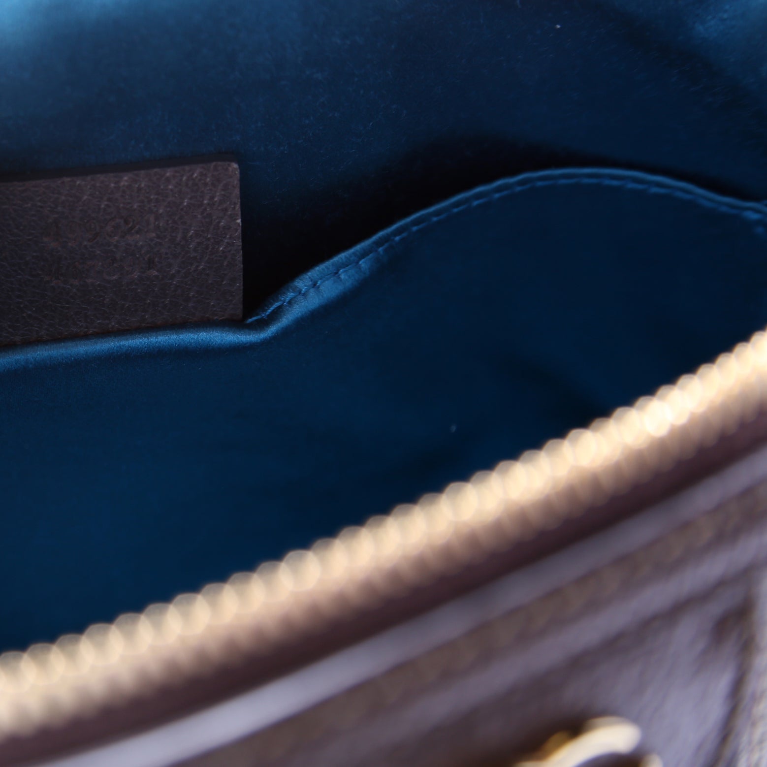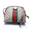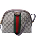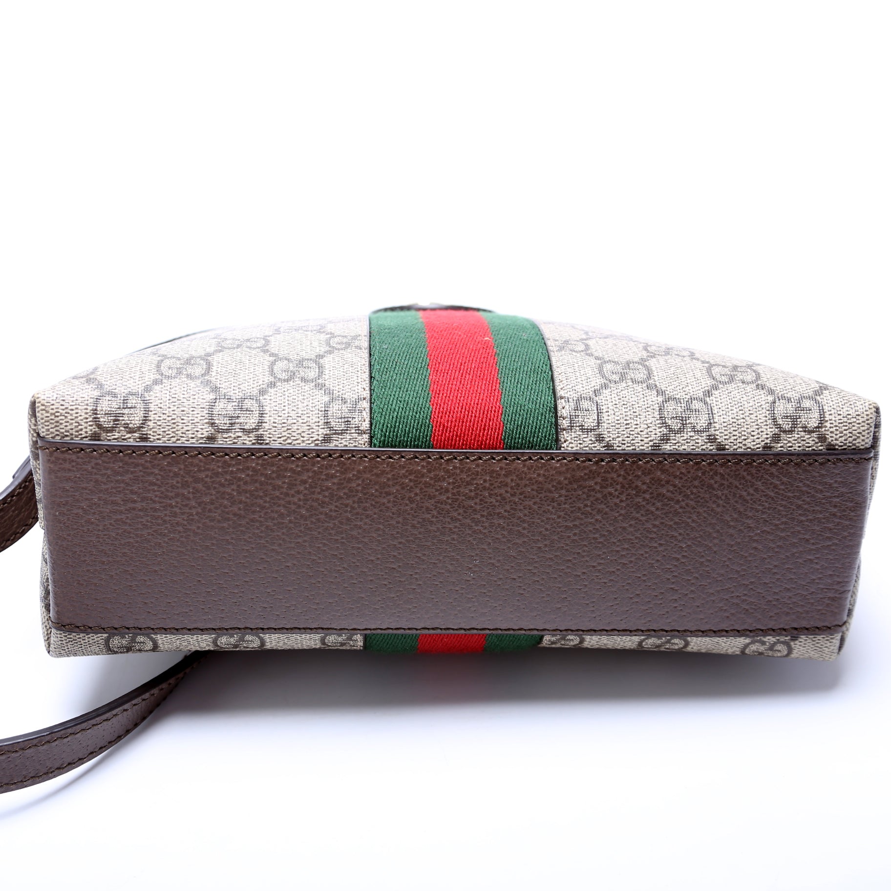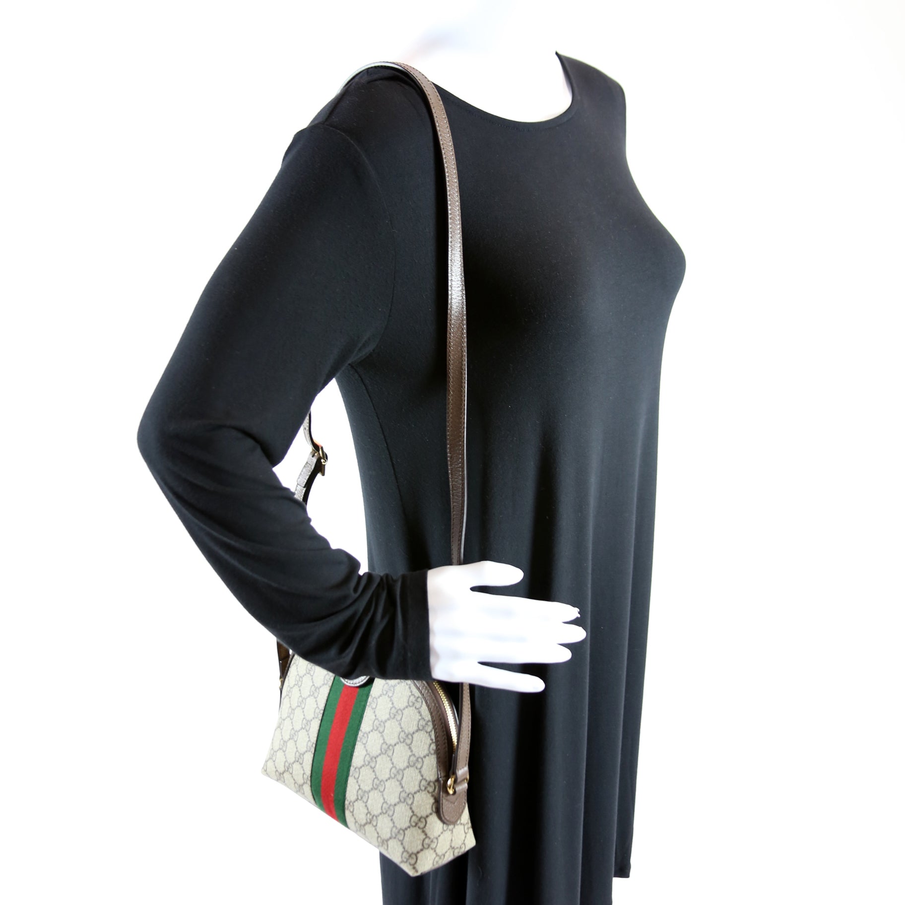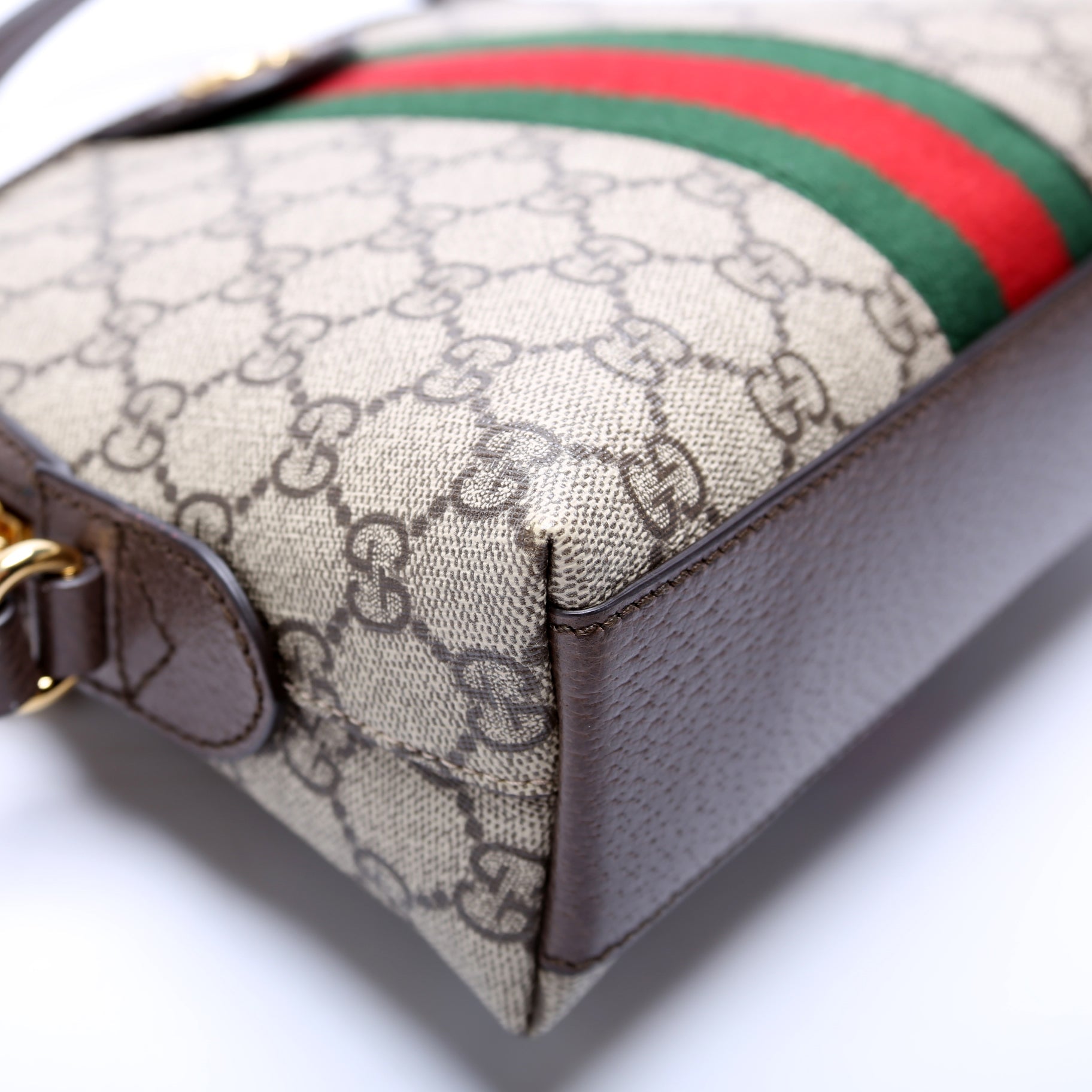 This Gucci Ophidia GG Small Crossbodyis eye catching bag. The exterior is in the classic Gucci GG Supreme coated canvas.