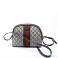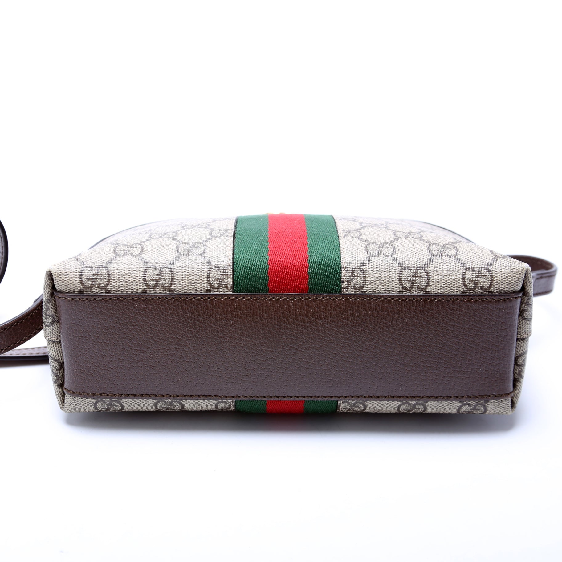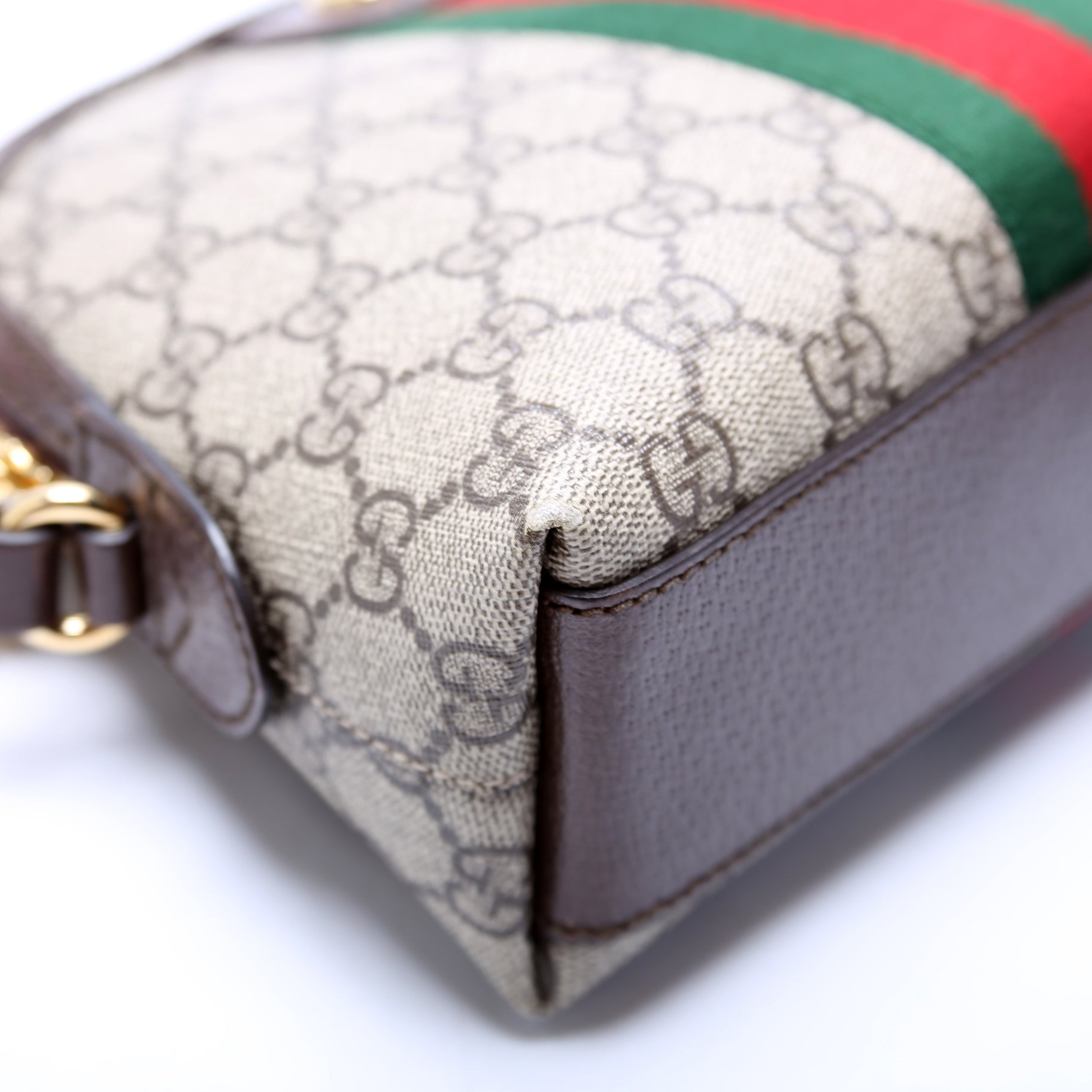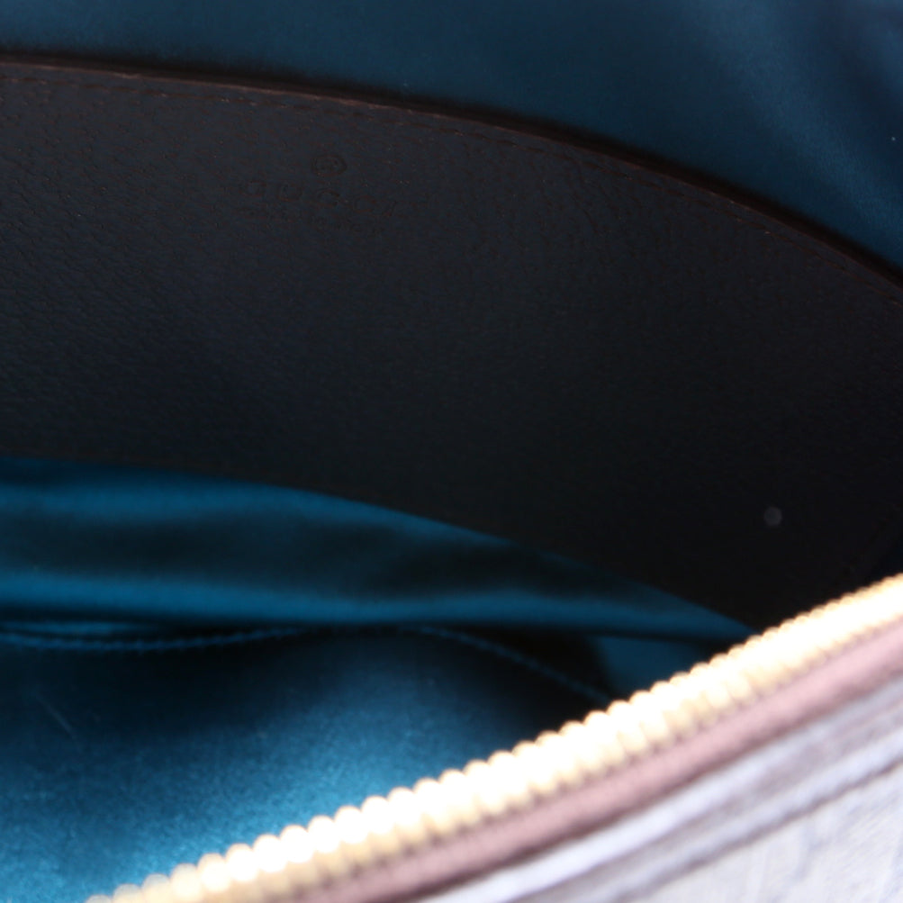 This Gucci Ophidia GG Small Crossbodyis eye catching bag. The exterior is in the classic Gucci GG Supreme coated canvas.
