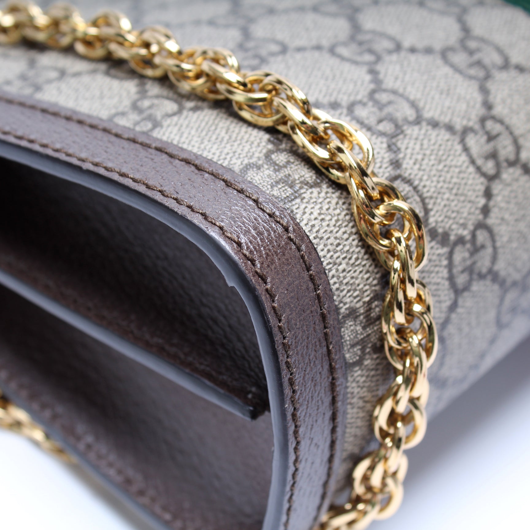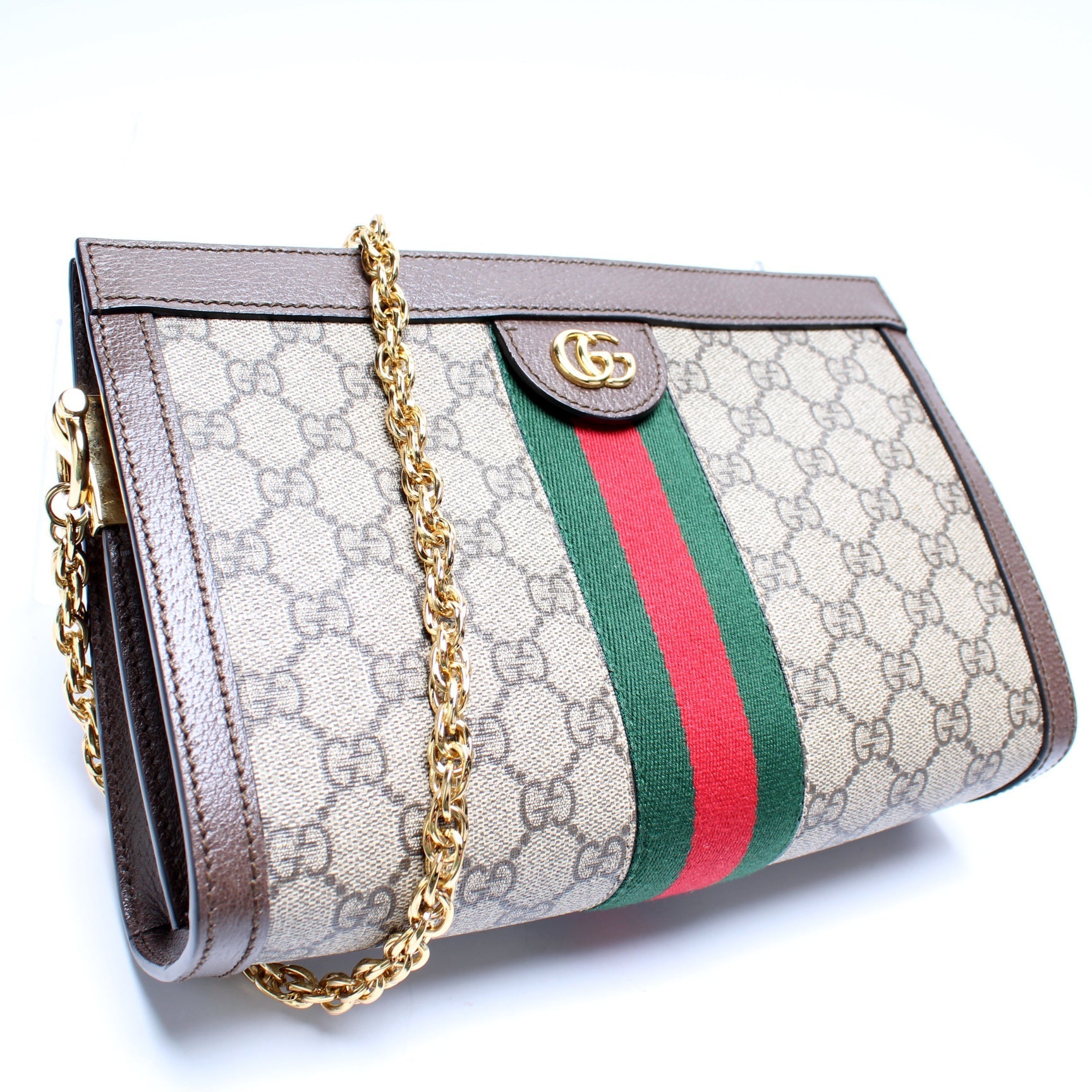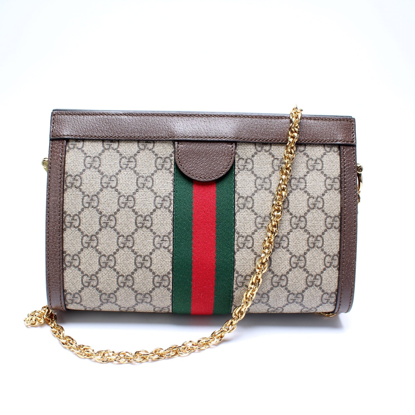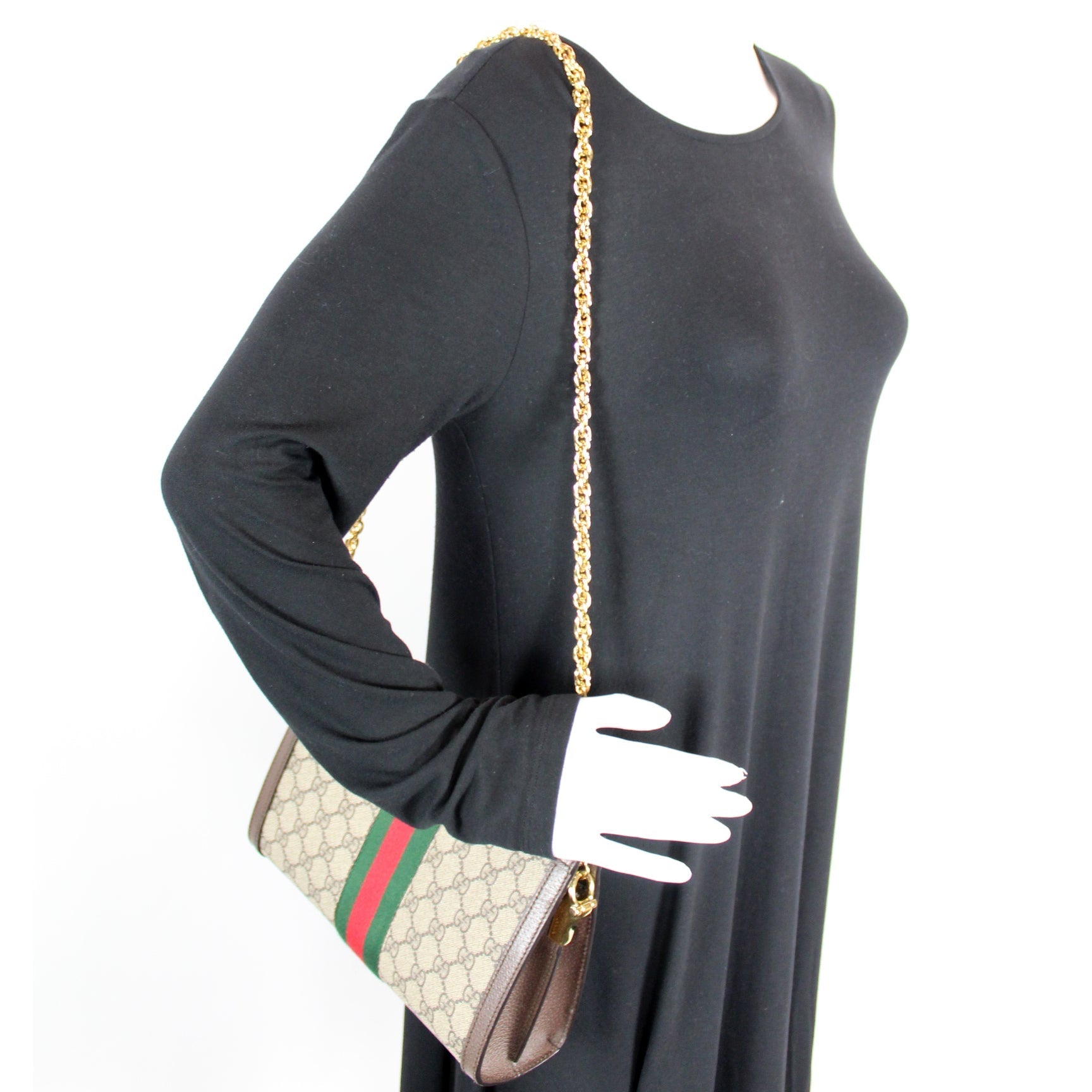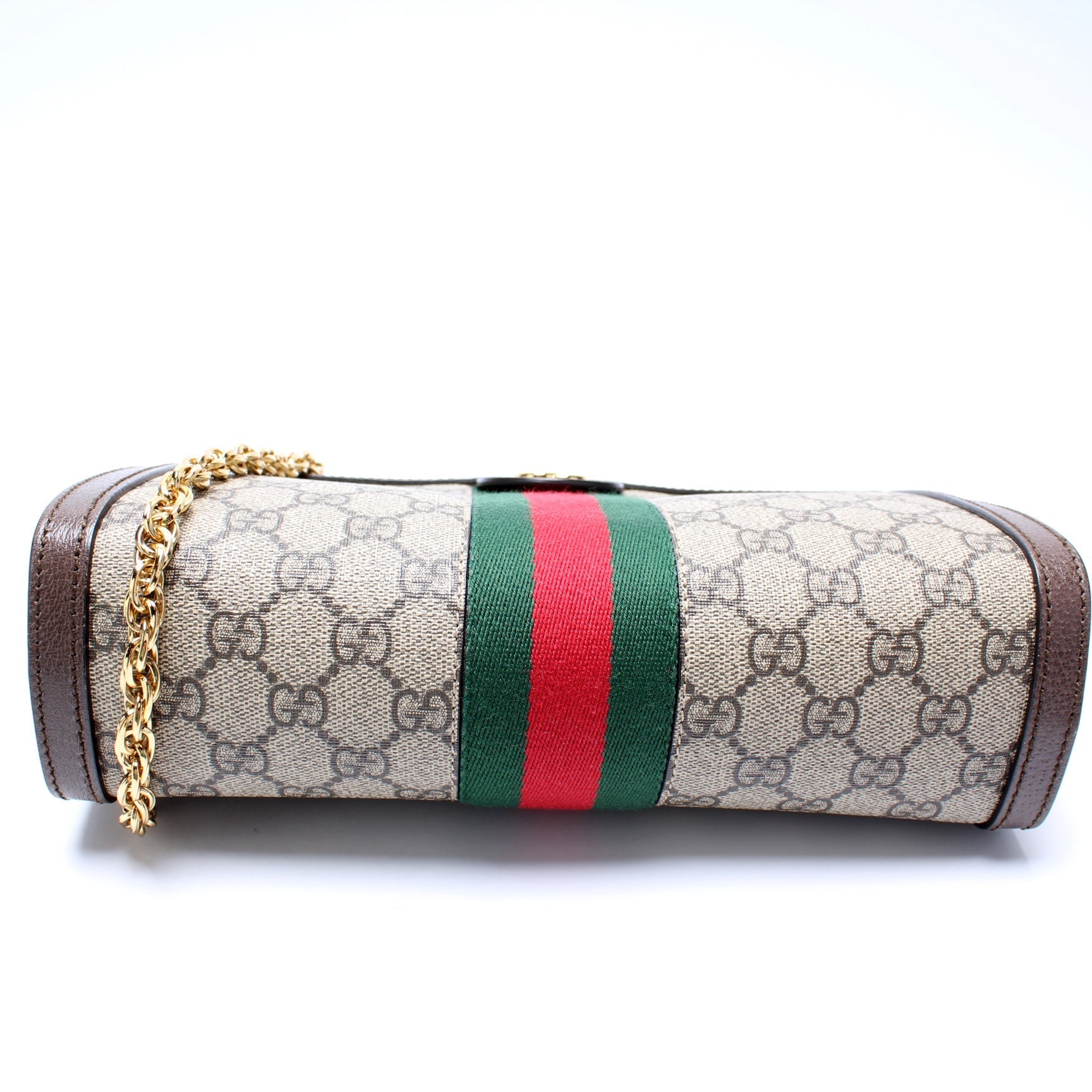 This Gucci GG Supreme Ophidia Small Chainis eye catching bag. The exterior is in the classic GG coated canvas.