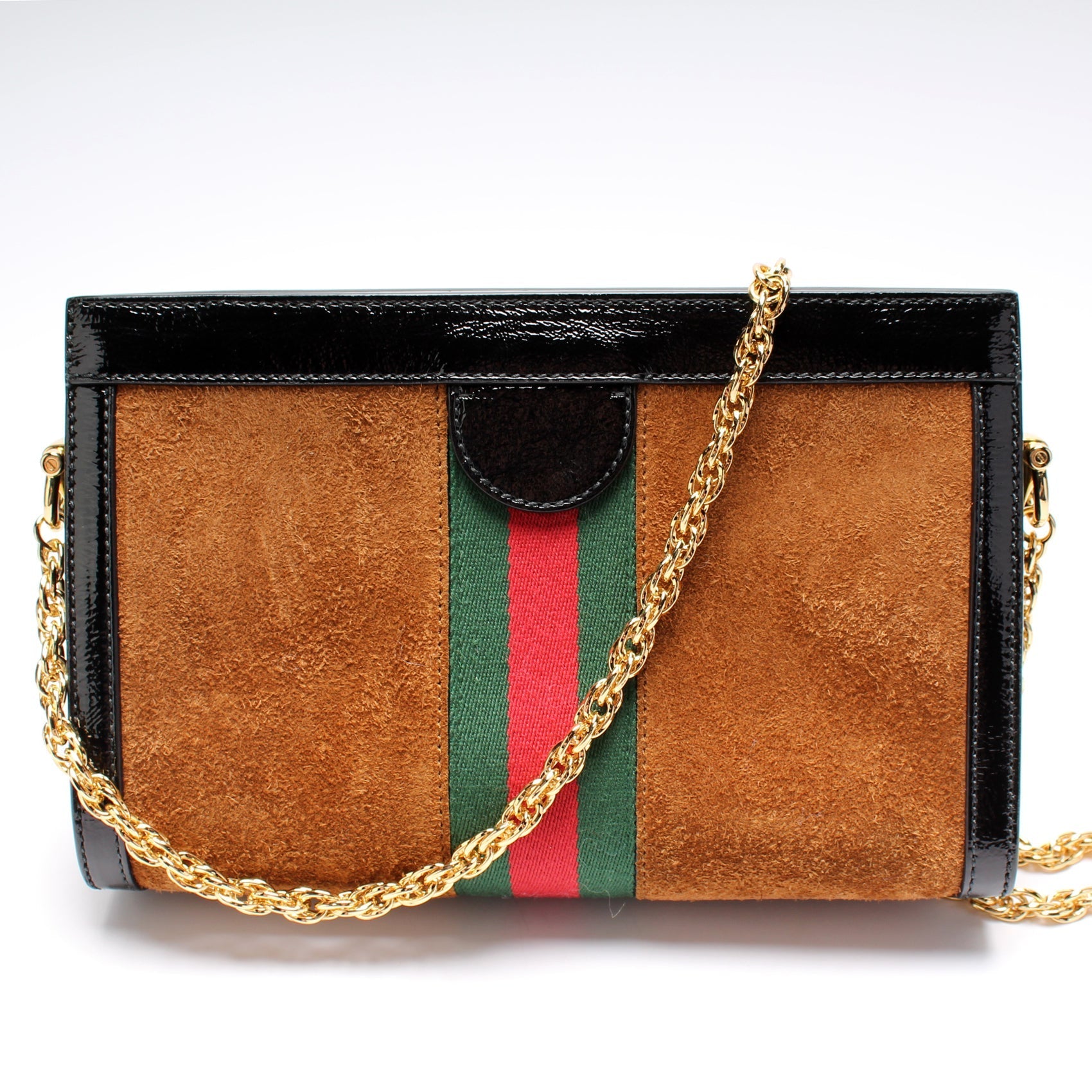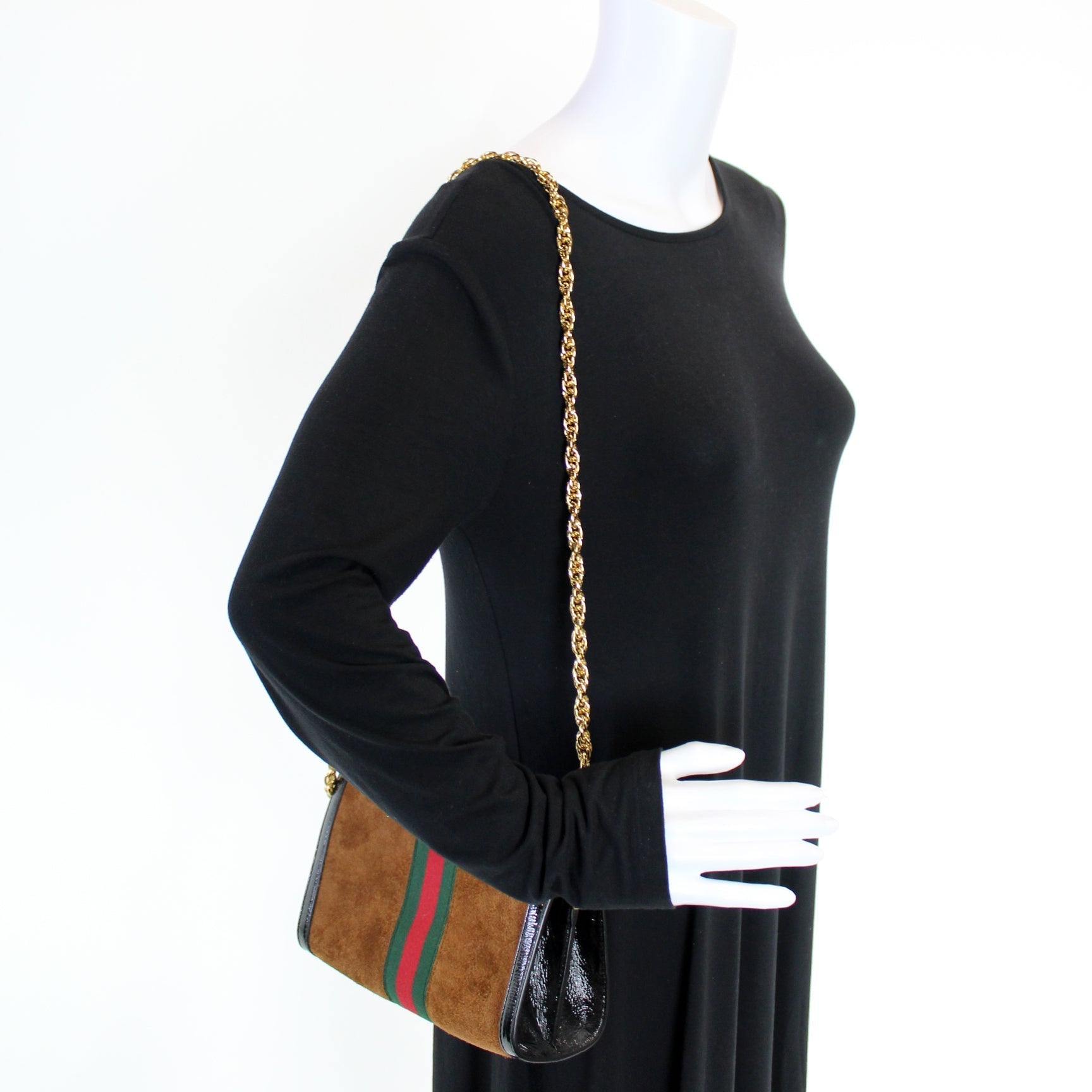 This Gucci Ophidia Suede Shoulder Smallis eye catching bag.