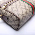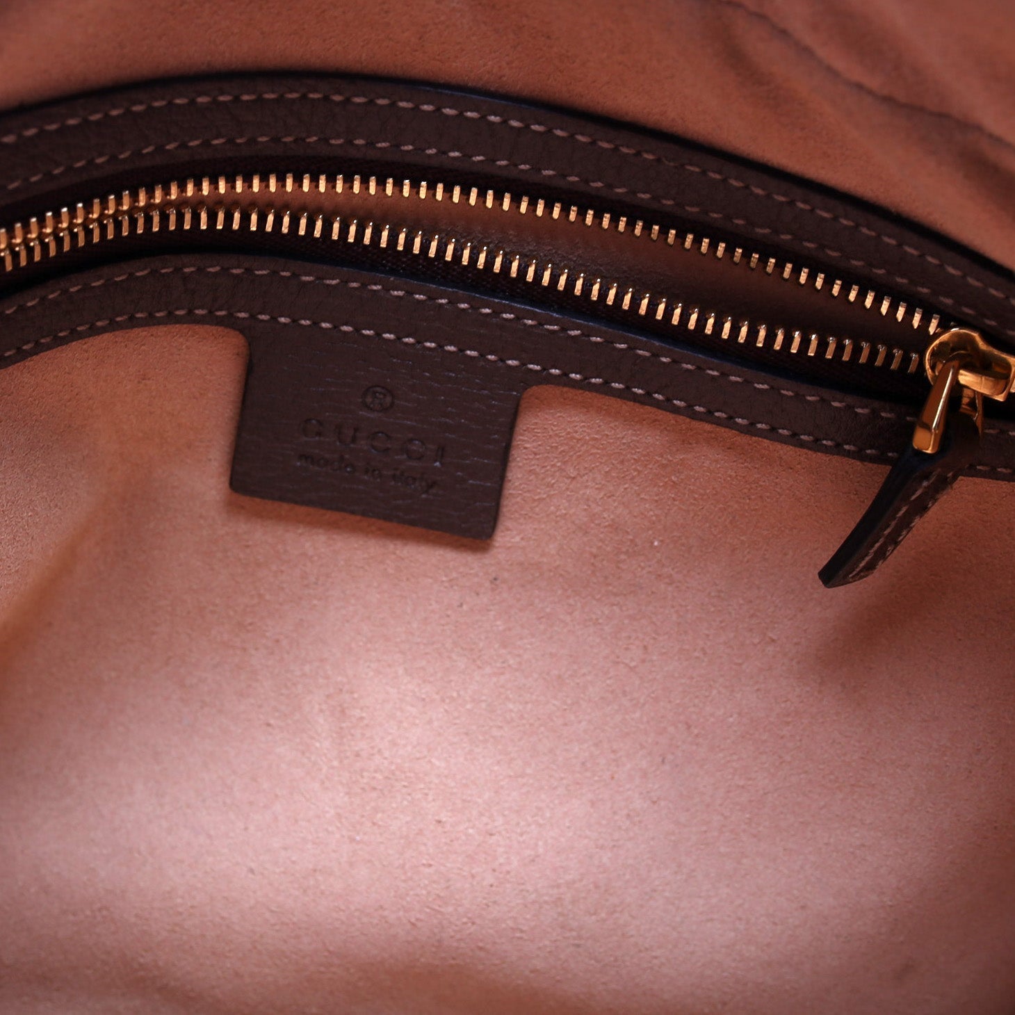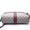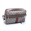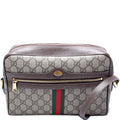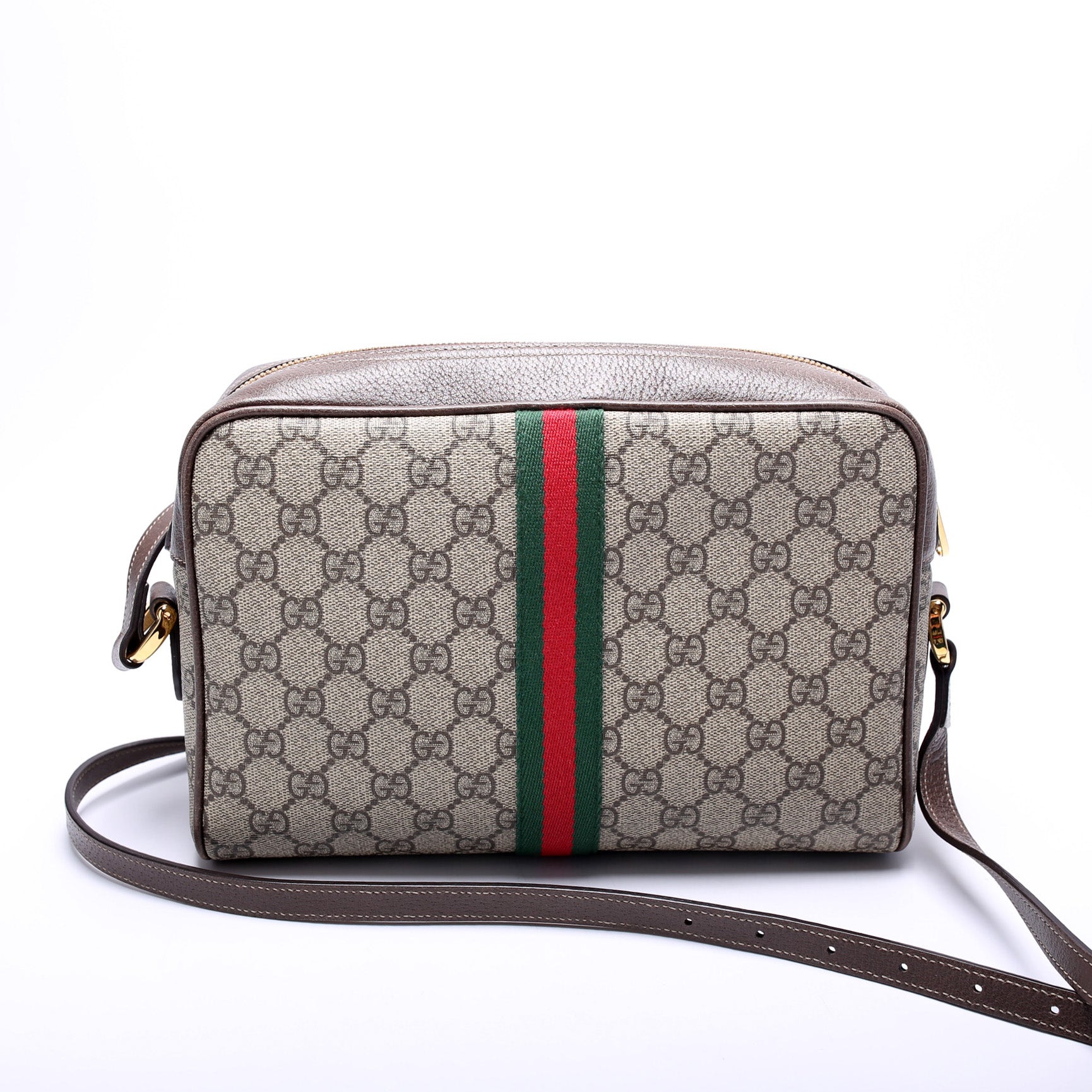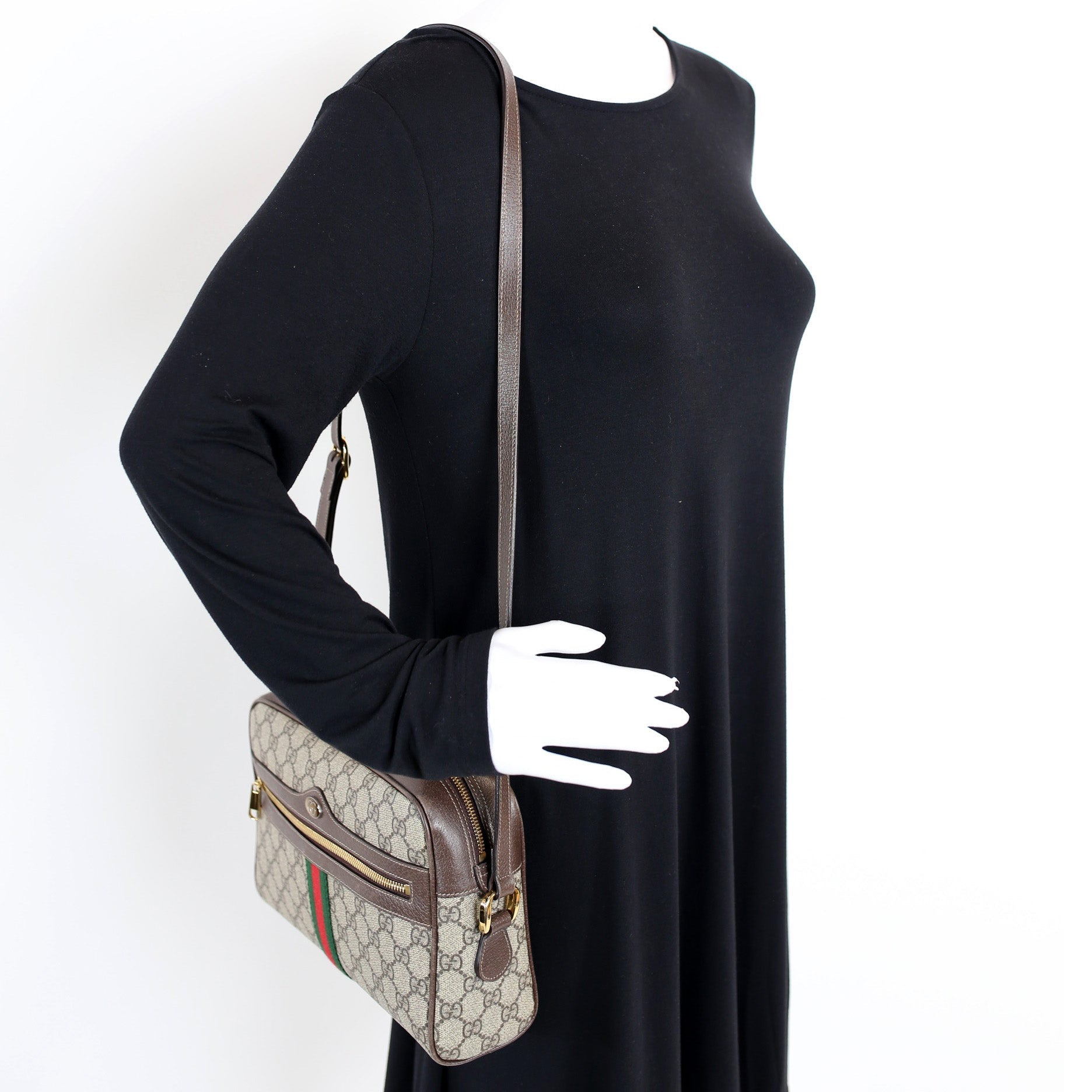 This Gucci Ophidia Crossbodyis eye catching bag. The exterior is in the classic Gucci GG Supreme coated canvas.