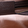 Exterior: The exterior coated canvas is free of any rips or cracks. The exterior features one zip closure pocket. The leather trim shows minor rubbing.