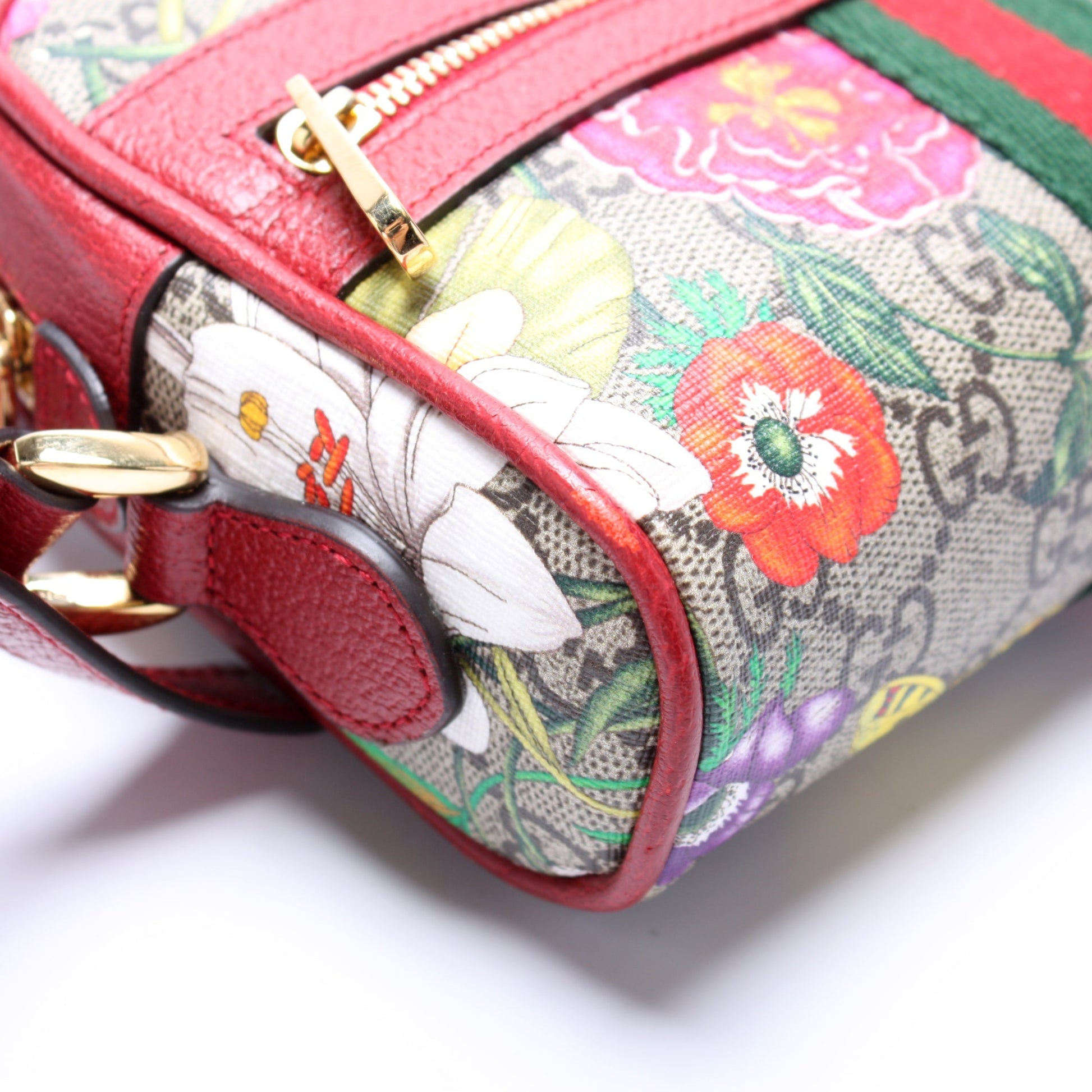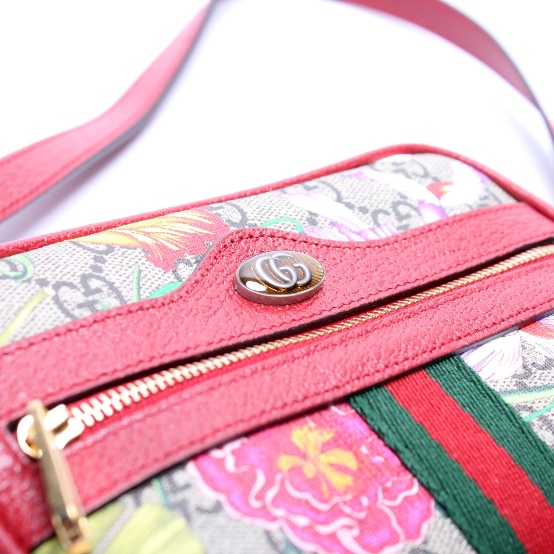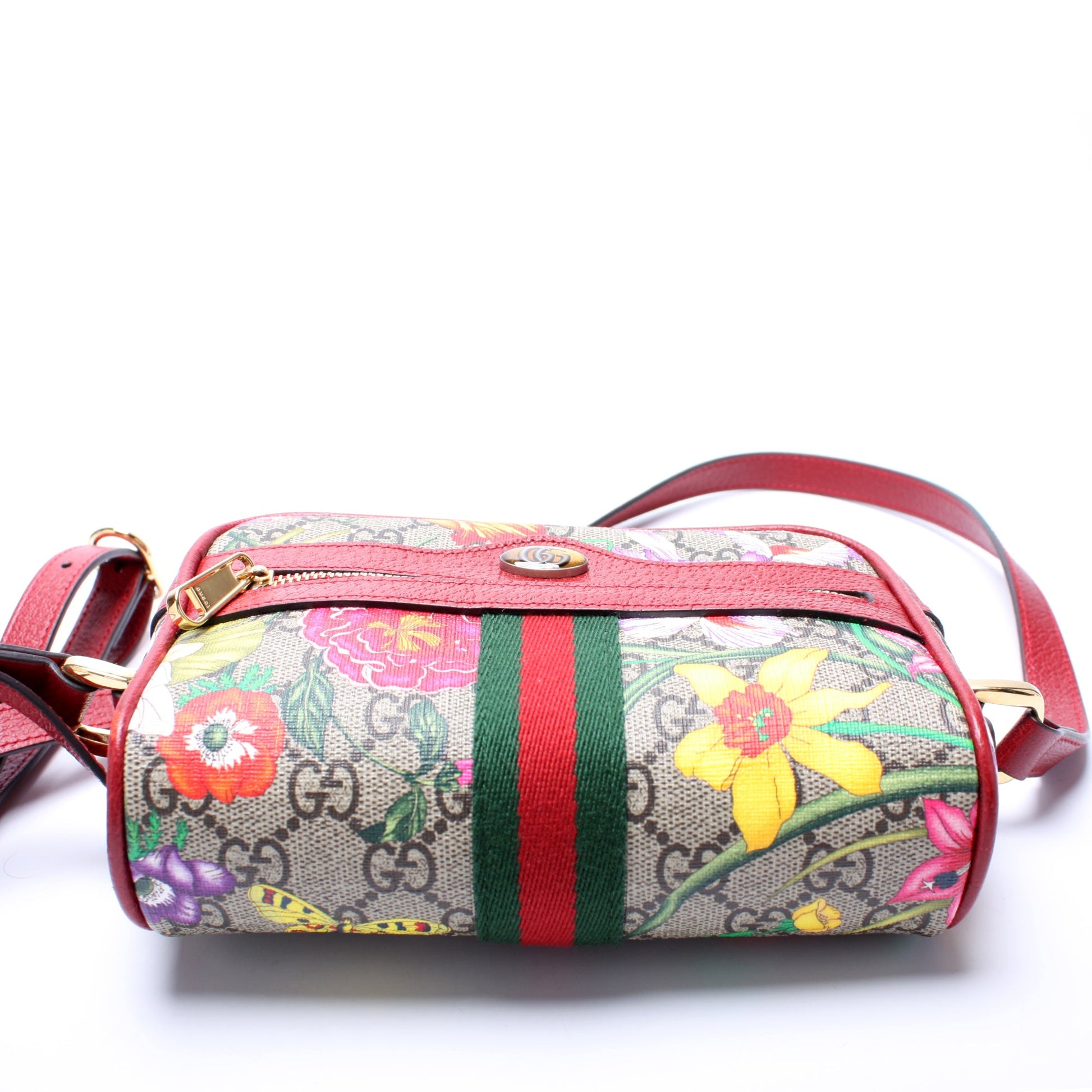 This Gucci Mini Ophidia is d 100% . The exterior is in the classic Gucci GG Supreme coated canvas.