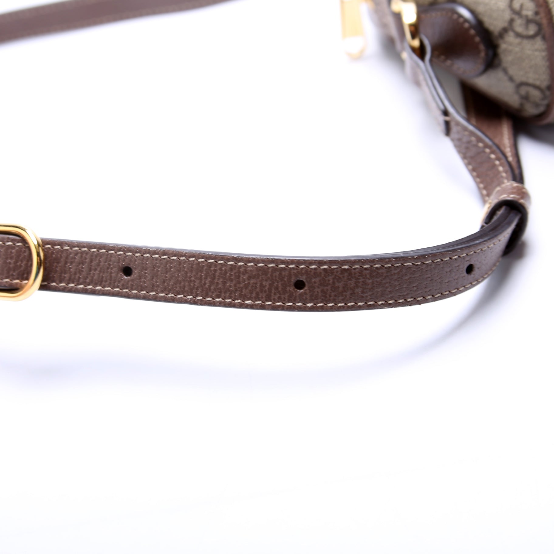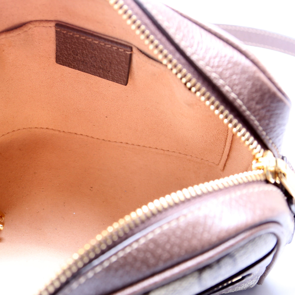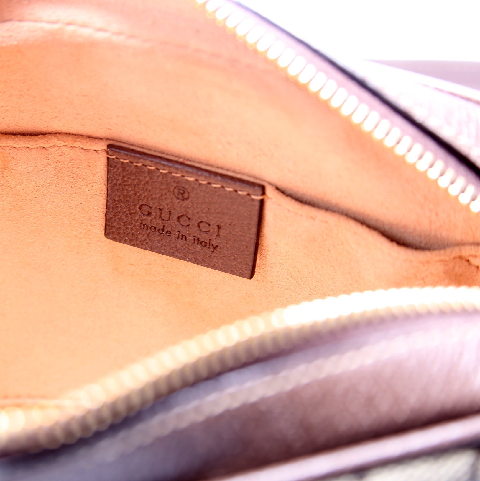 This Gucci Ophidia Mini Belt Bagis eye catching bag. The exterior is in the classic GG Supreme coated canvas.
