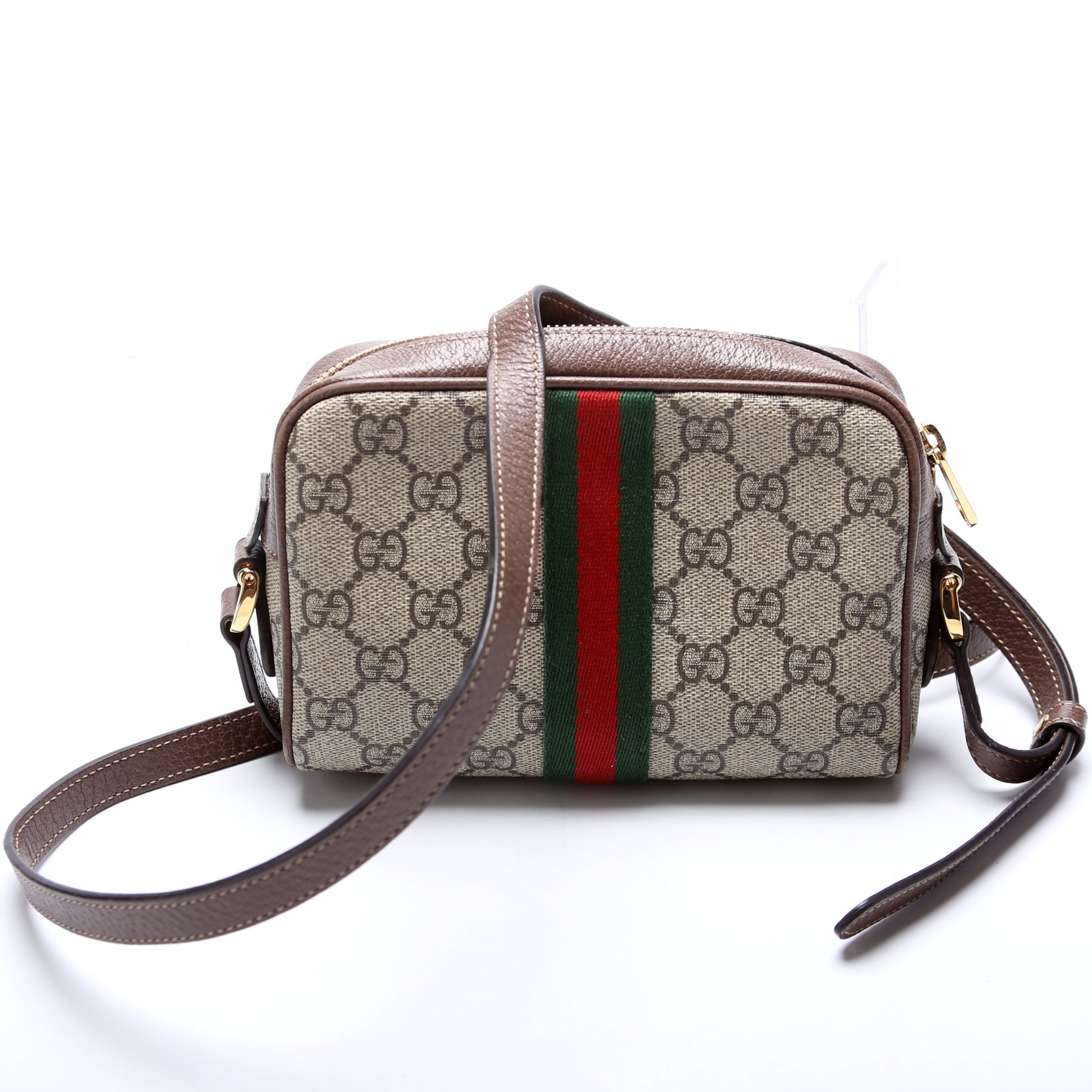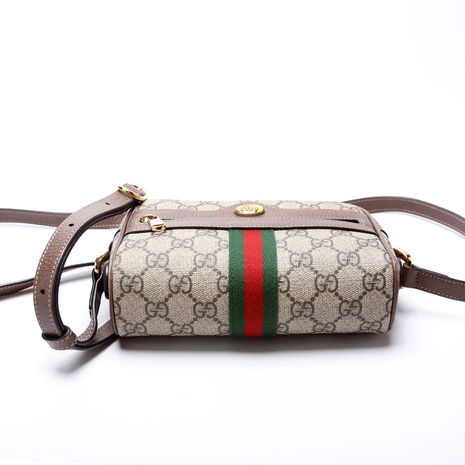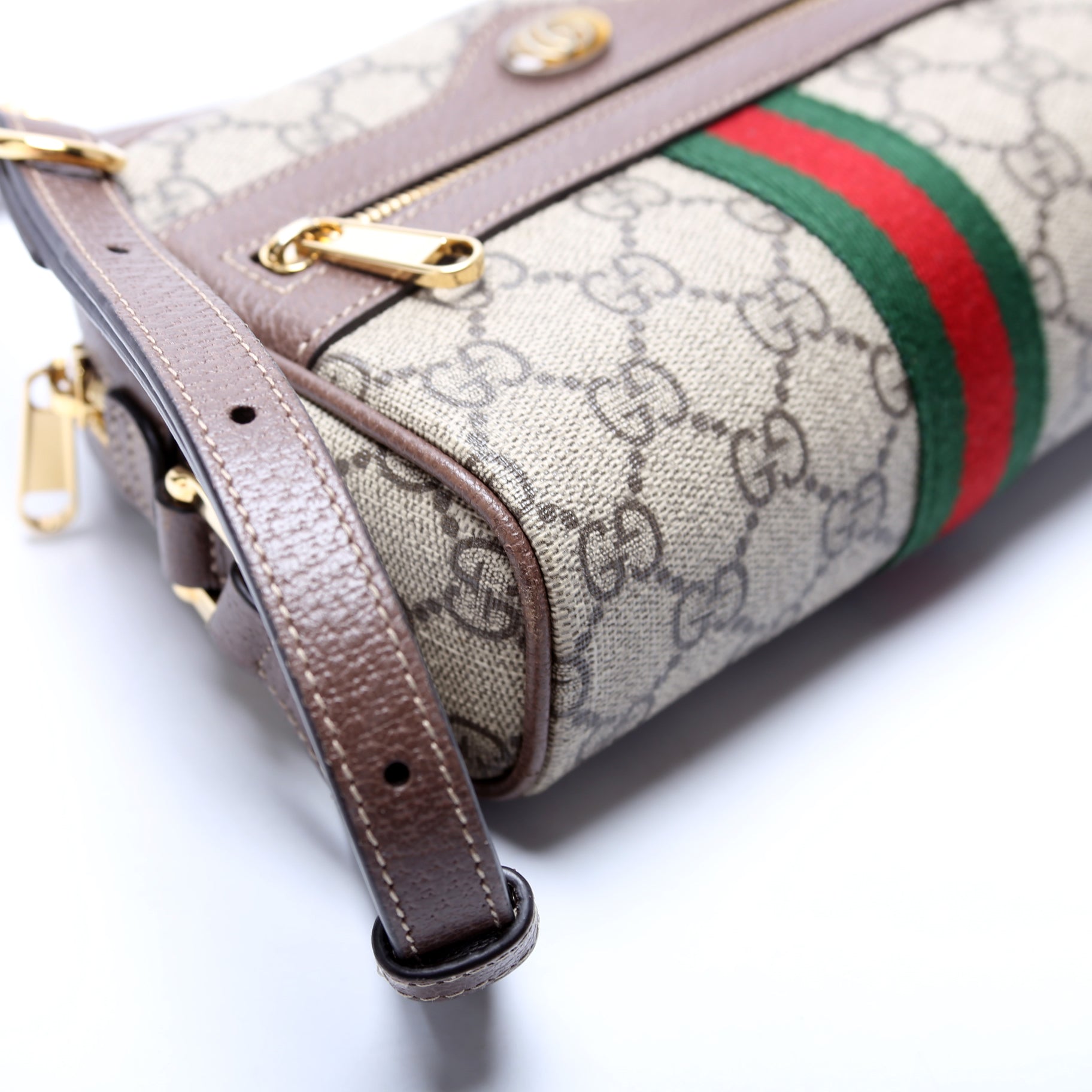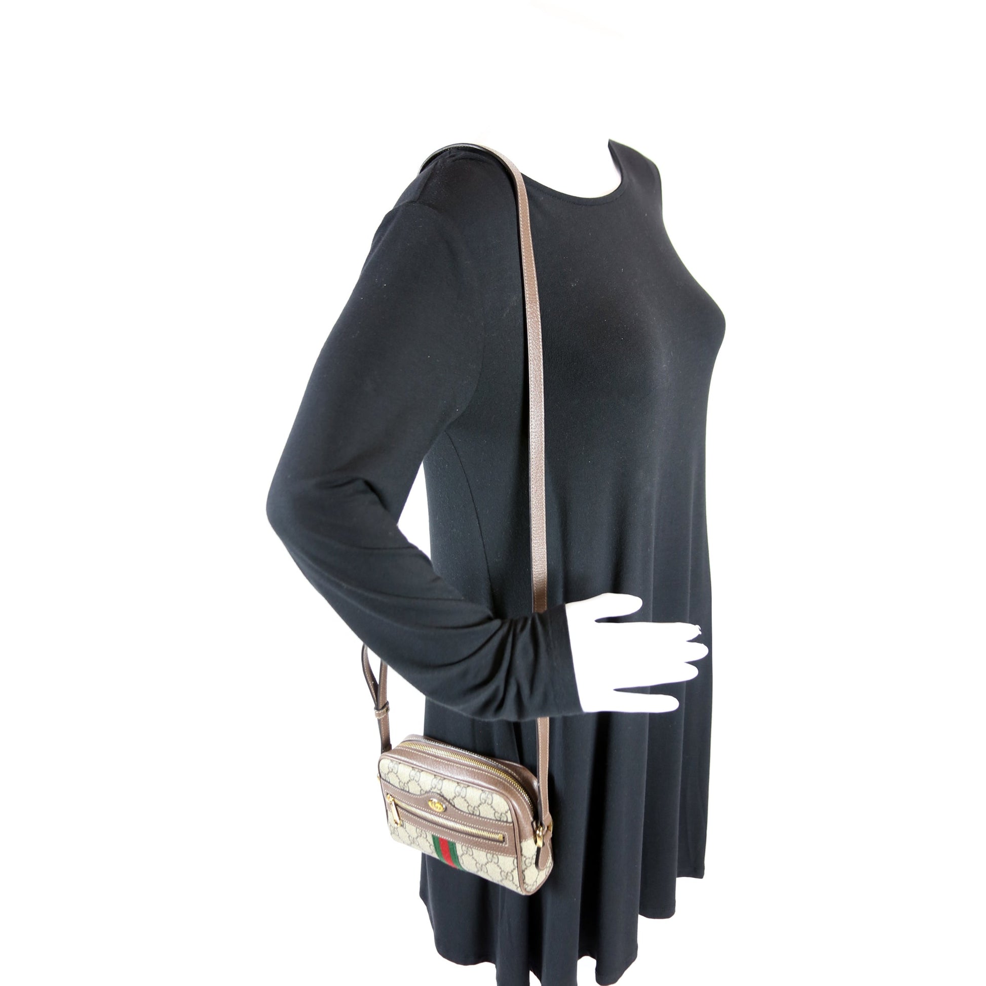 This Gucci Ophidia Mini Belt Bagis eye catching bag. The exterior is in the classic GG Supreme coated canvas.