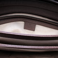 Interior: The interior is clean and free of rips or tears. The interior features three open sections, two open pockets, and one zipper pocket.