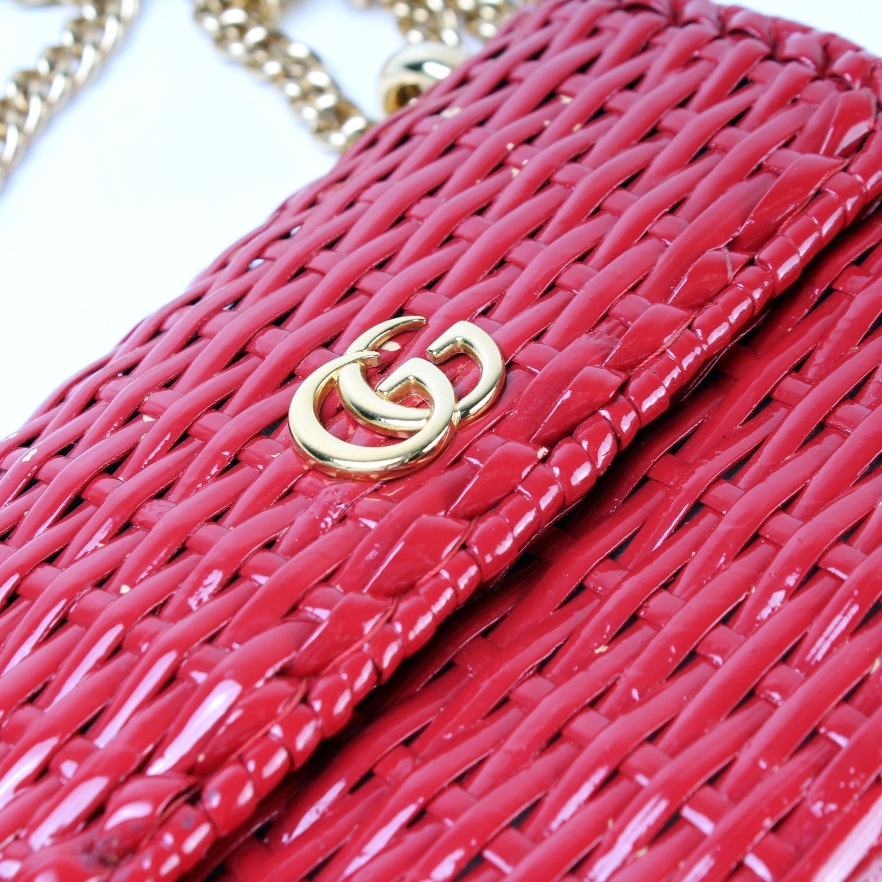 This Gucci Linea Small Cestino Glazed Wicker Shoulder Bagis eye catching bag.