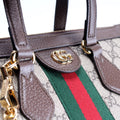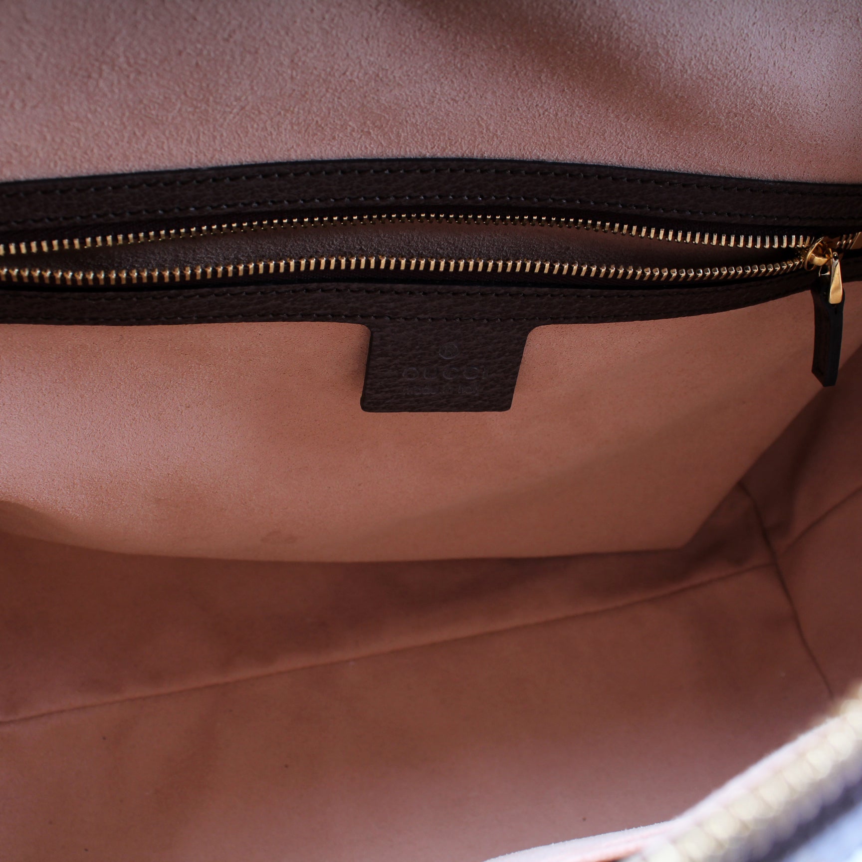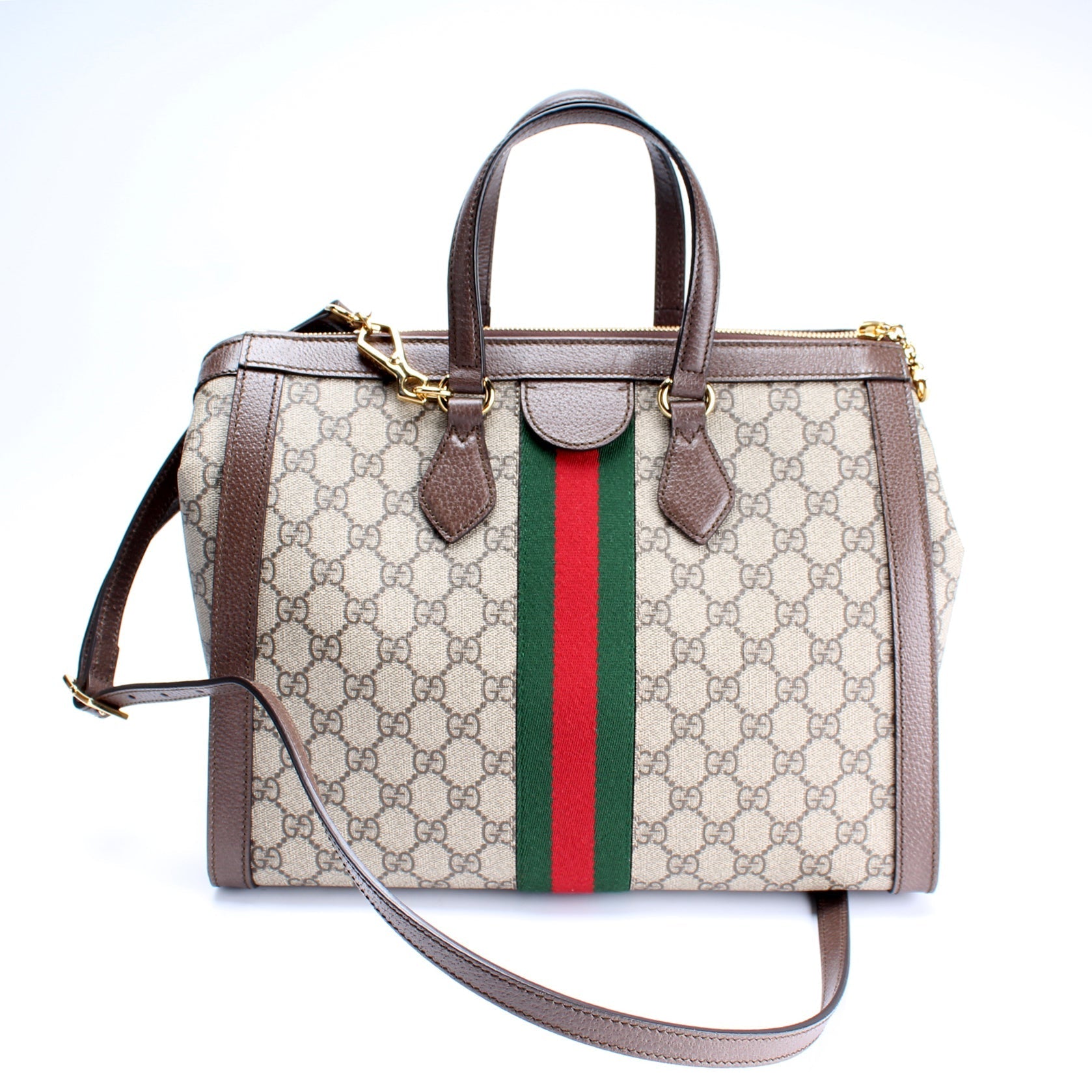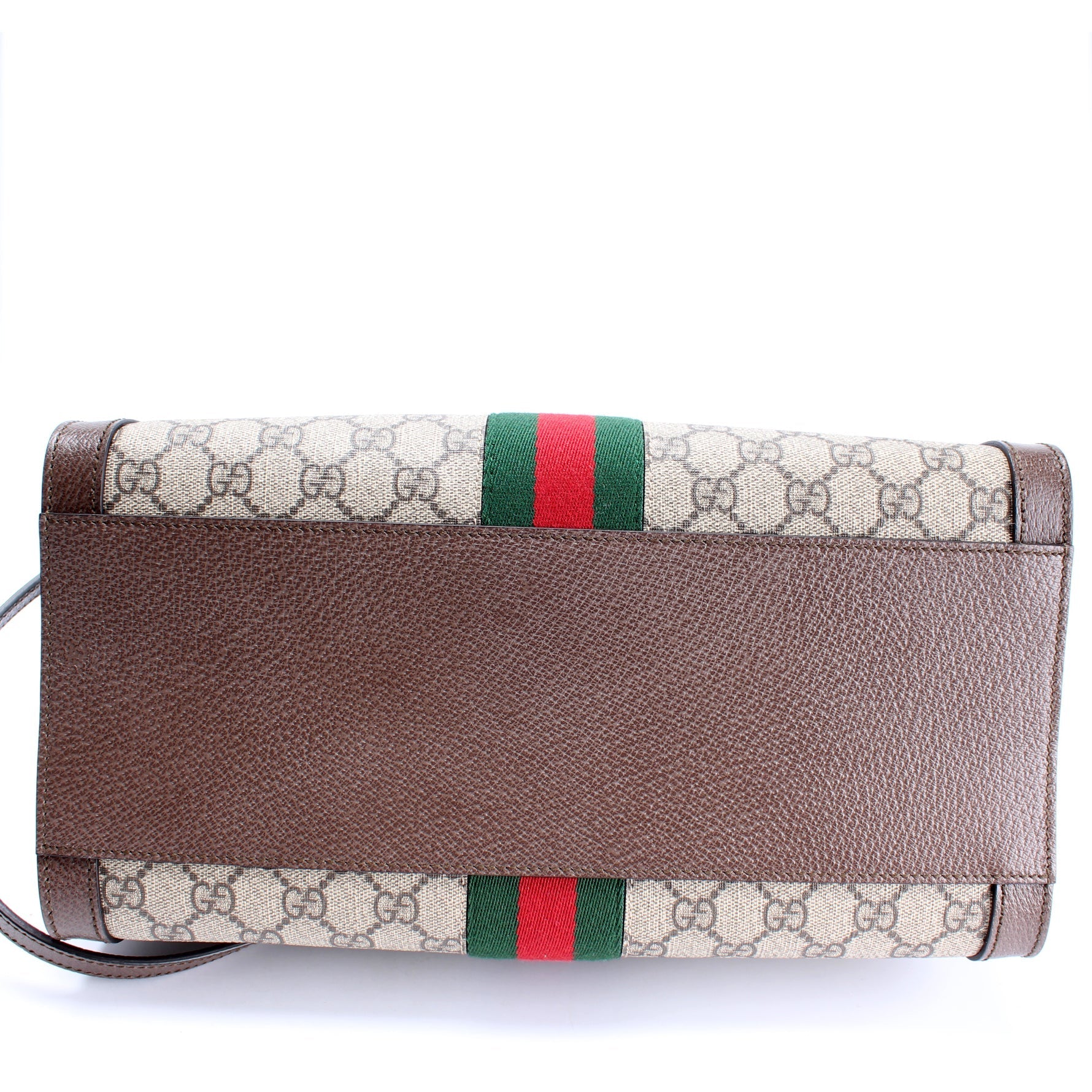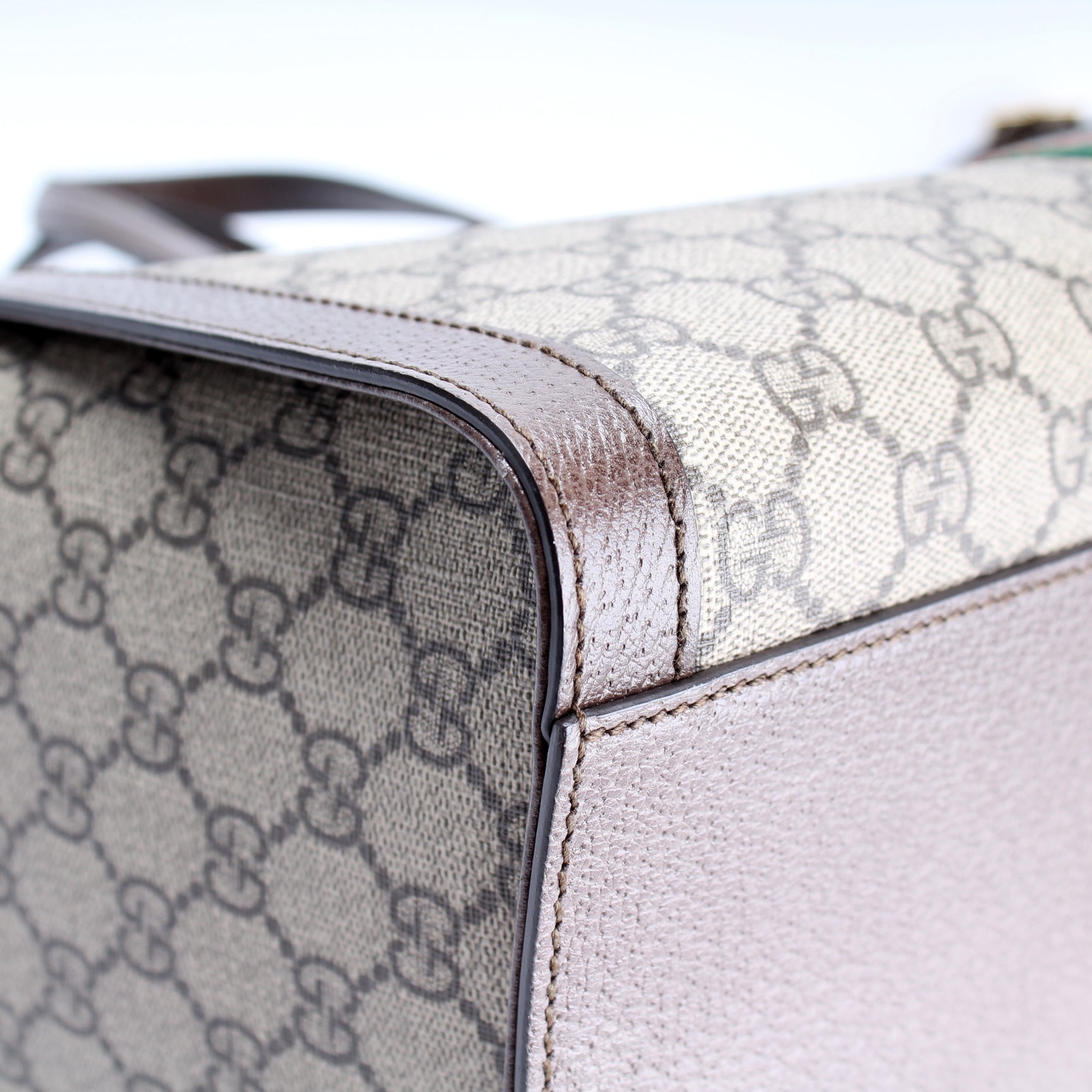 This Gucci Ophidia Medium Tote is guaranteed 100% authentic. The exterior is in the classic Gucci GG Supreme coated canvas.