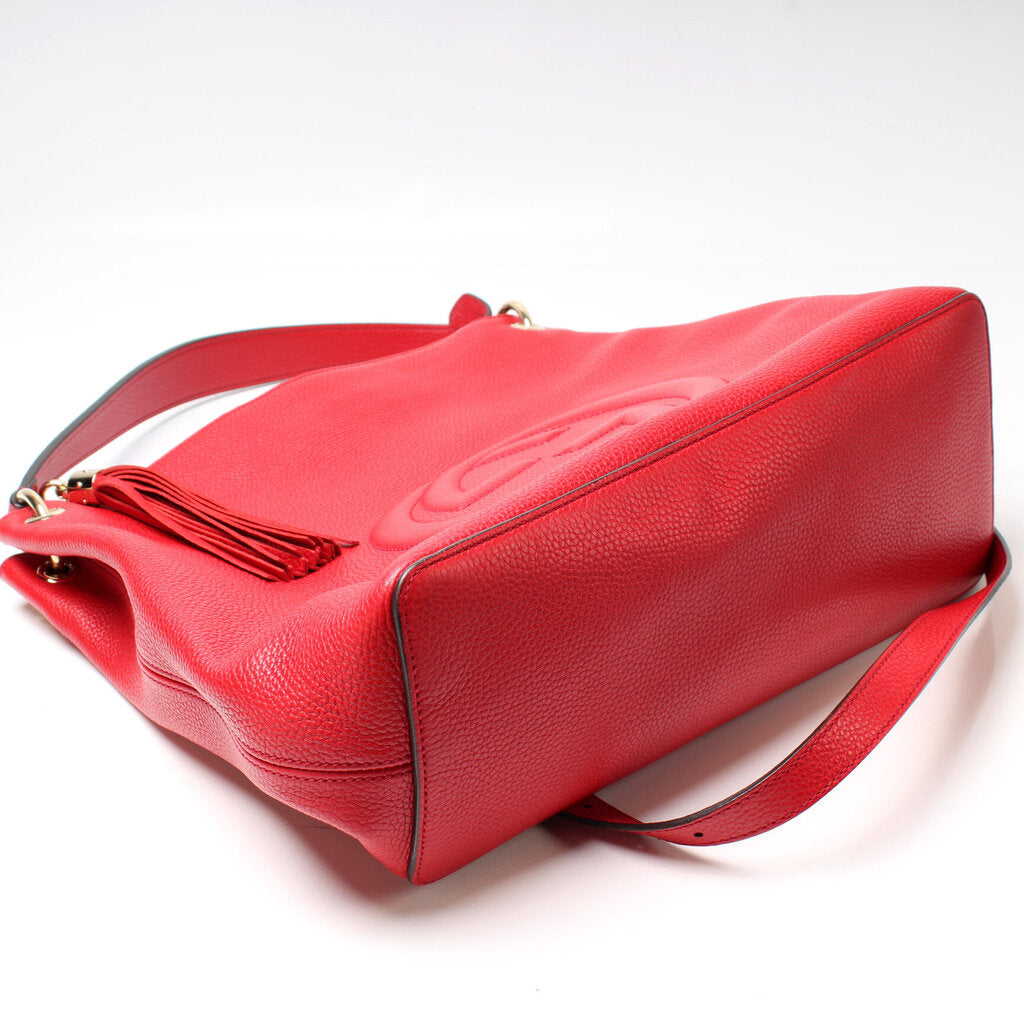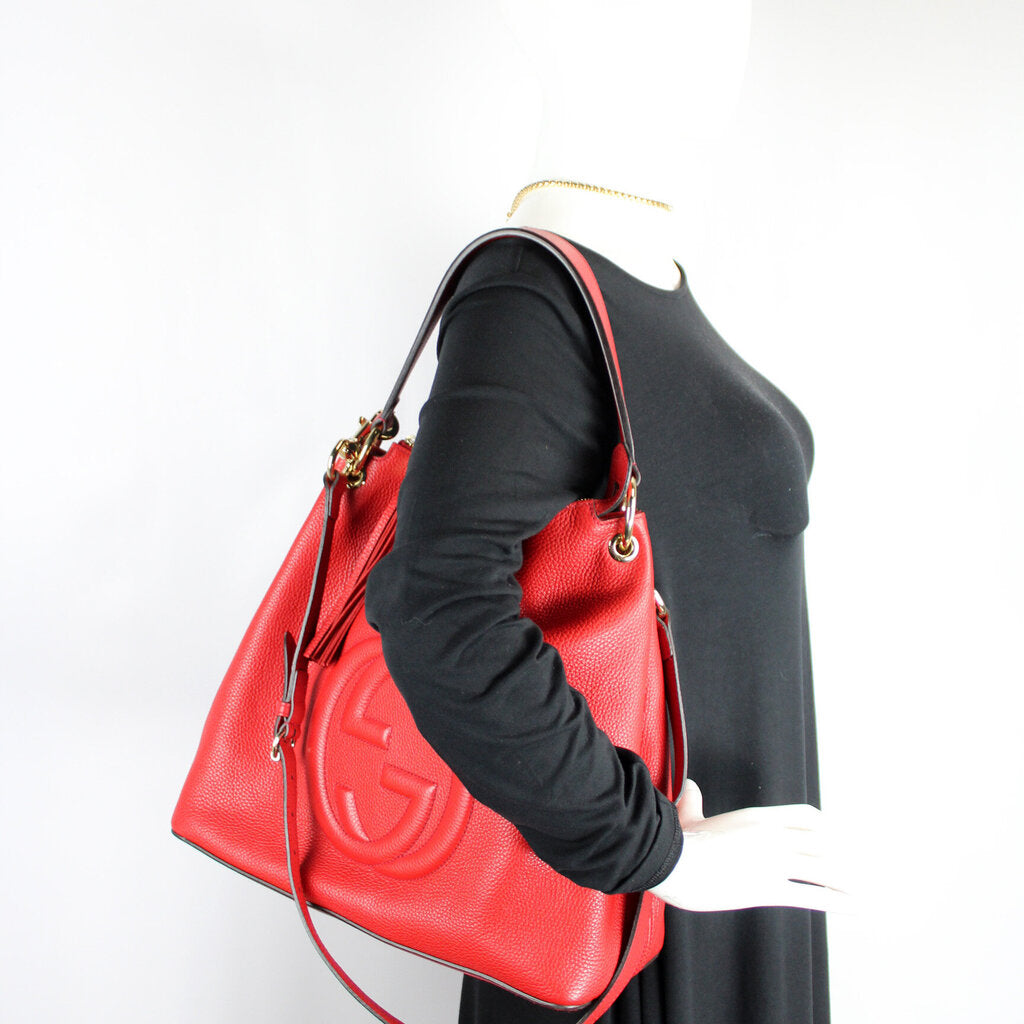 This Gucci Soho Shoulder Bagis eye catching bag. The exterior is in the classic Gucci Soho leather.