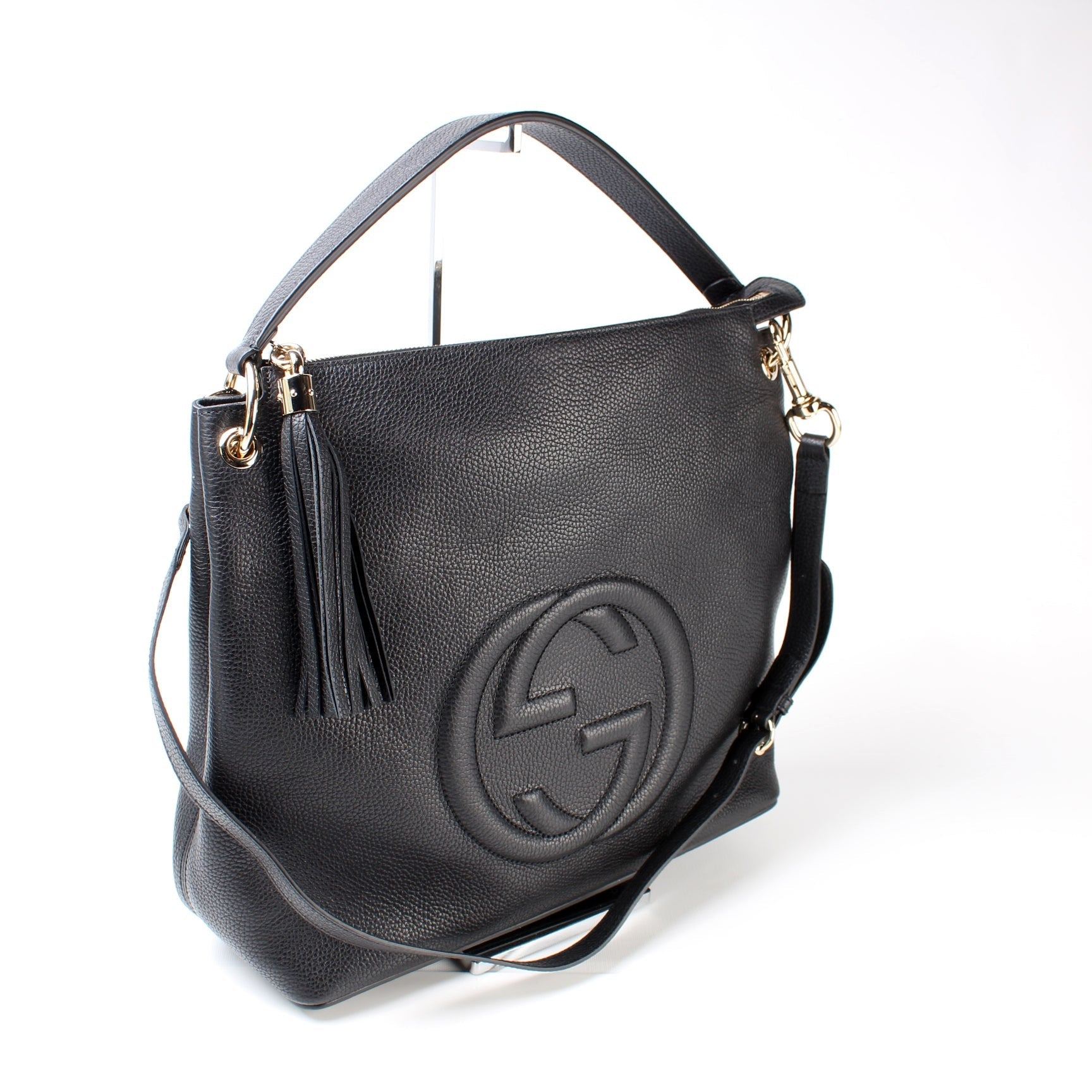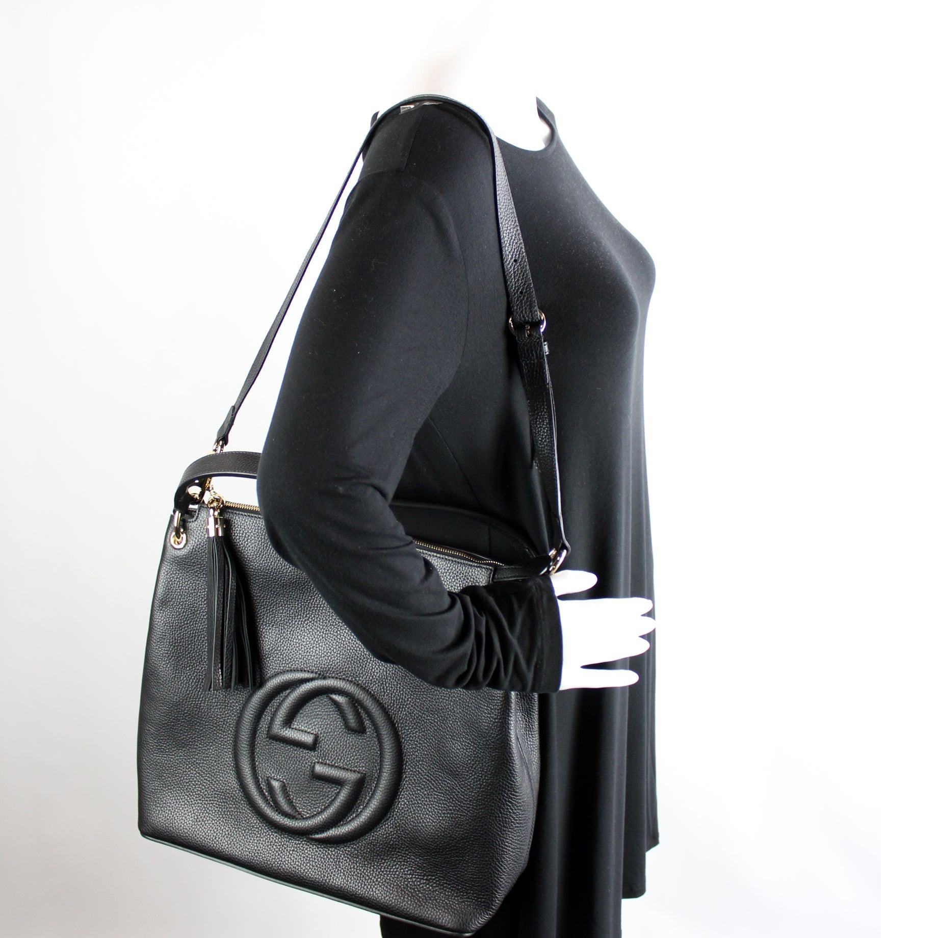 This Gucci Soho Shoulder Bagis eye catching bag. The exterior is in the classic Gucci Soho leather.