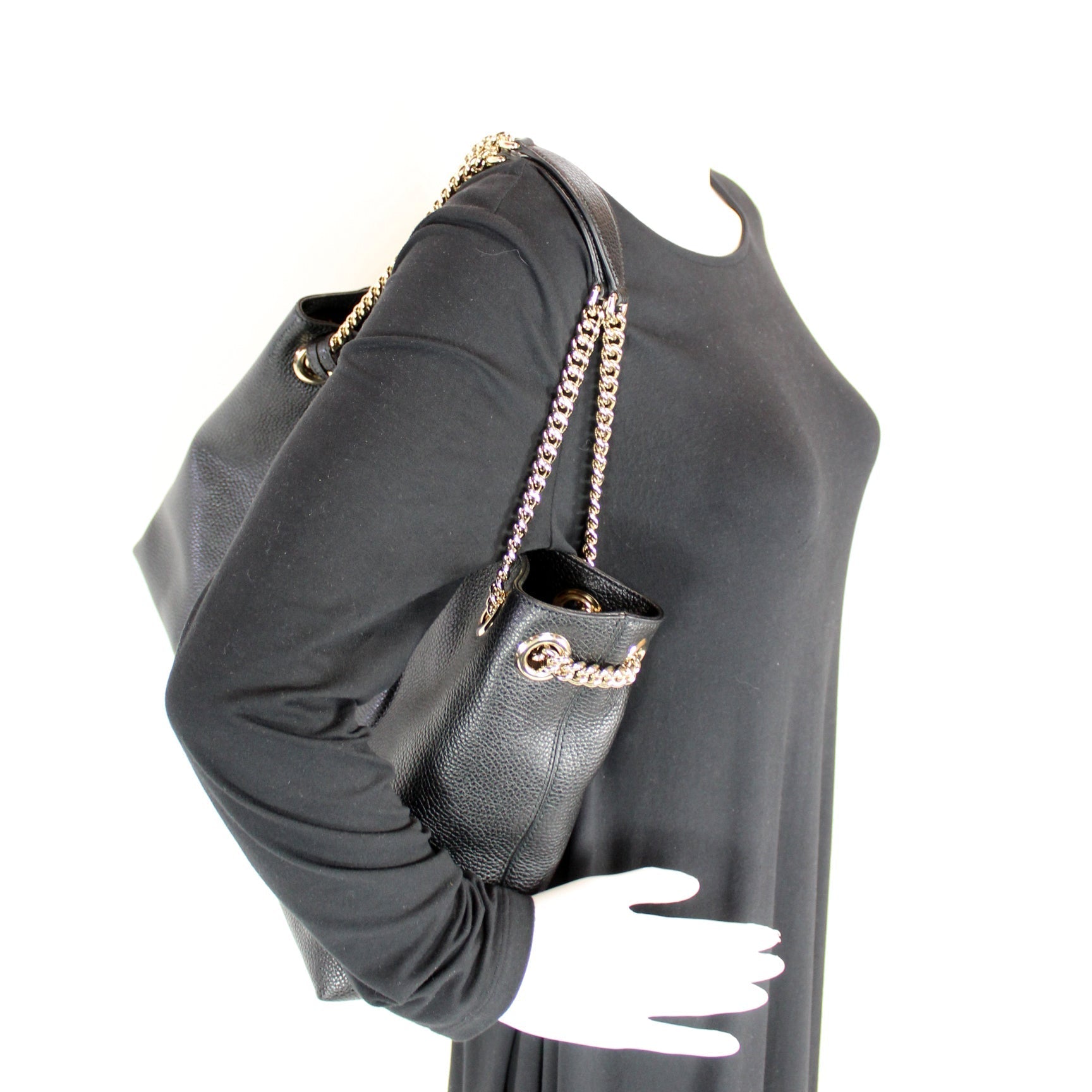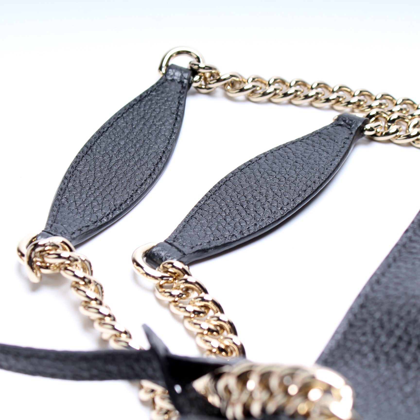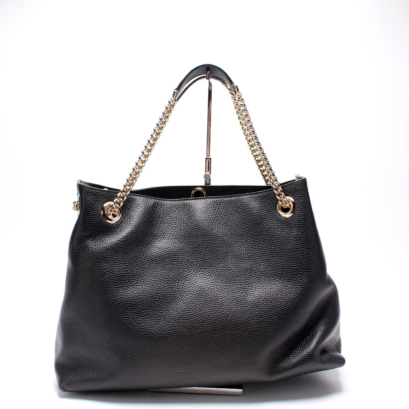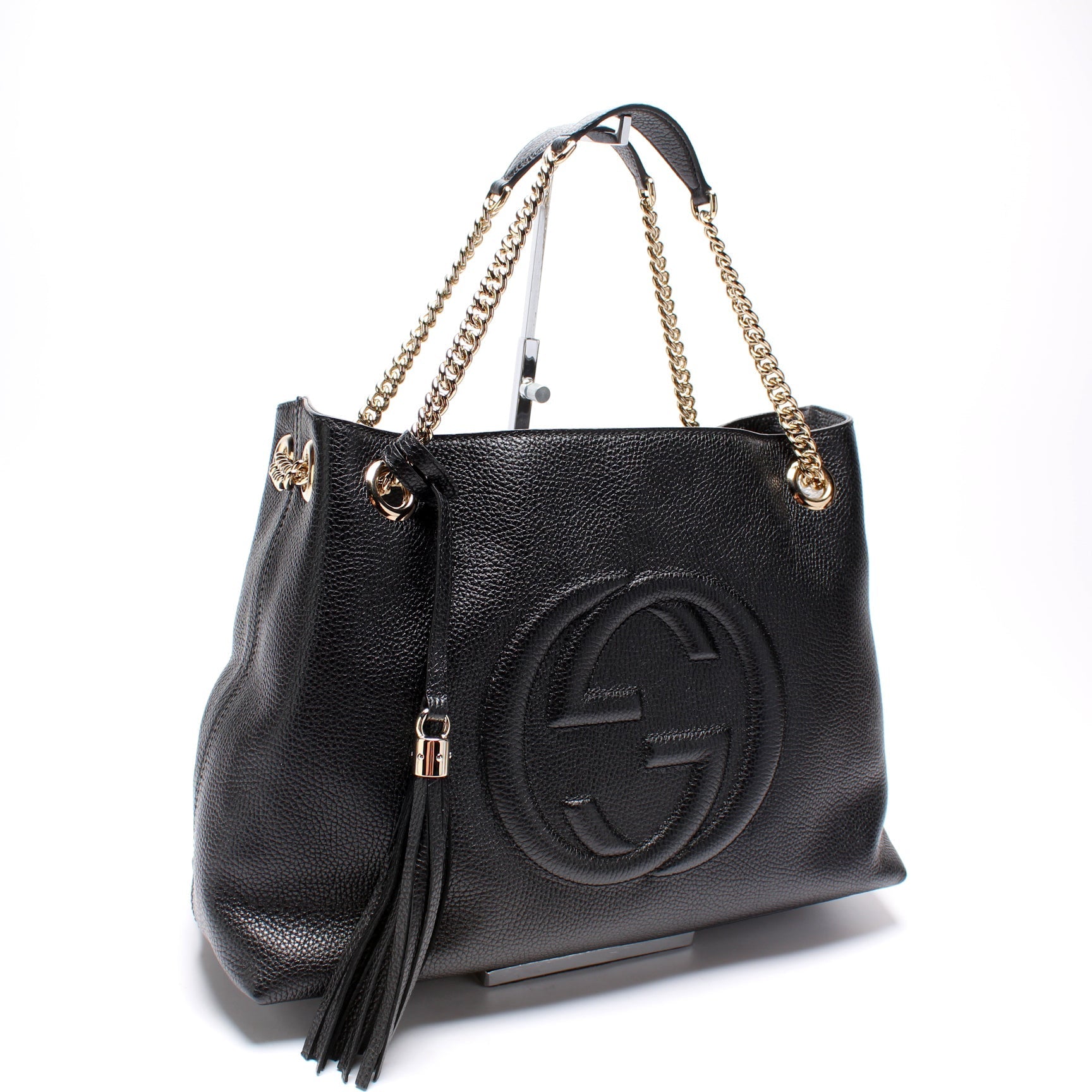 This Gucci Soho Chain Tote Neweris eye catching bag. The exterior is in the classic Gucci Soho leather.