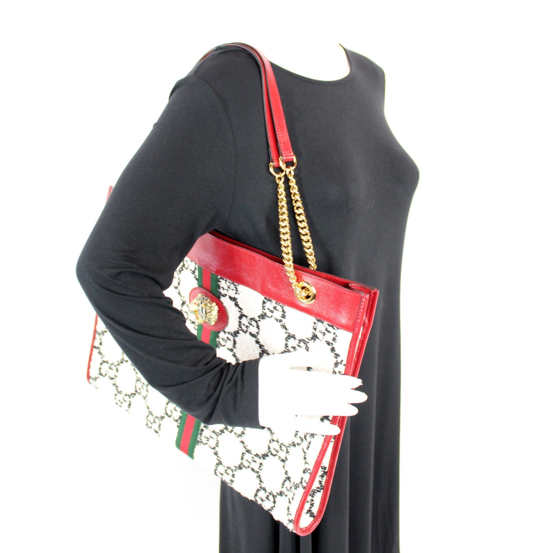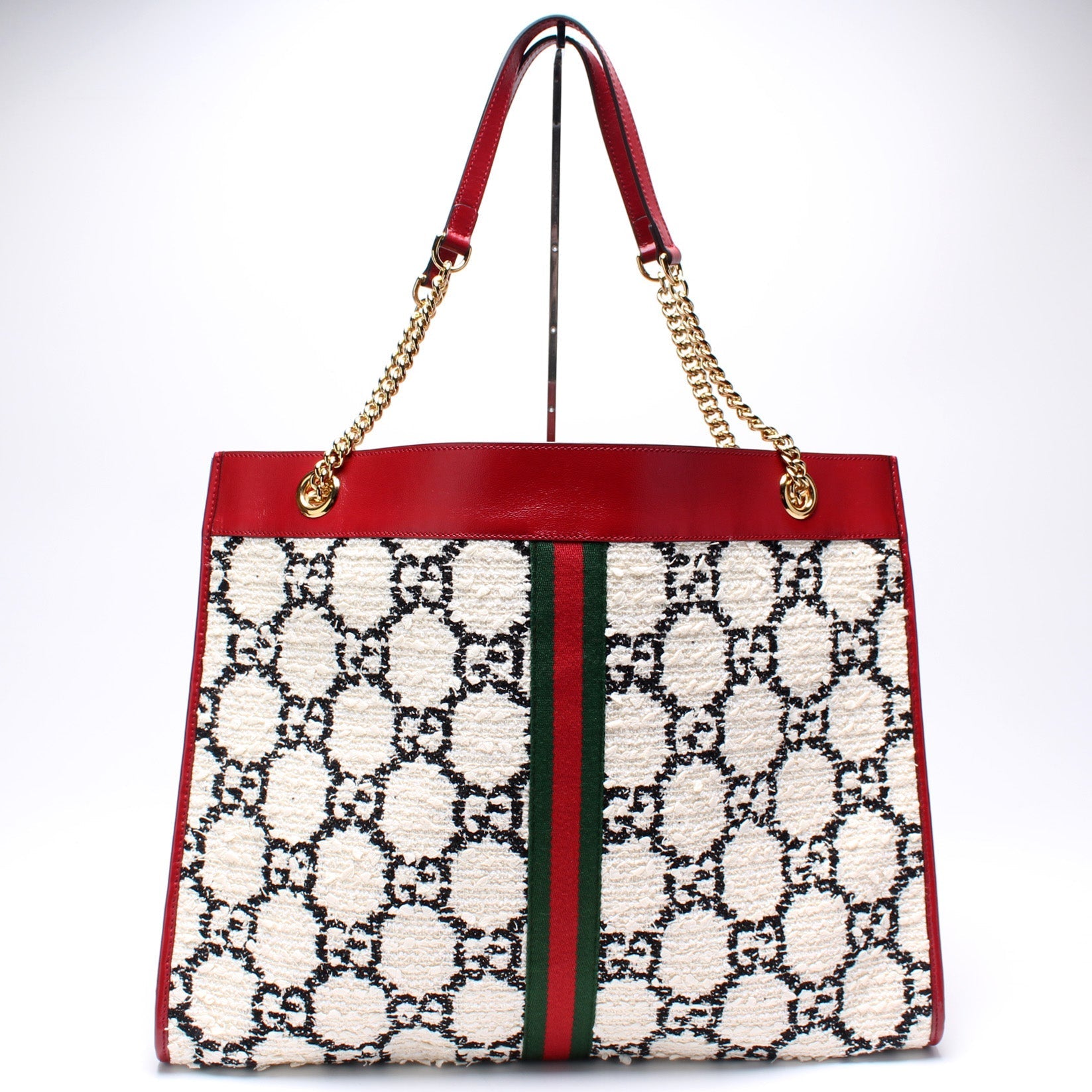 This Gucci Rajah Chain Tote Tweedis eye catching bag.