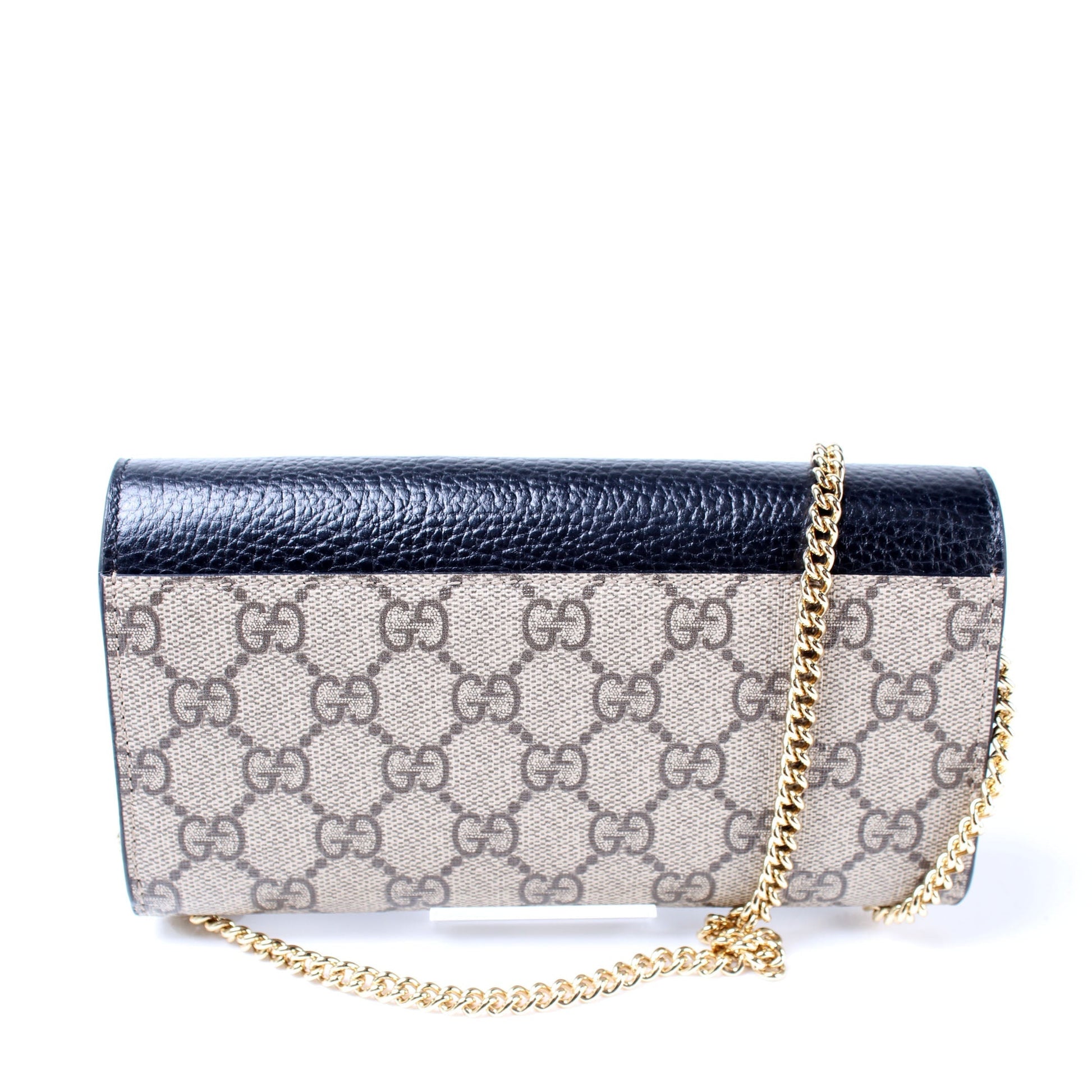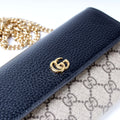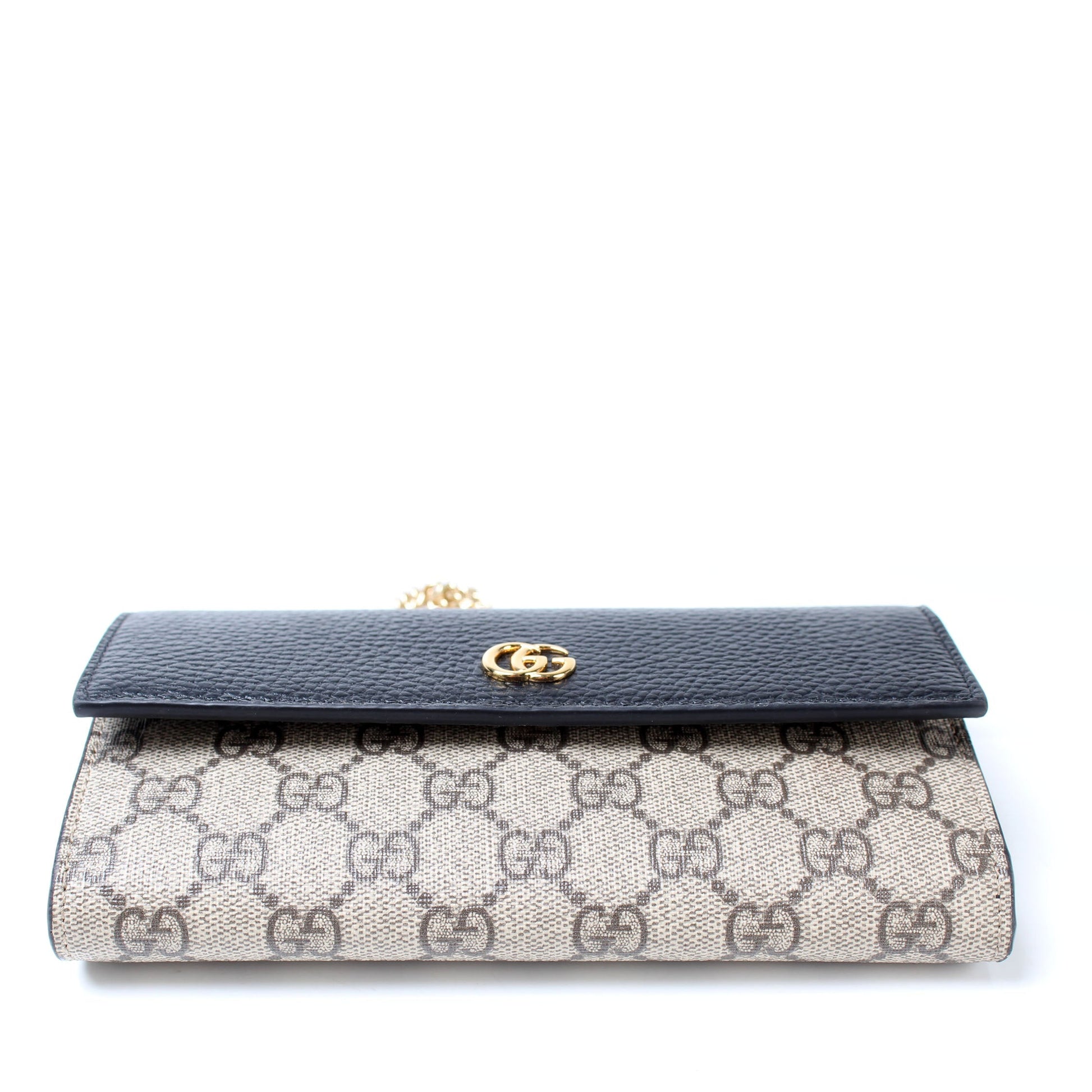 This Gucci GG Marmont Chain Walletis eye catching bag. The exterior is in the classic Gucci GG Supreme coated canvas and Marmont leather.