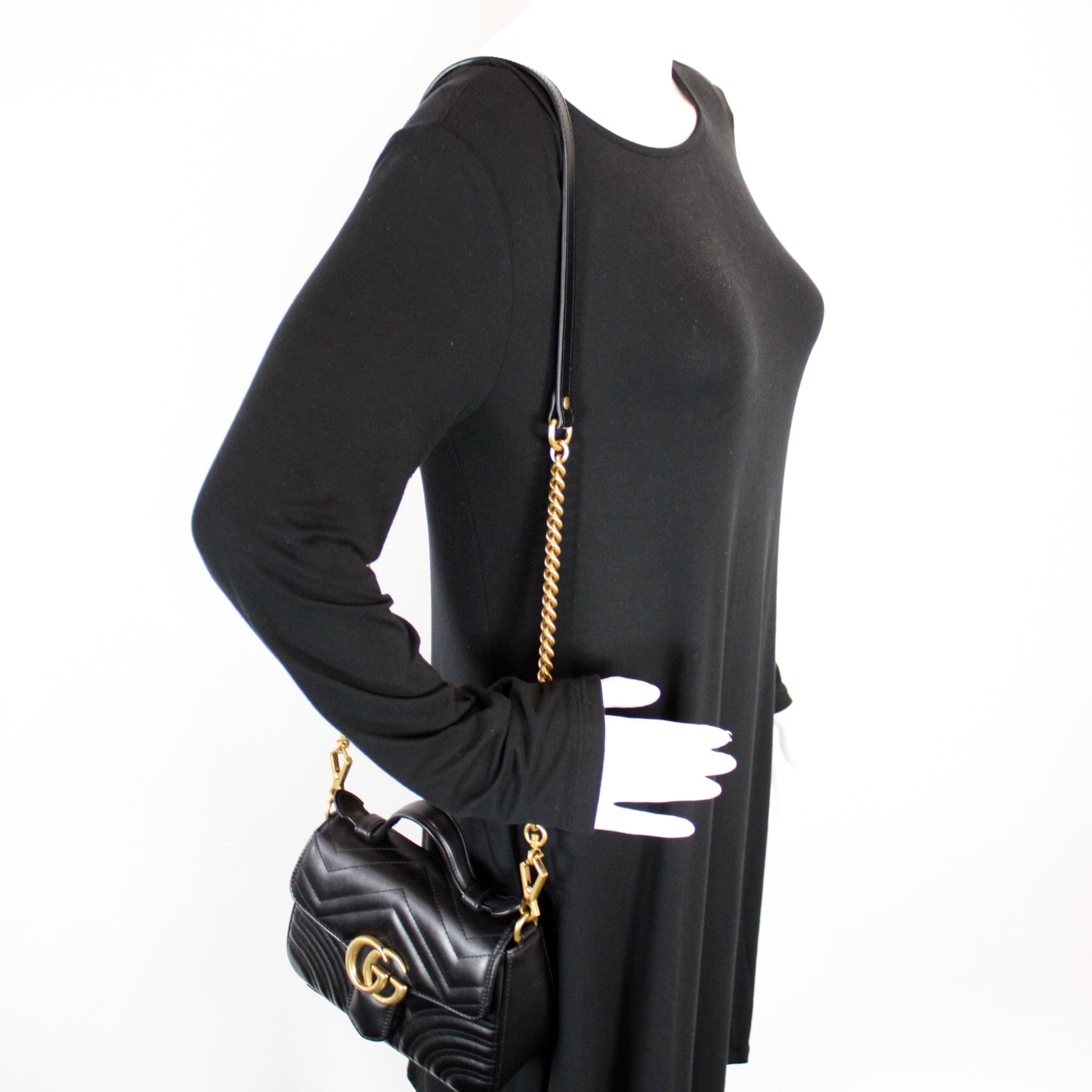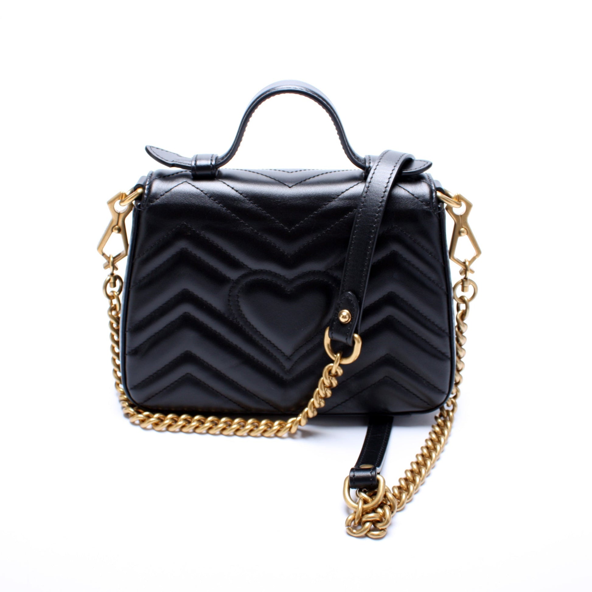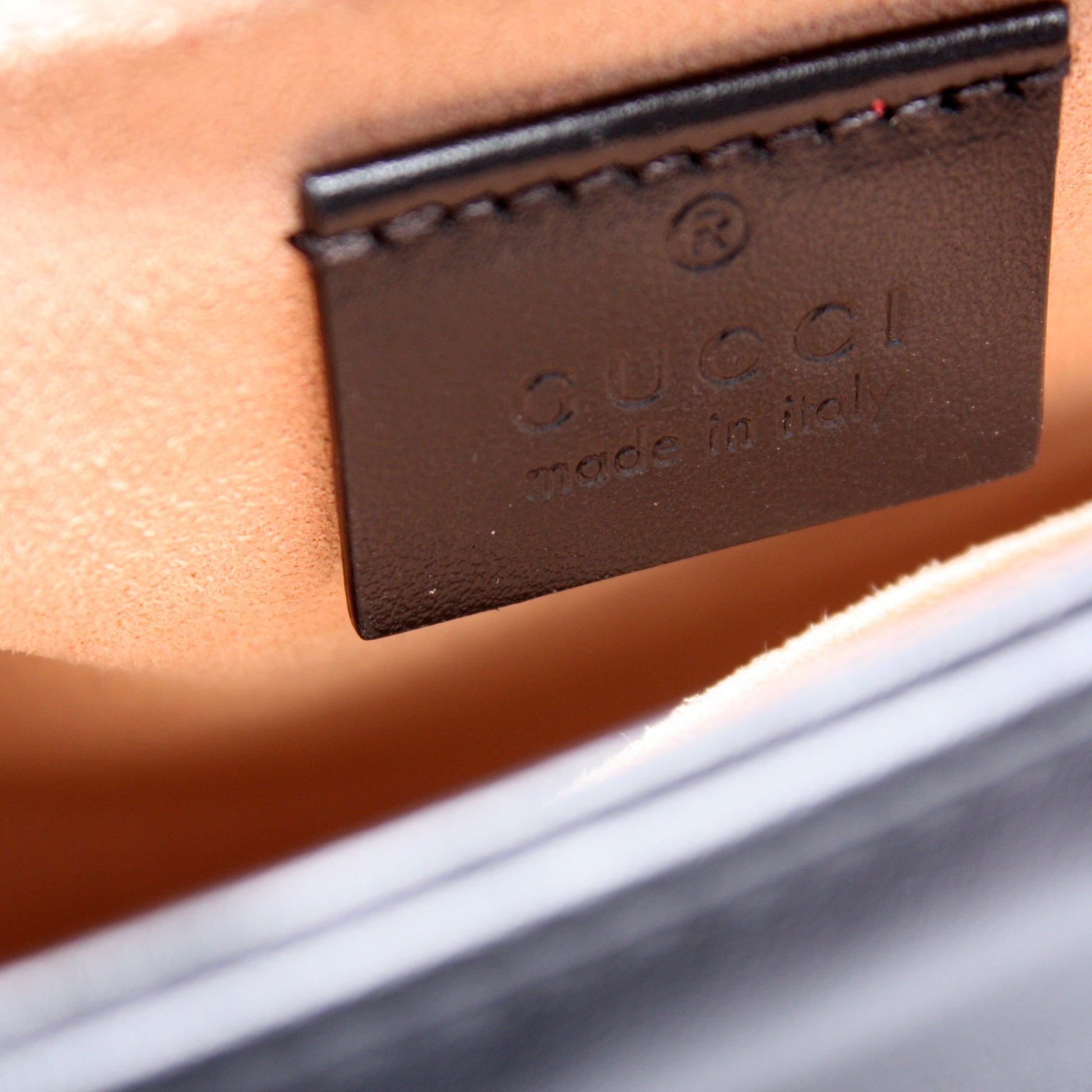 This Gucci 547260 GG Marmont Mini Top Handleis eye catching bag. The exterior is in the classic Marmont leather.
