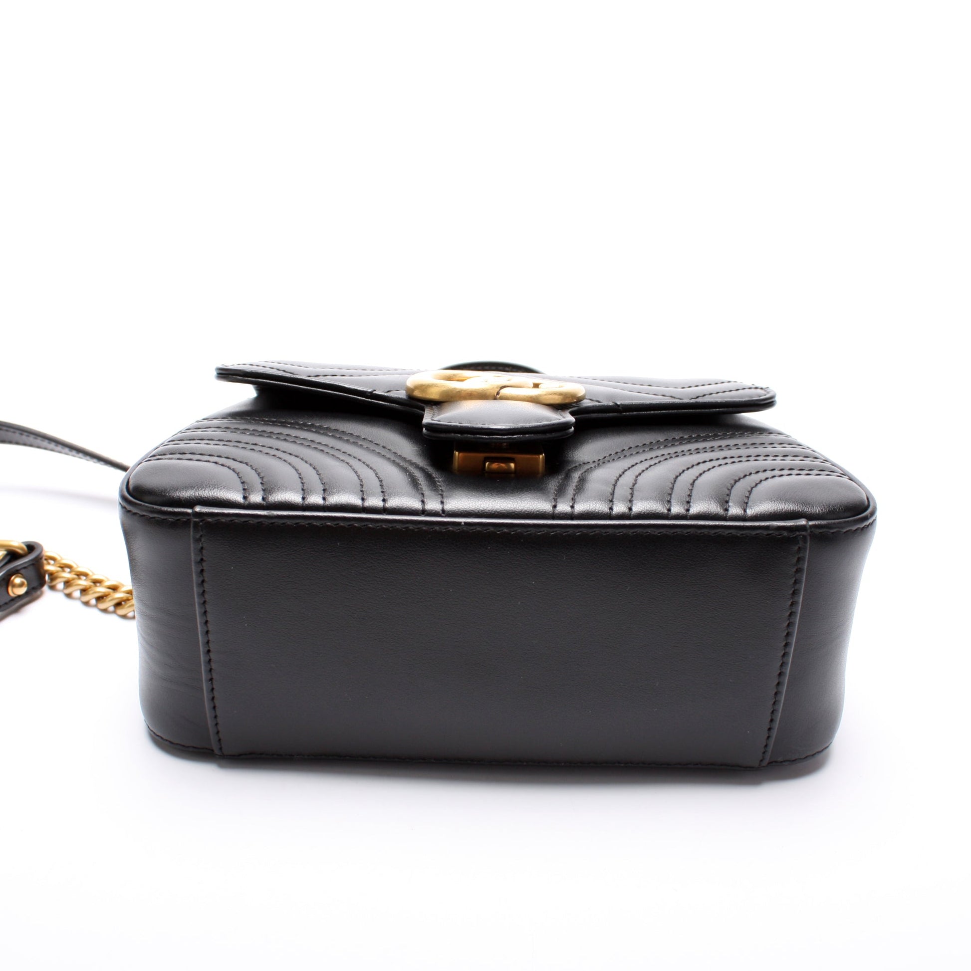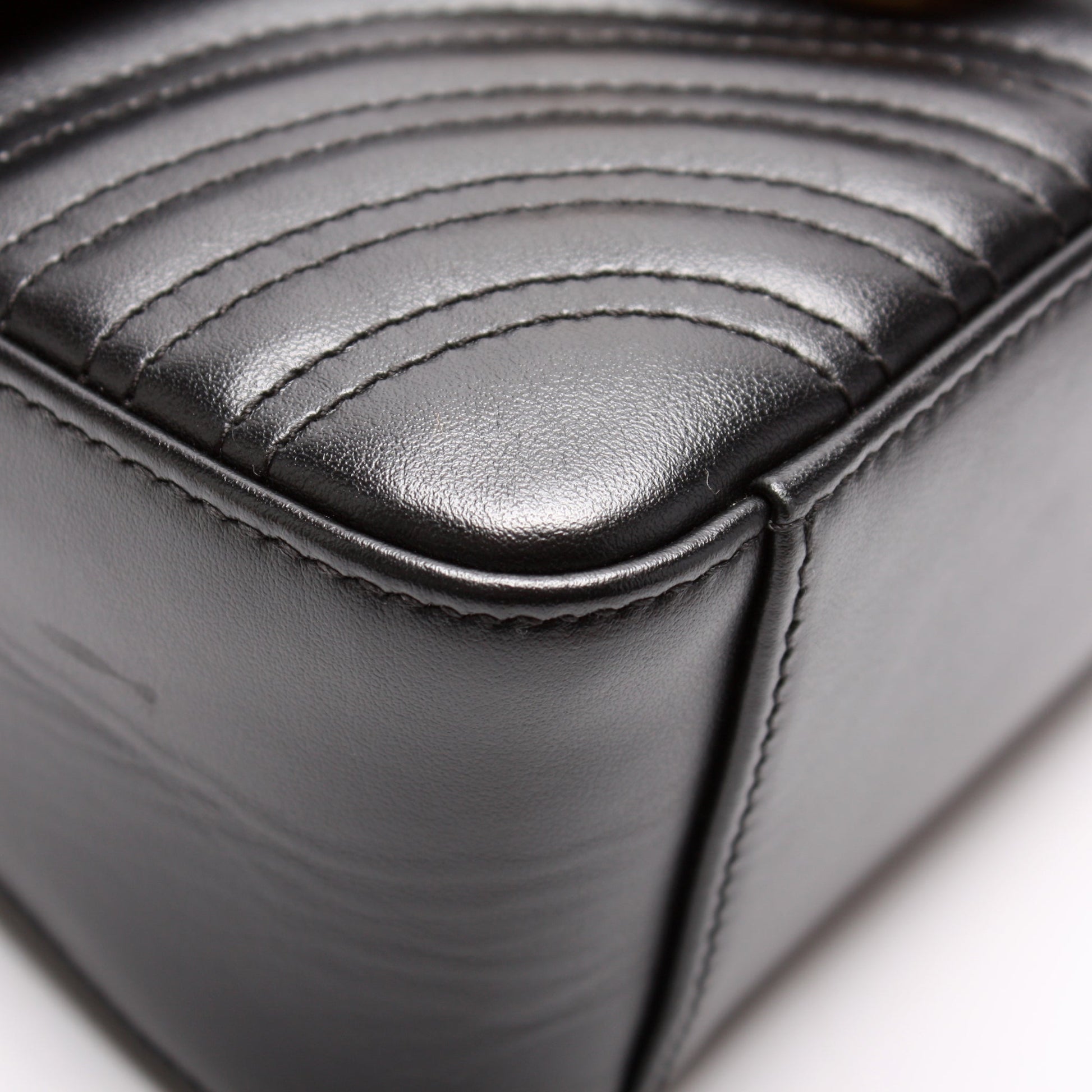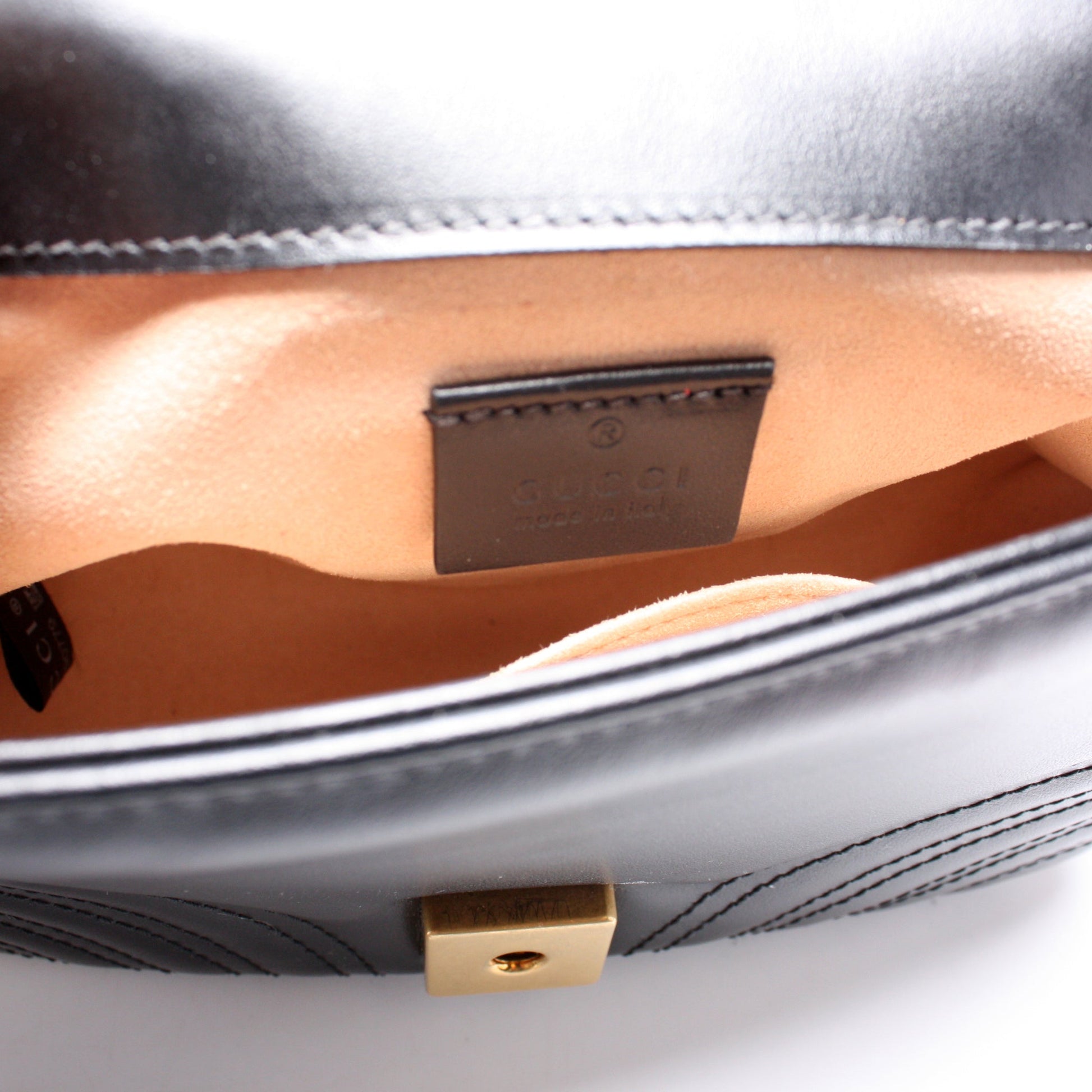 This Gucci 547260 GG Marmont Mini Top Handleis eye catching bag. The exterior is in the classic Marmont leather.