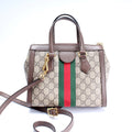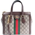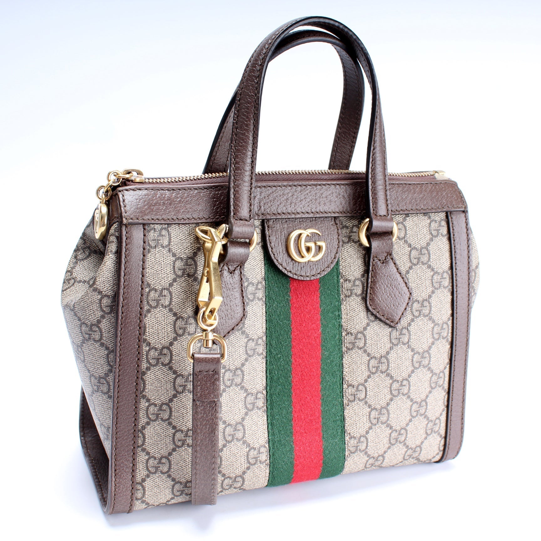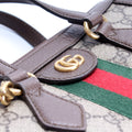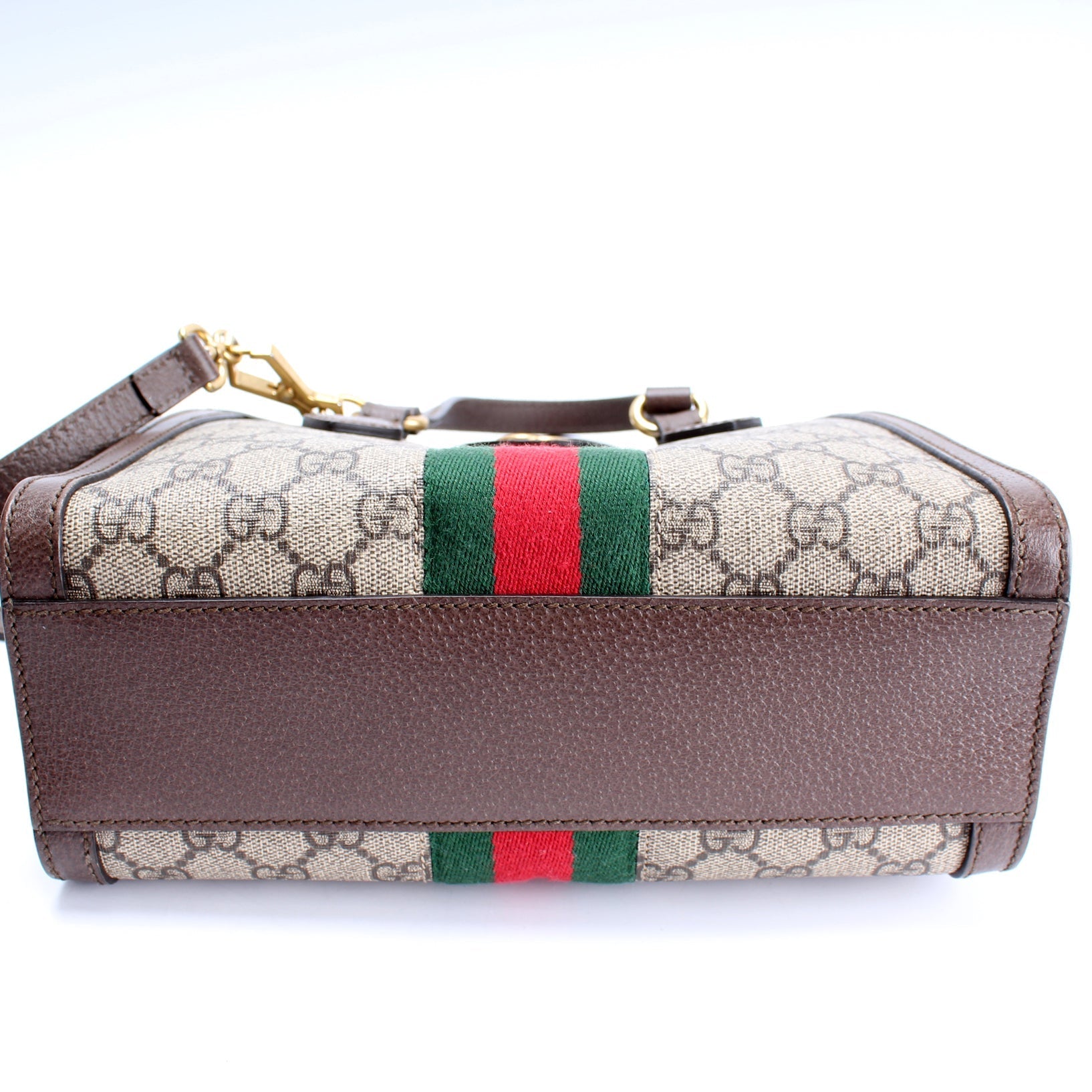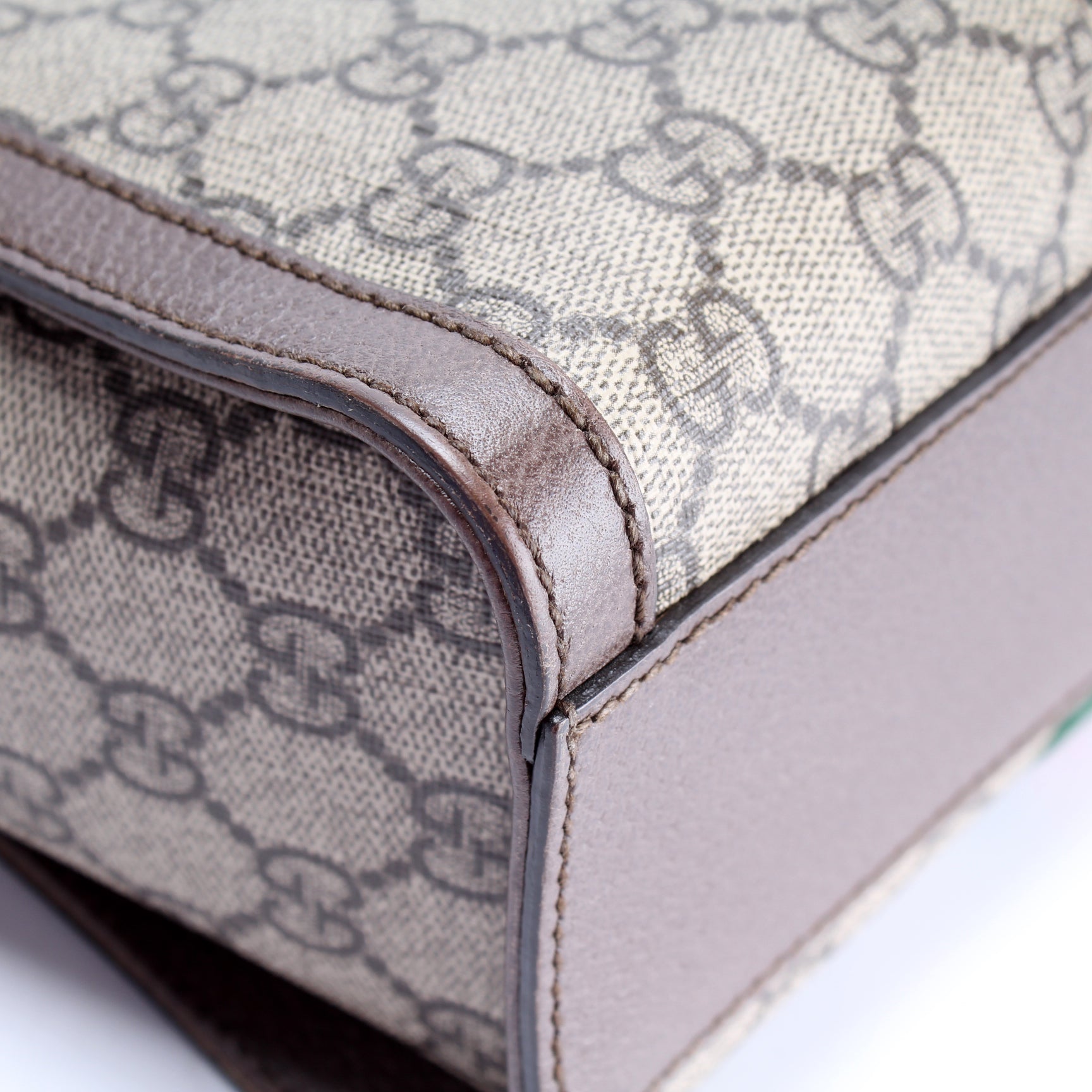 This Gucci Ophidia Small Toteis eye catching bag. The exterior is in the classic Gucci GG Supreme coated canvas.