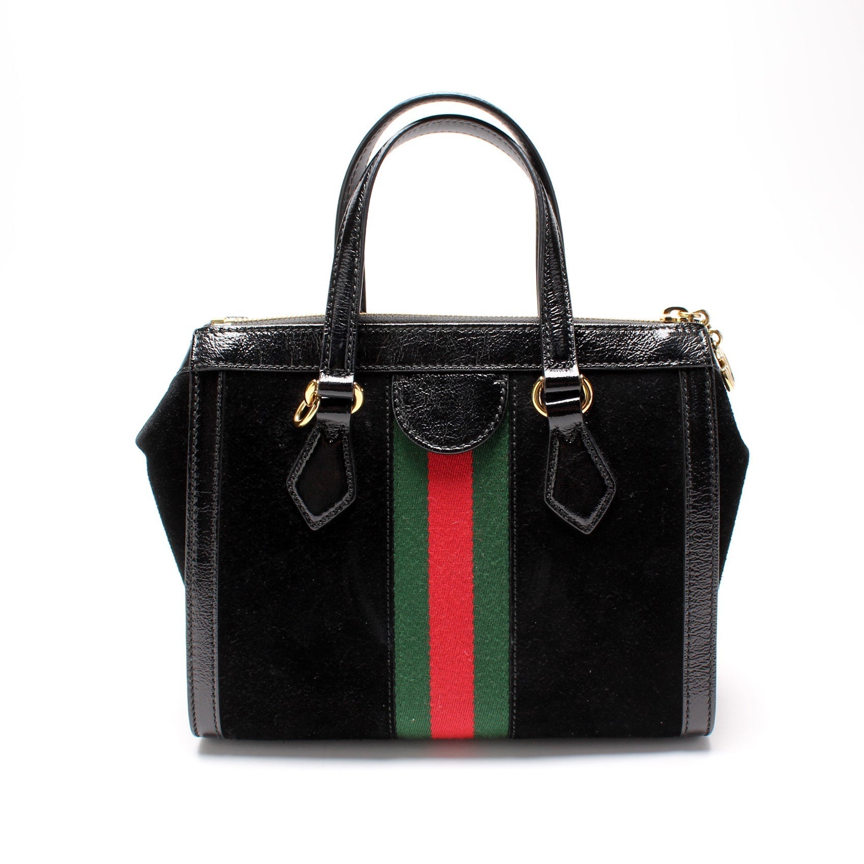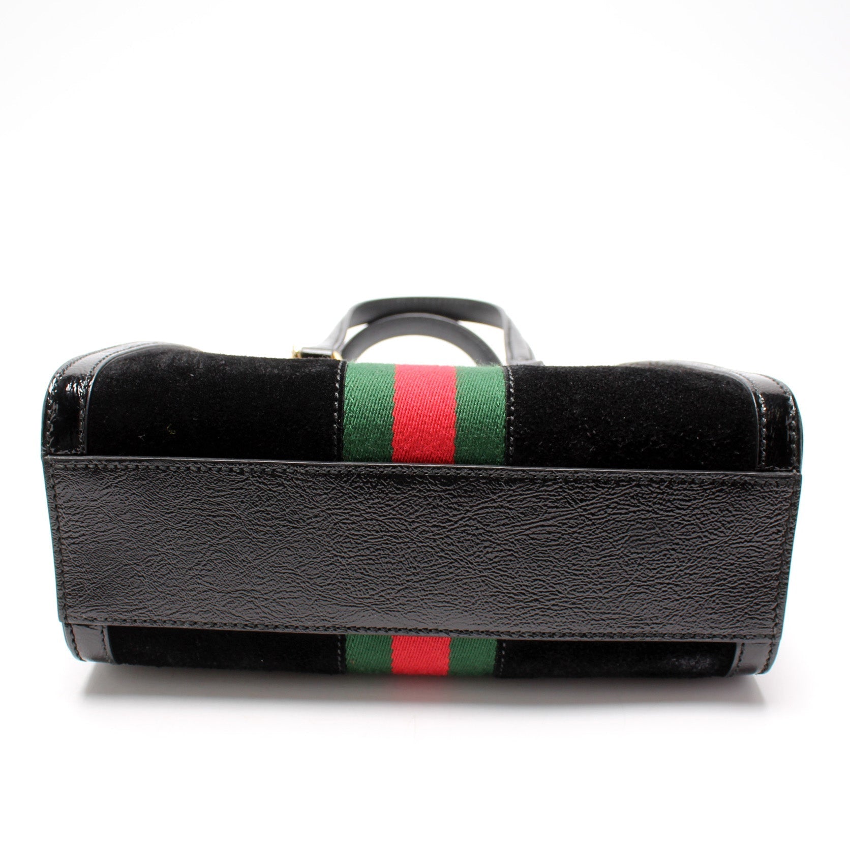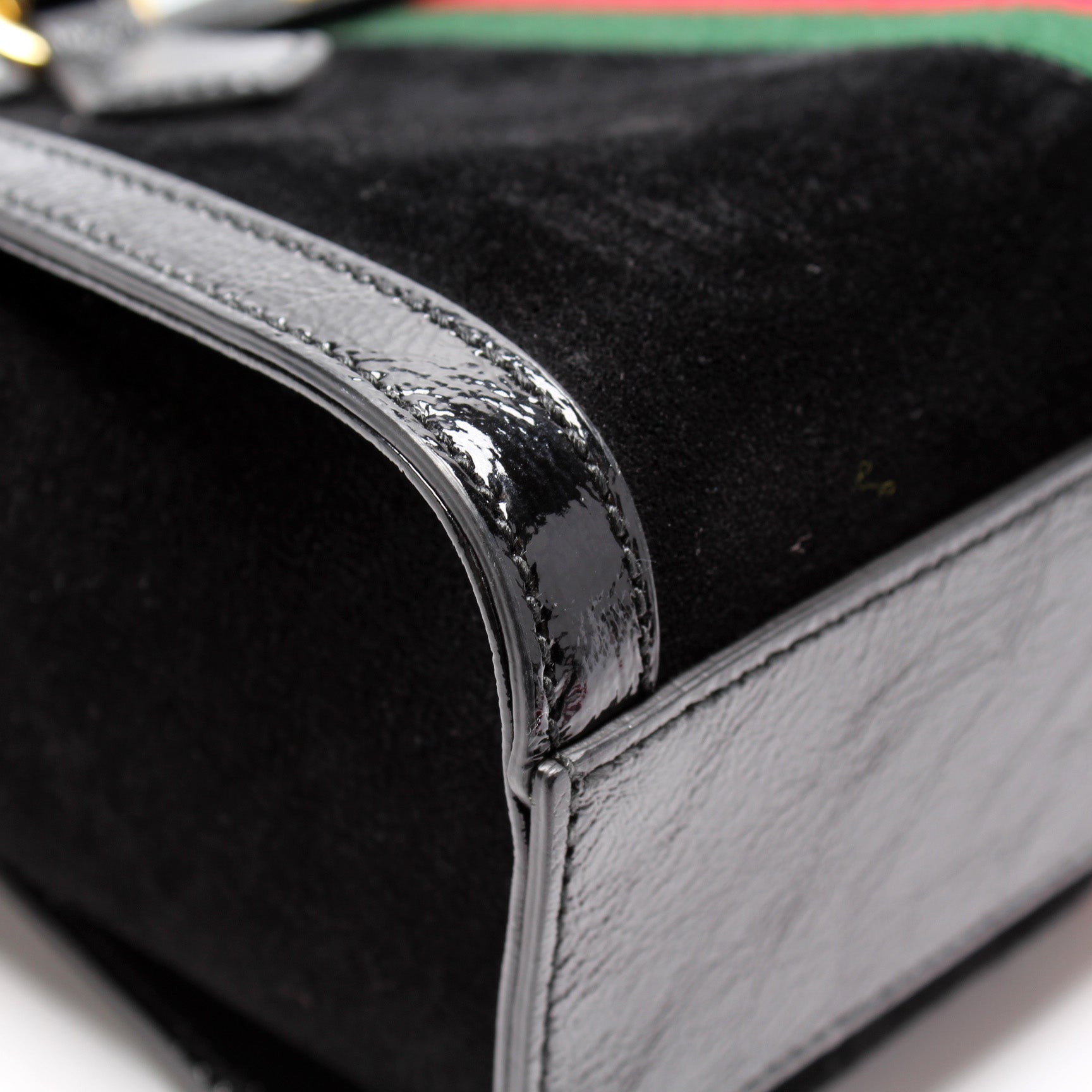 Exterior: The suede shows minor wear. There are markings from the handles.