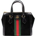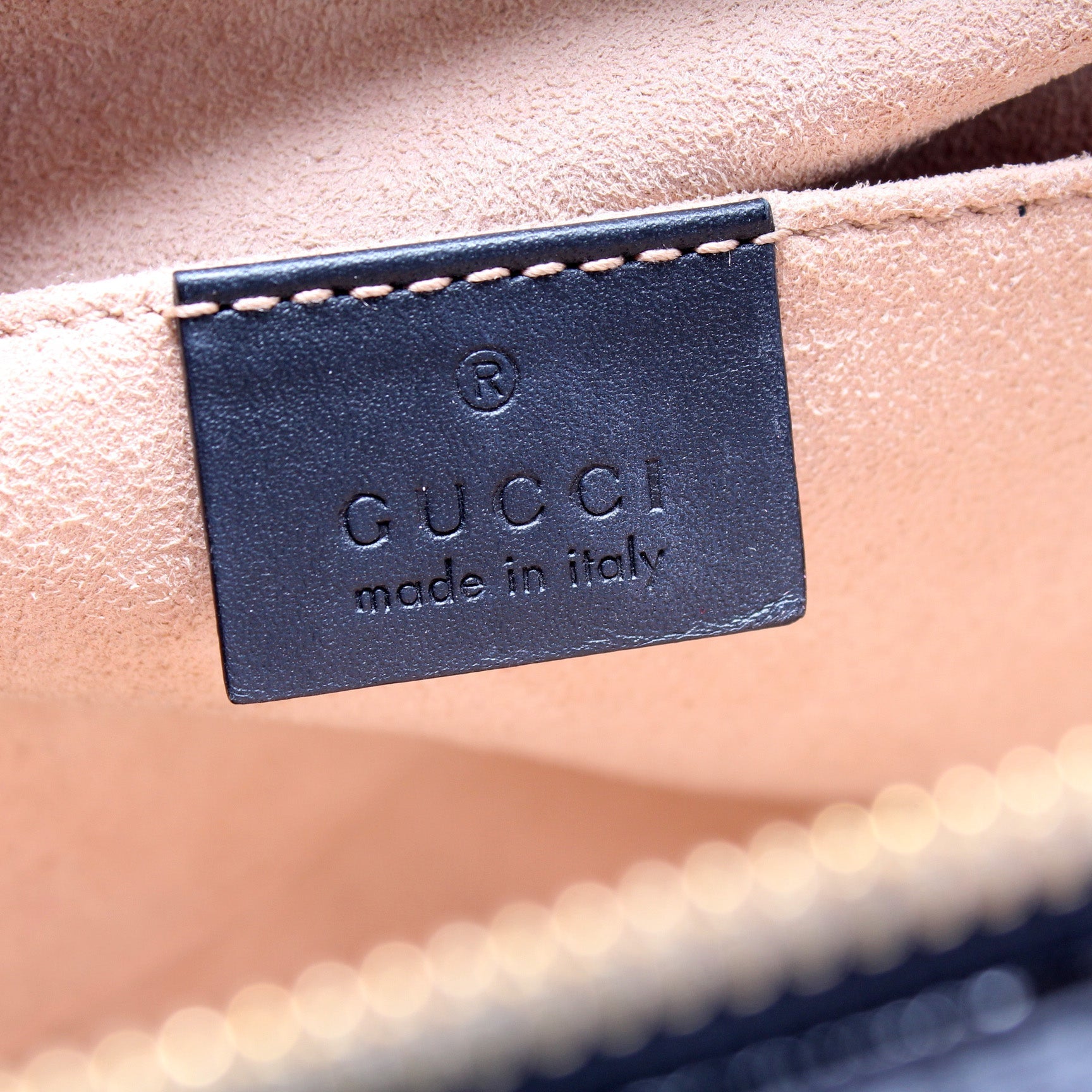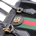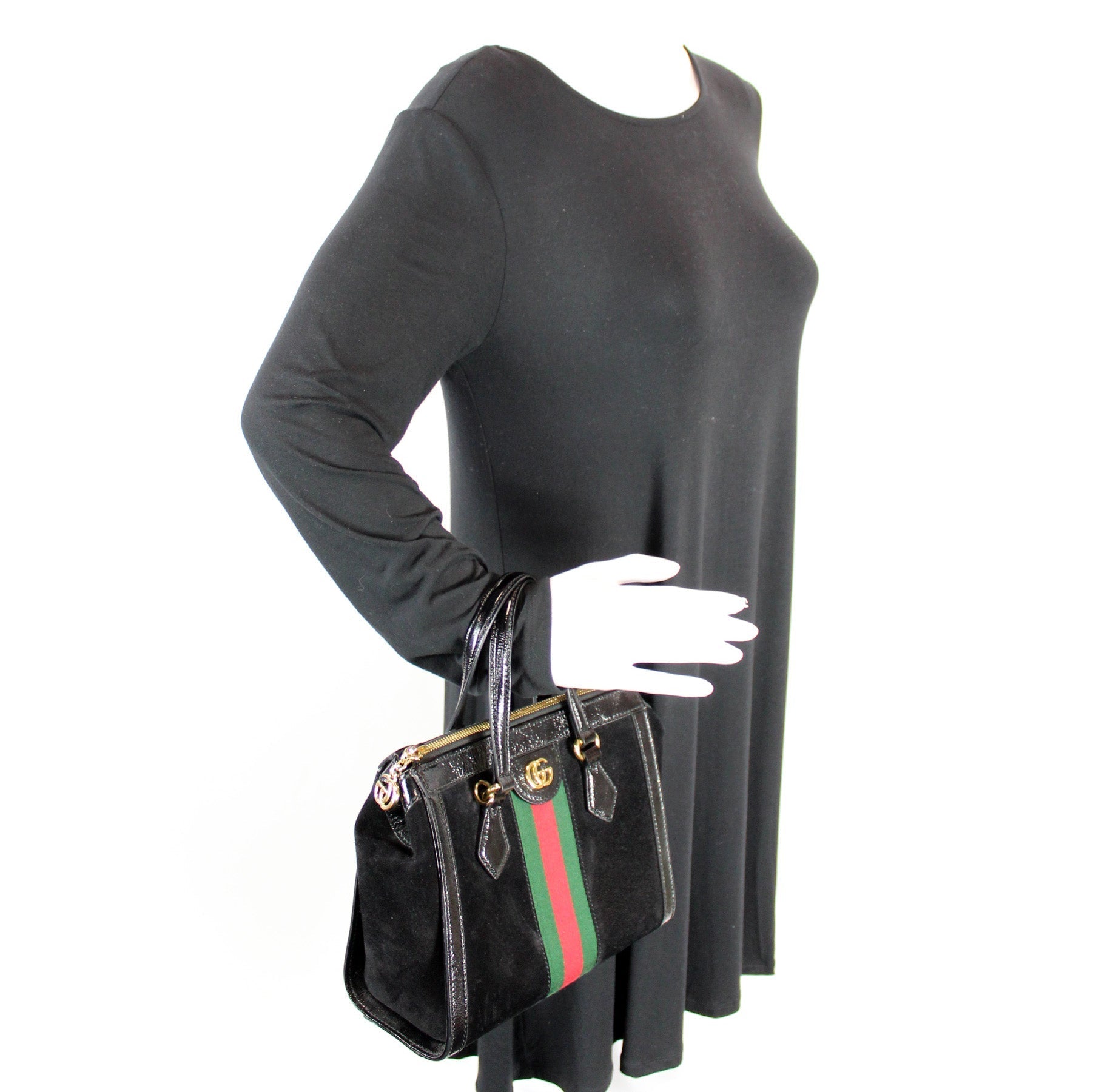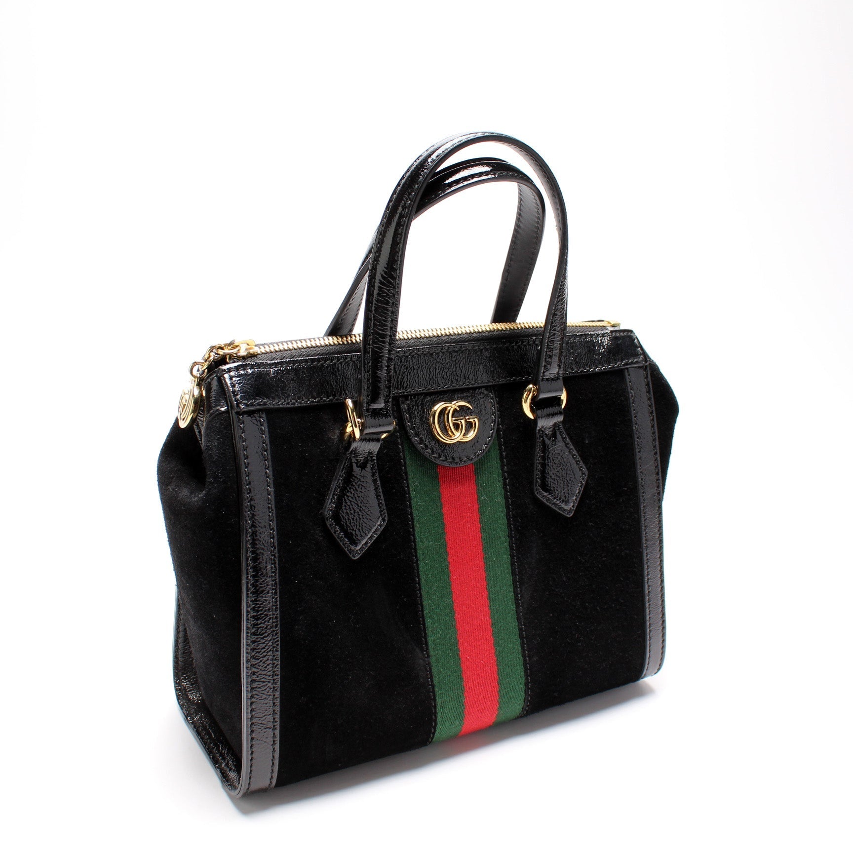 Exterior: The suede shows minor wear. There are markings from the handles.