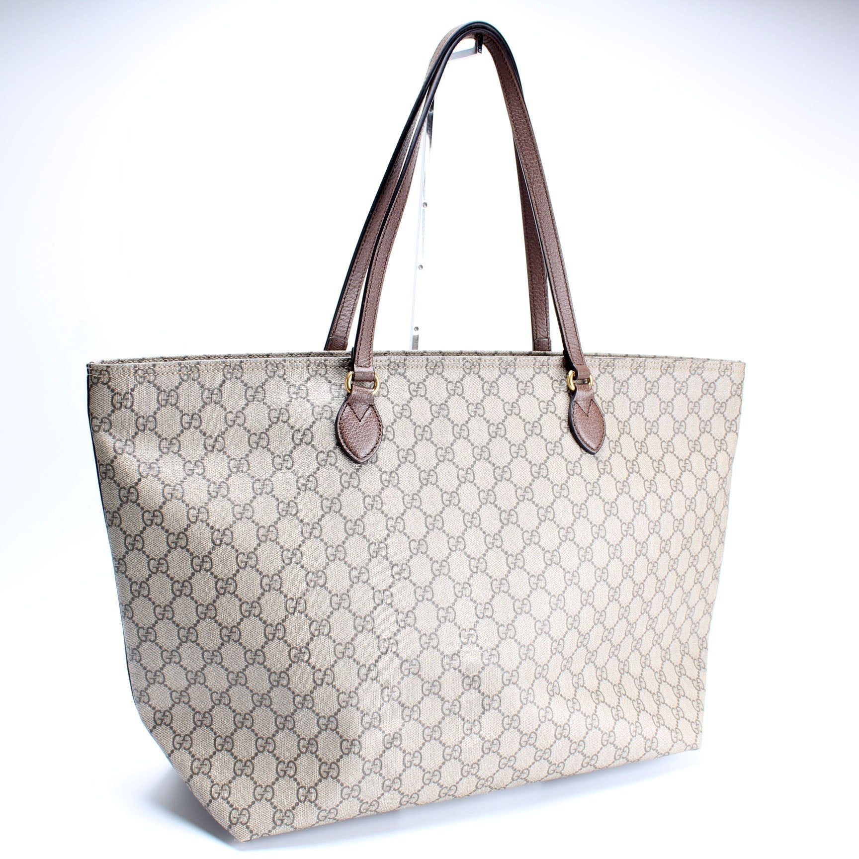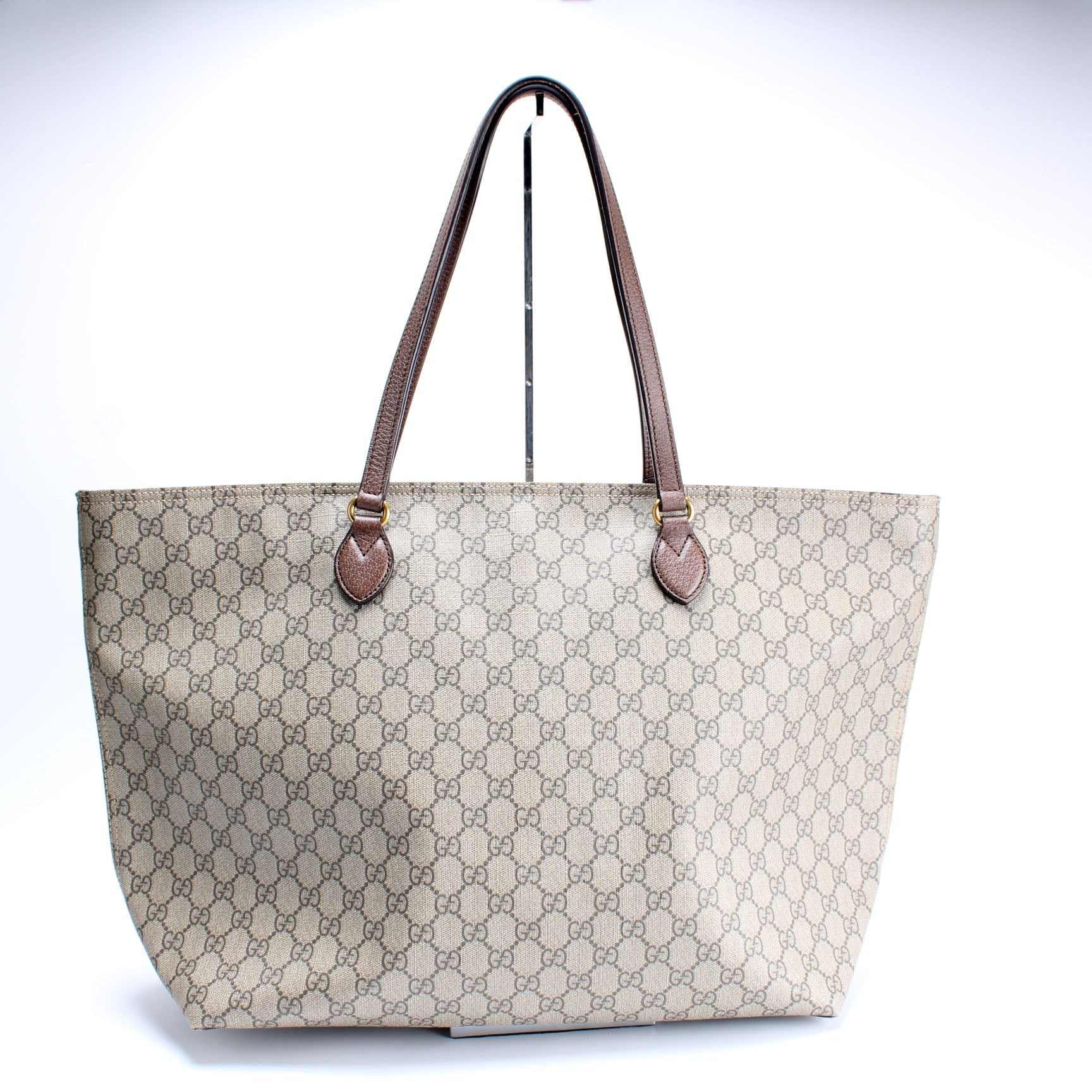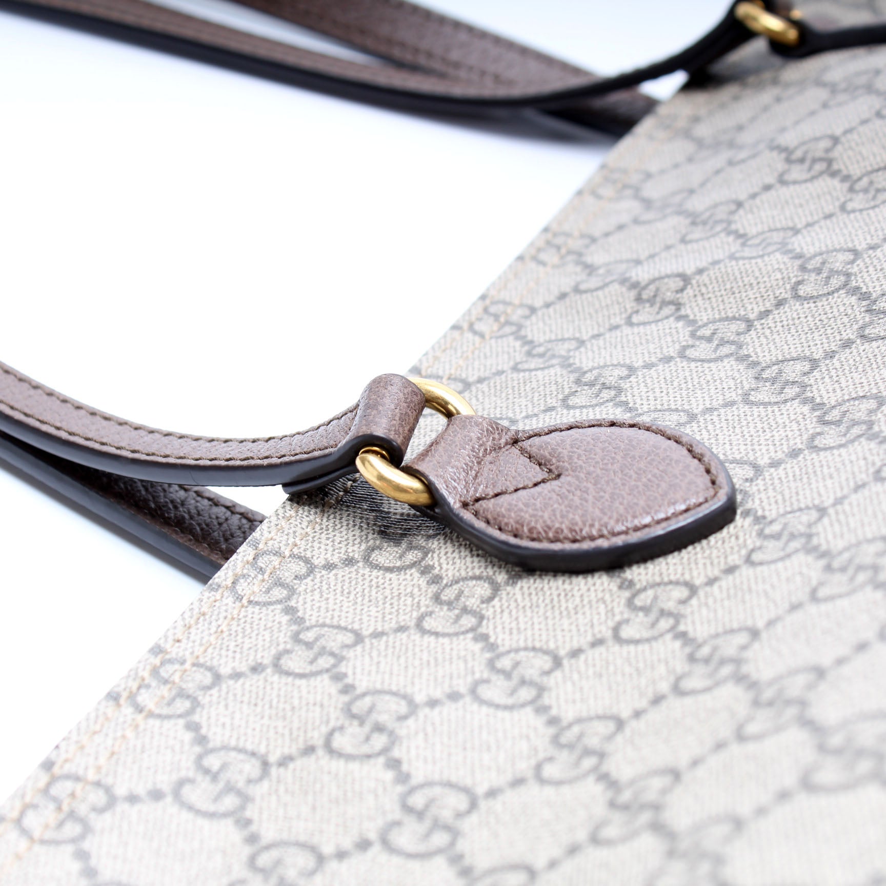 This Gucci GG Ophidia Medium Tote is guaranteed 100% authentic. The exterior is in the classic Gucci GG Supreme coated canvas.