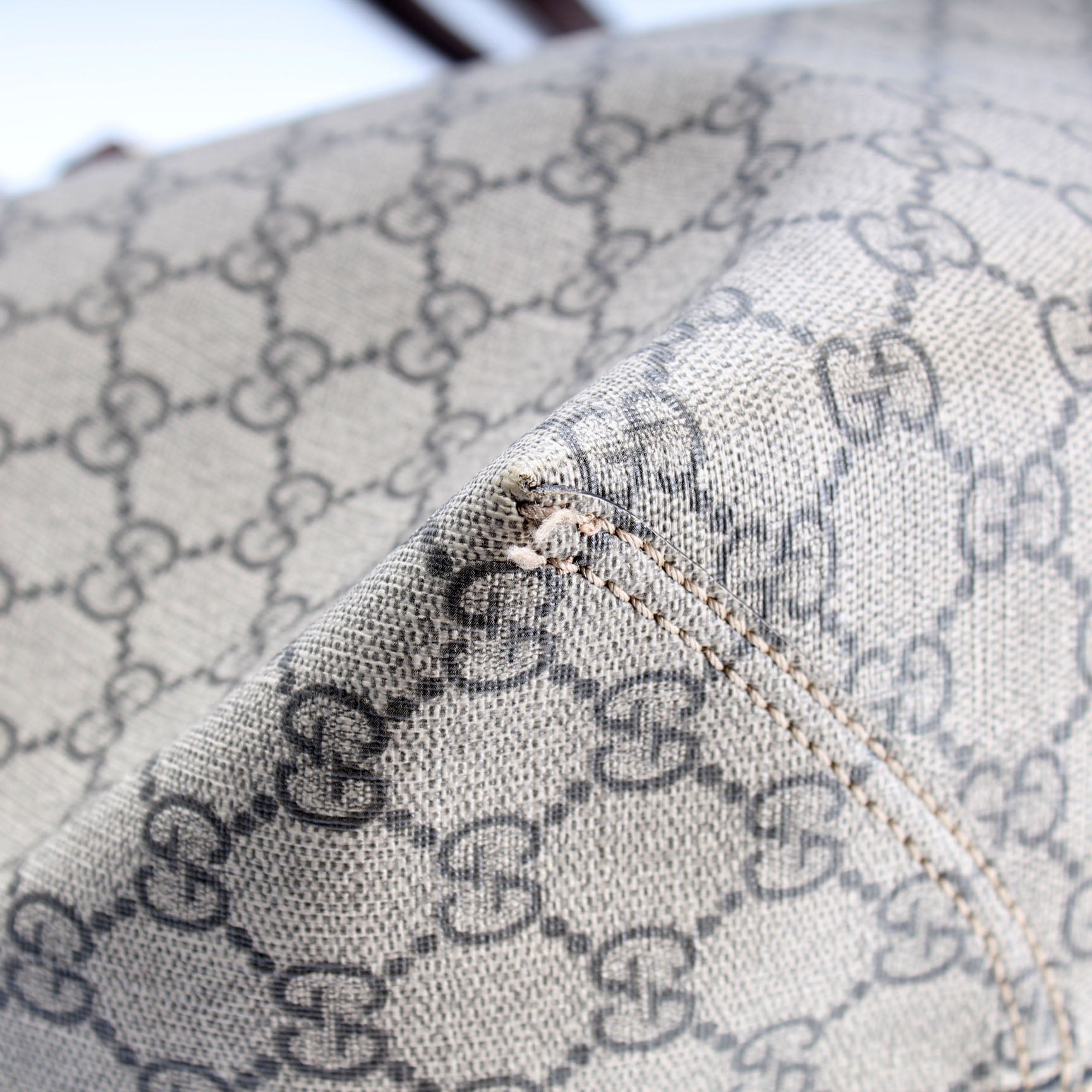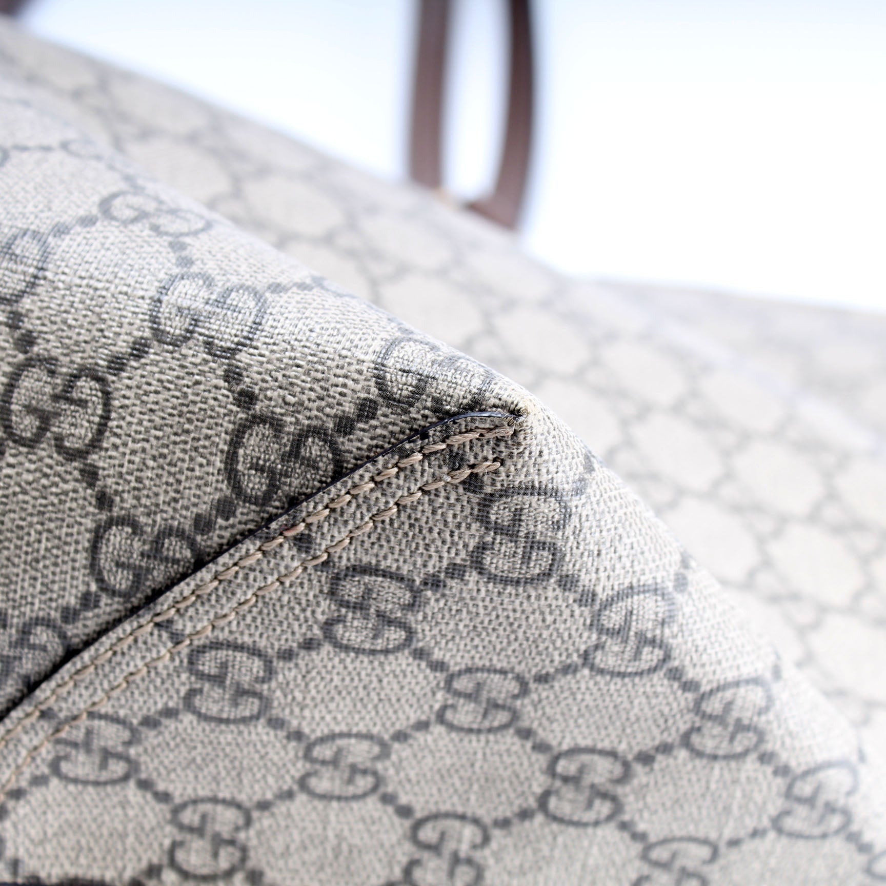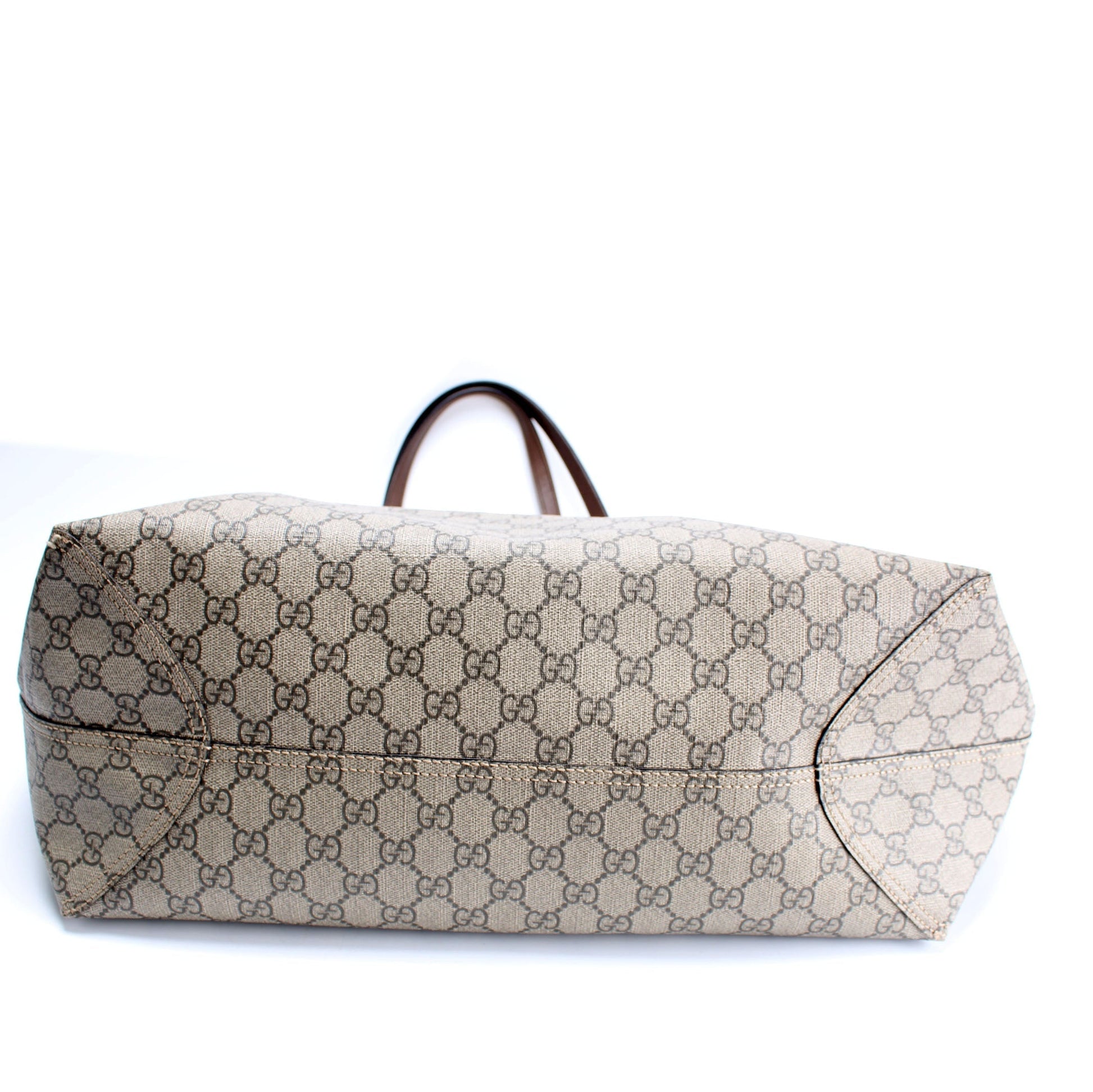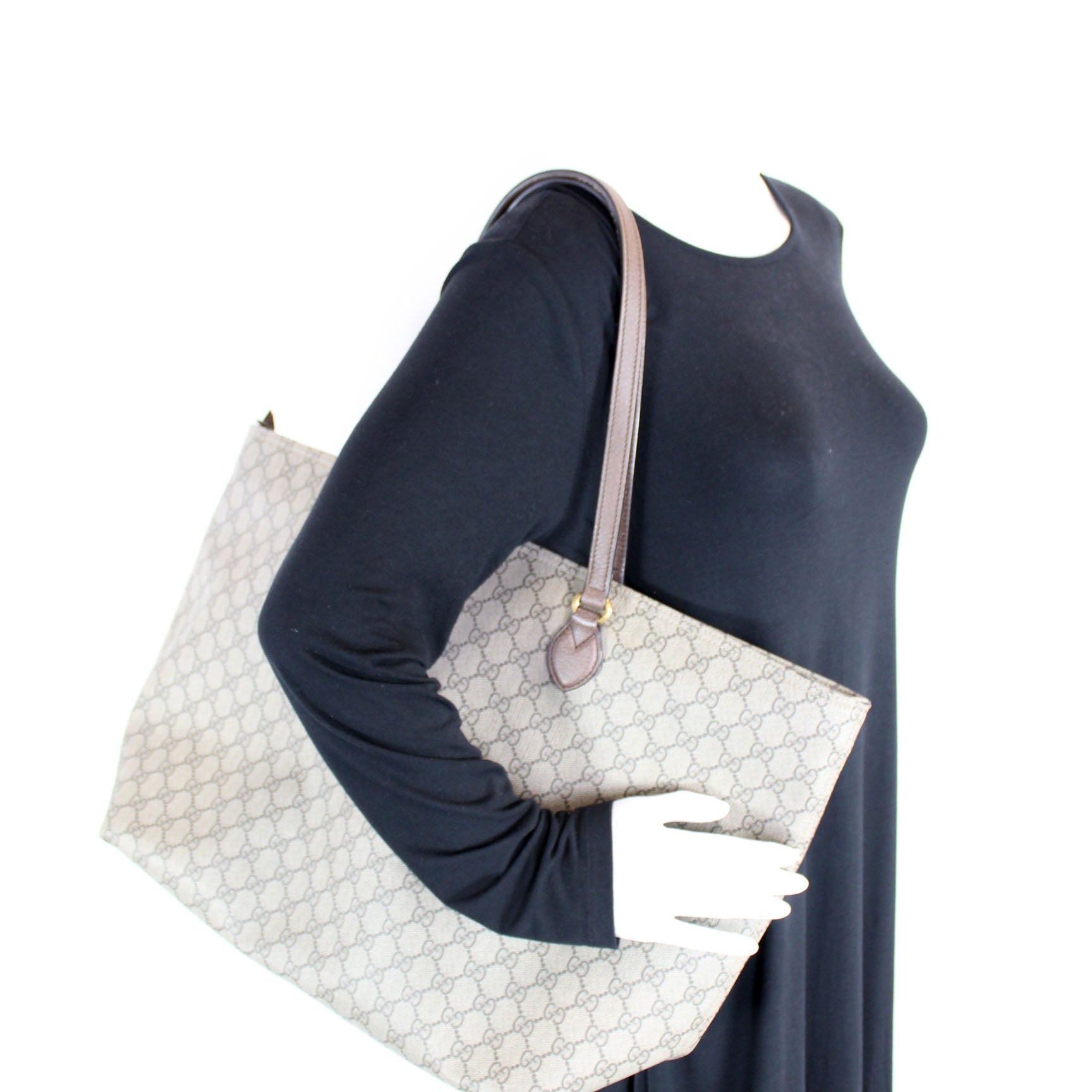 This Gucci GG Ophidia Medium Tote is guaranteed 100% authentic. The exterior is in the classic Gucci GG Supreme coated canvas.