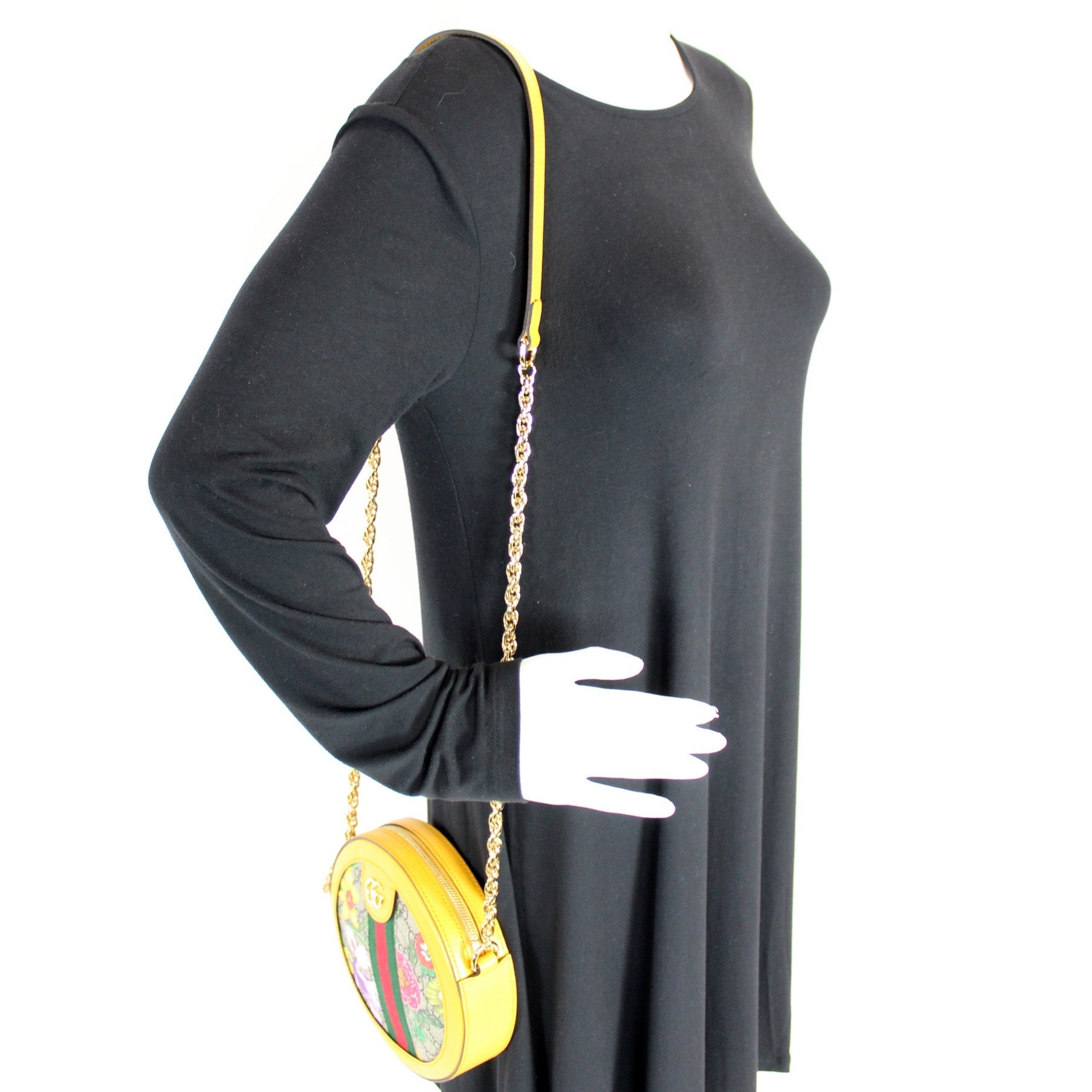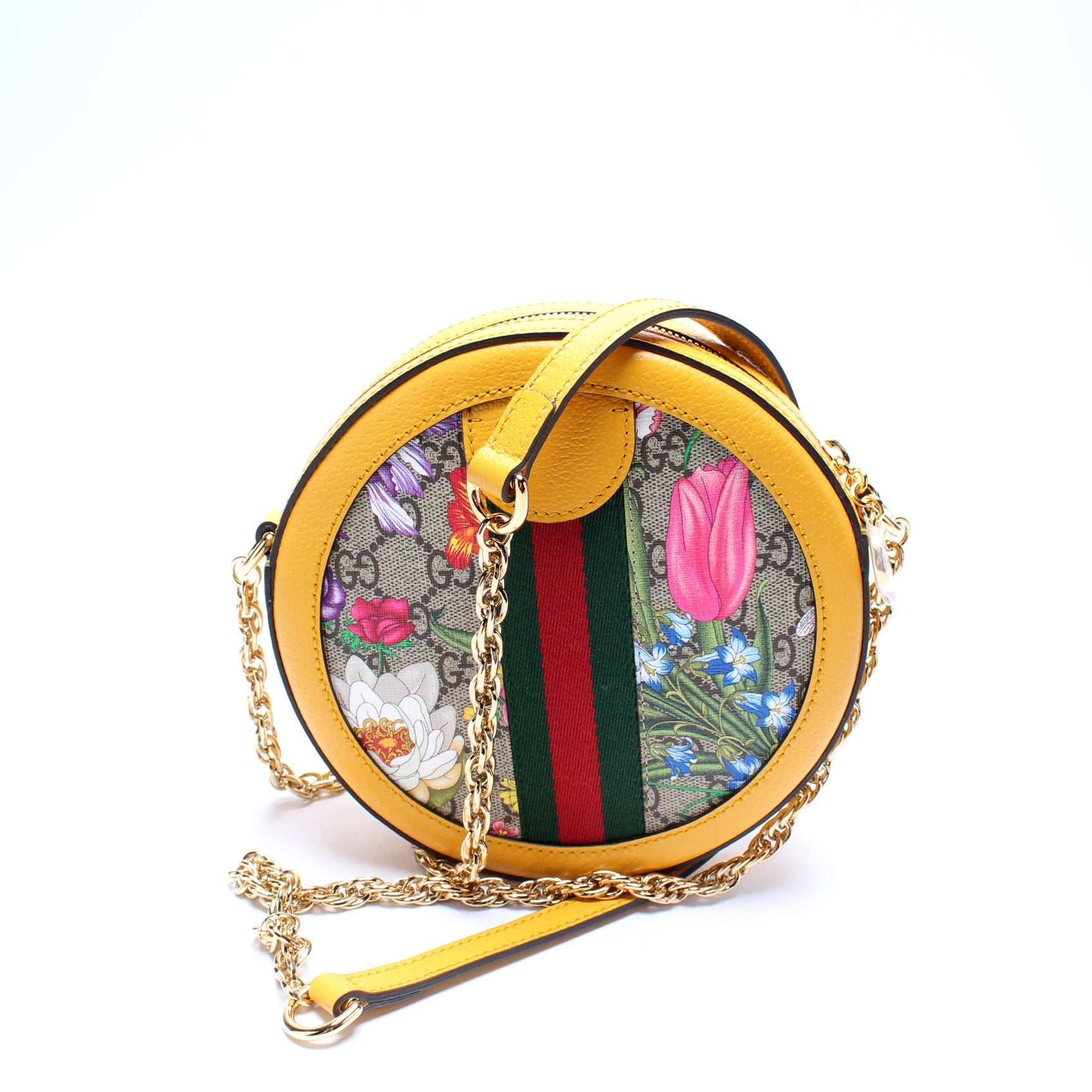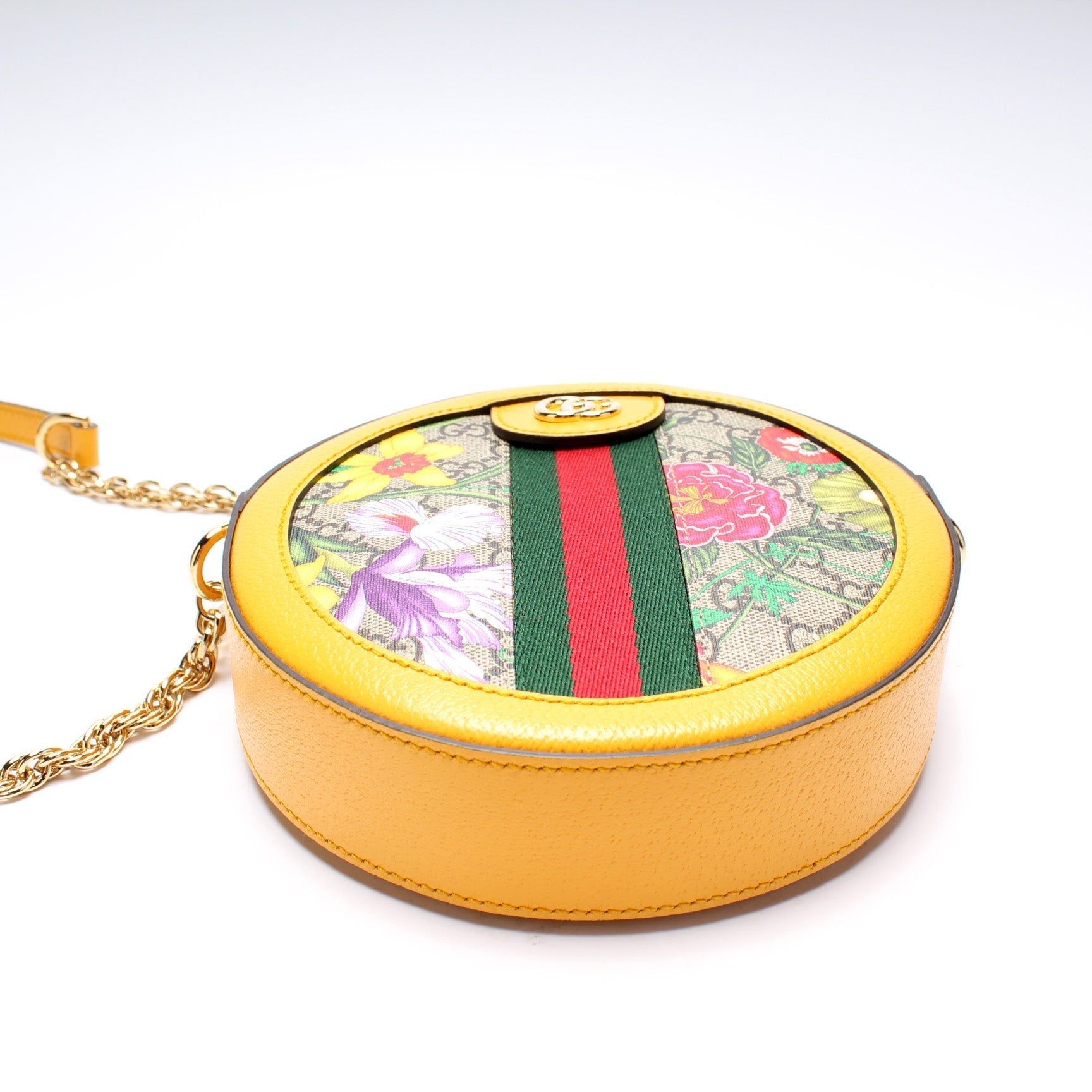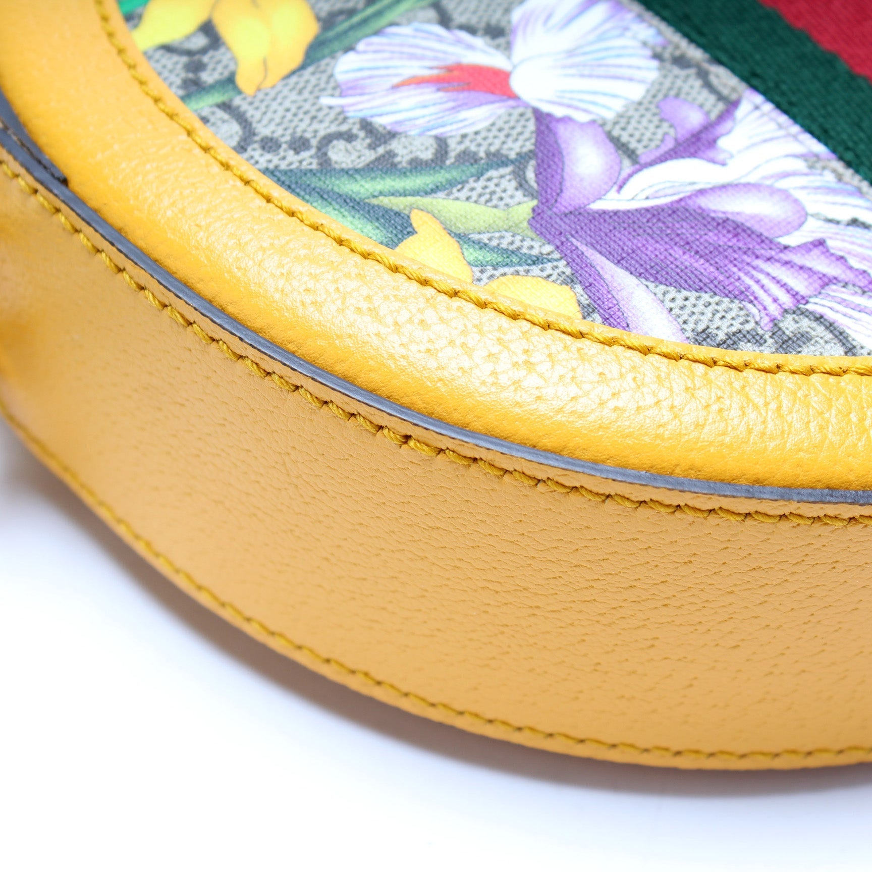 This Gucci Ophidia GG Flora Round Small Crossbody is d 100% . The exterior is in the classic Gucci GG Supreme coated canvas.