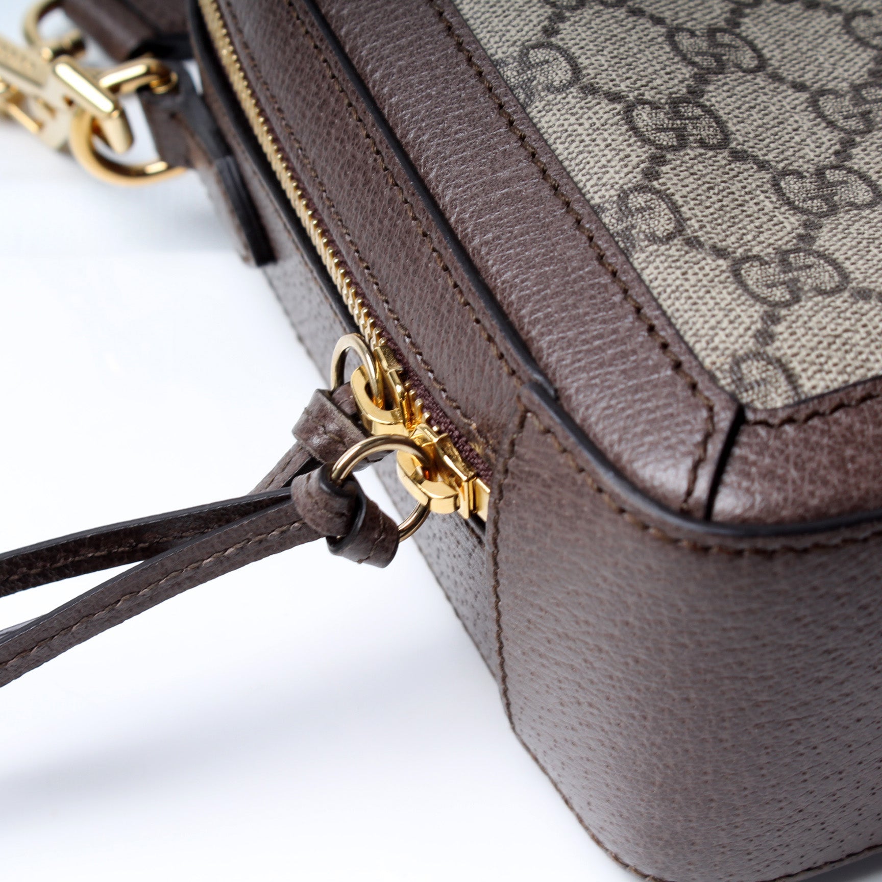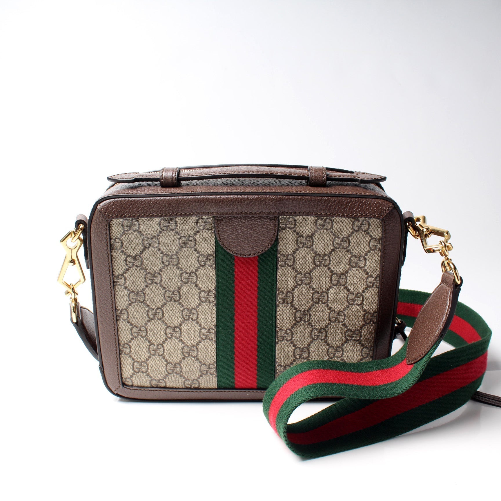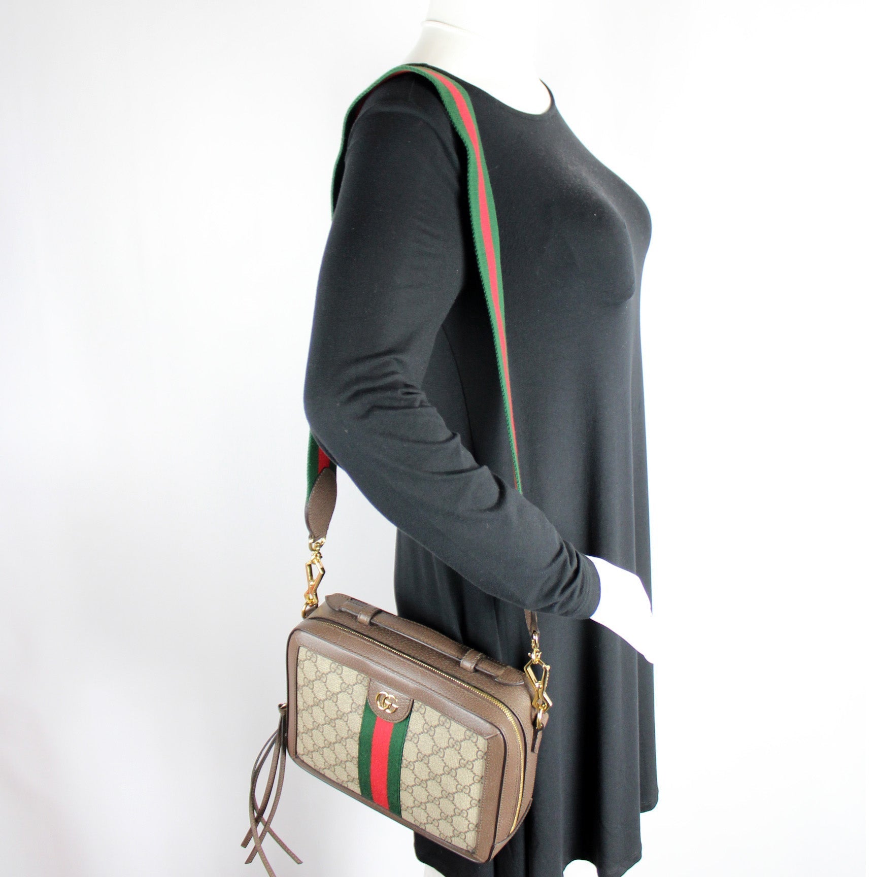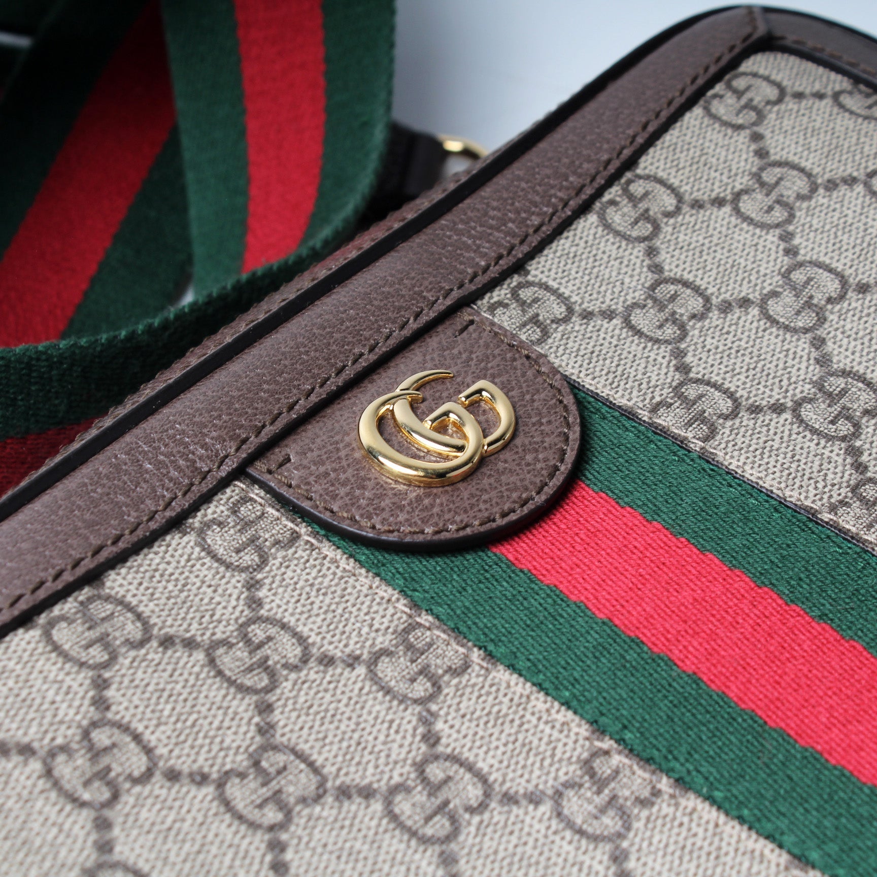 This Gucci Ophidia Canvas Small Shoulderis eye catching bag. The exterior is in the classic GG coated canvas.