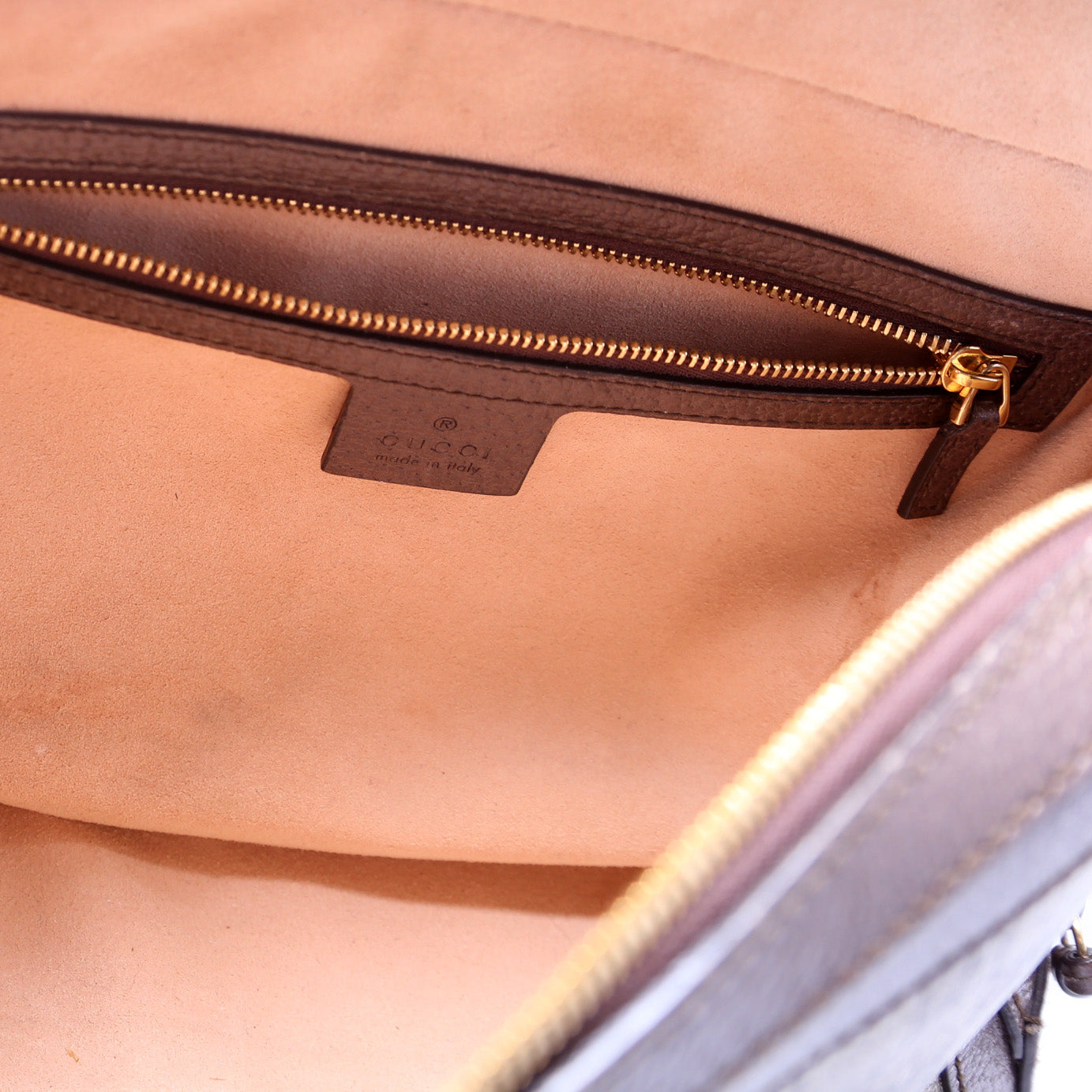 This Gucci Ophidia Small Crossbodyis eye catching bag. The exterior is in the classic GG canvas.