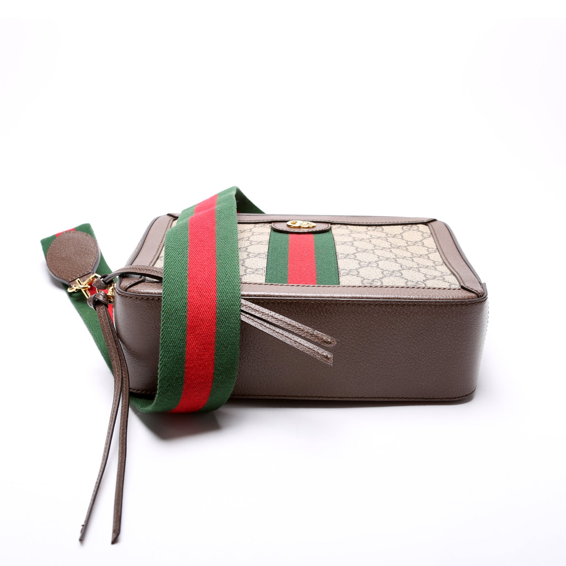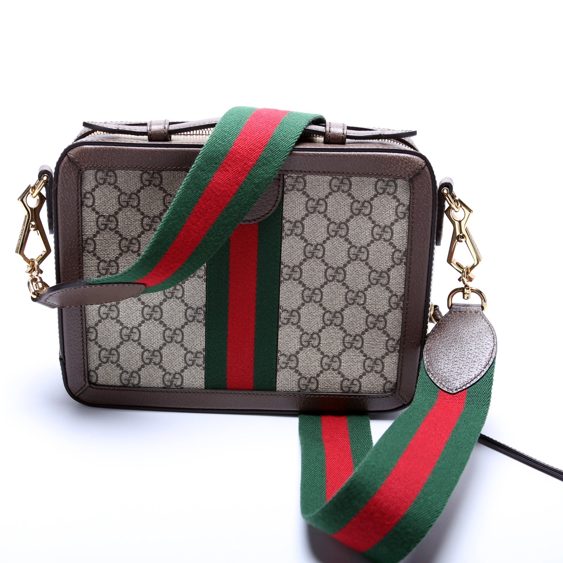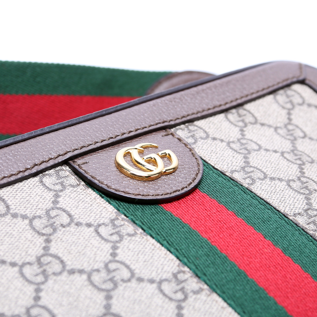 This Gucci Ophidia Canvas Small Shoulderis eye catching bag. The exterior is in the classic GG coated canvas.