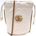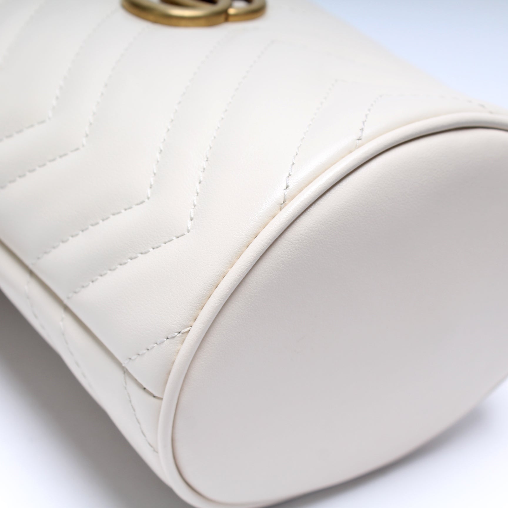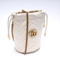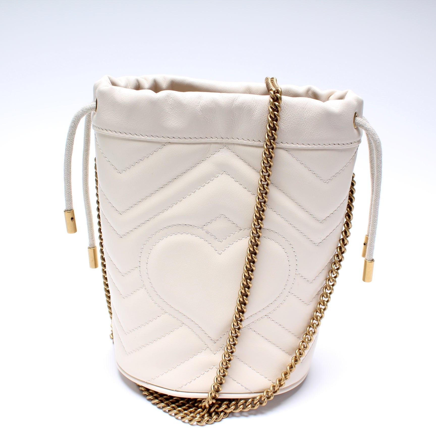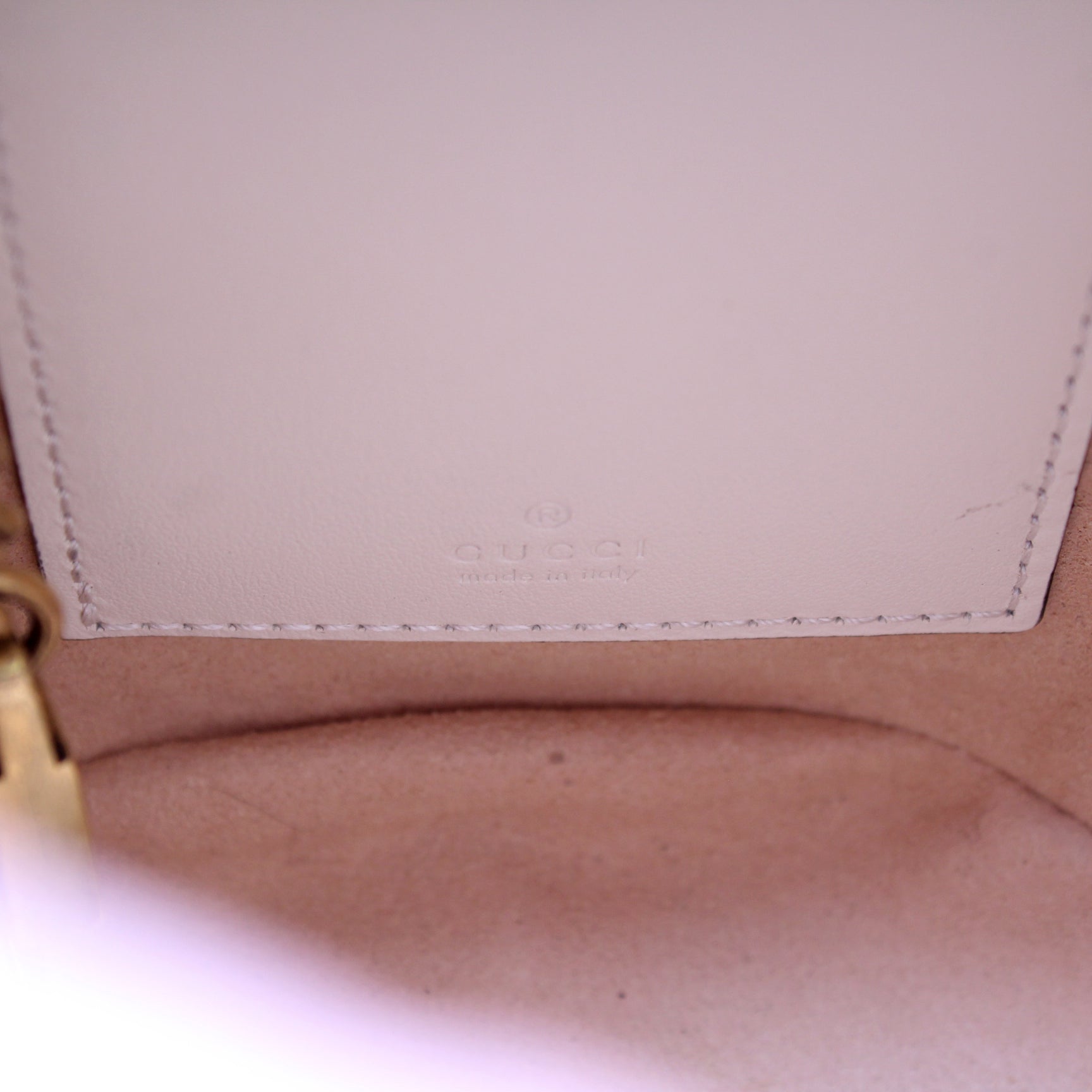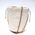 This Gucci Marmont Mini Bucketis eye catching bag. The exterior is in the classic Gucci Marmont leather.