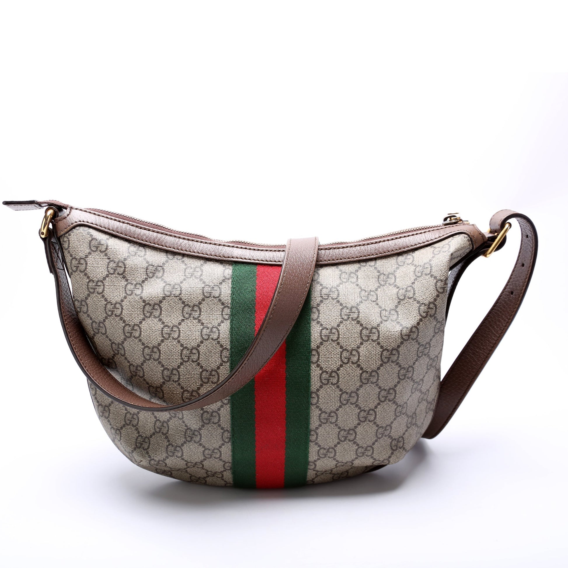 This Gucci Ophidia Small Shoulder Bag is d 100% . The exterior is in the classic Gucci GG Supreme coated canvas.