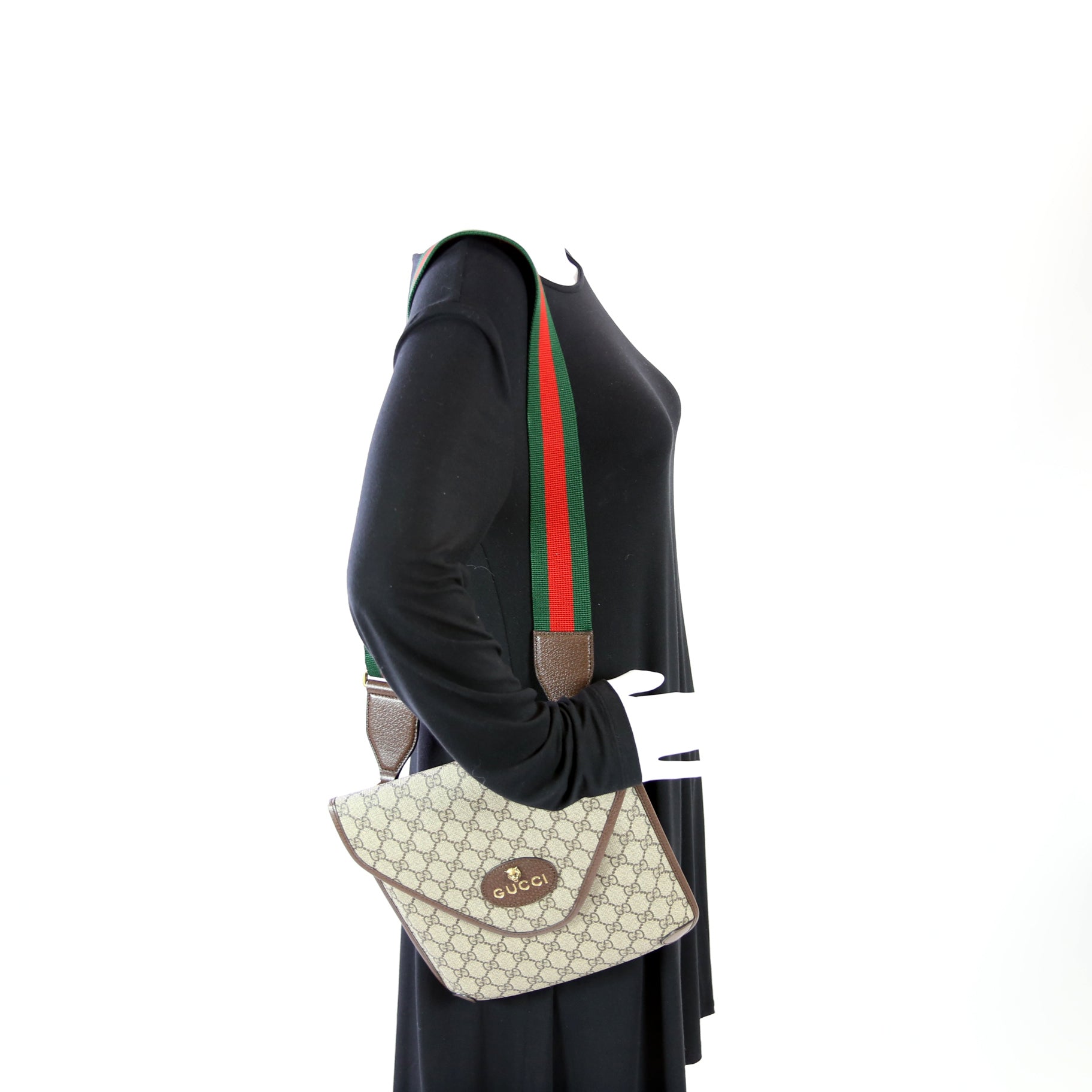 This Gucci GG Supreme Neo Vintage Messengeris eye catching bag. The exterior is in the classic Gucci GG Supreme coated canvas.
