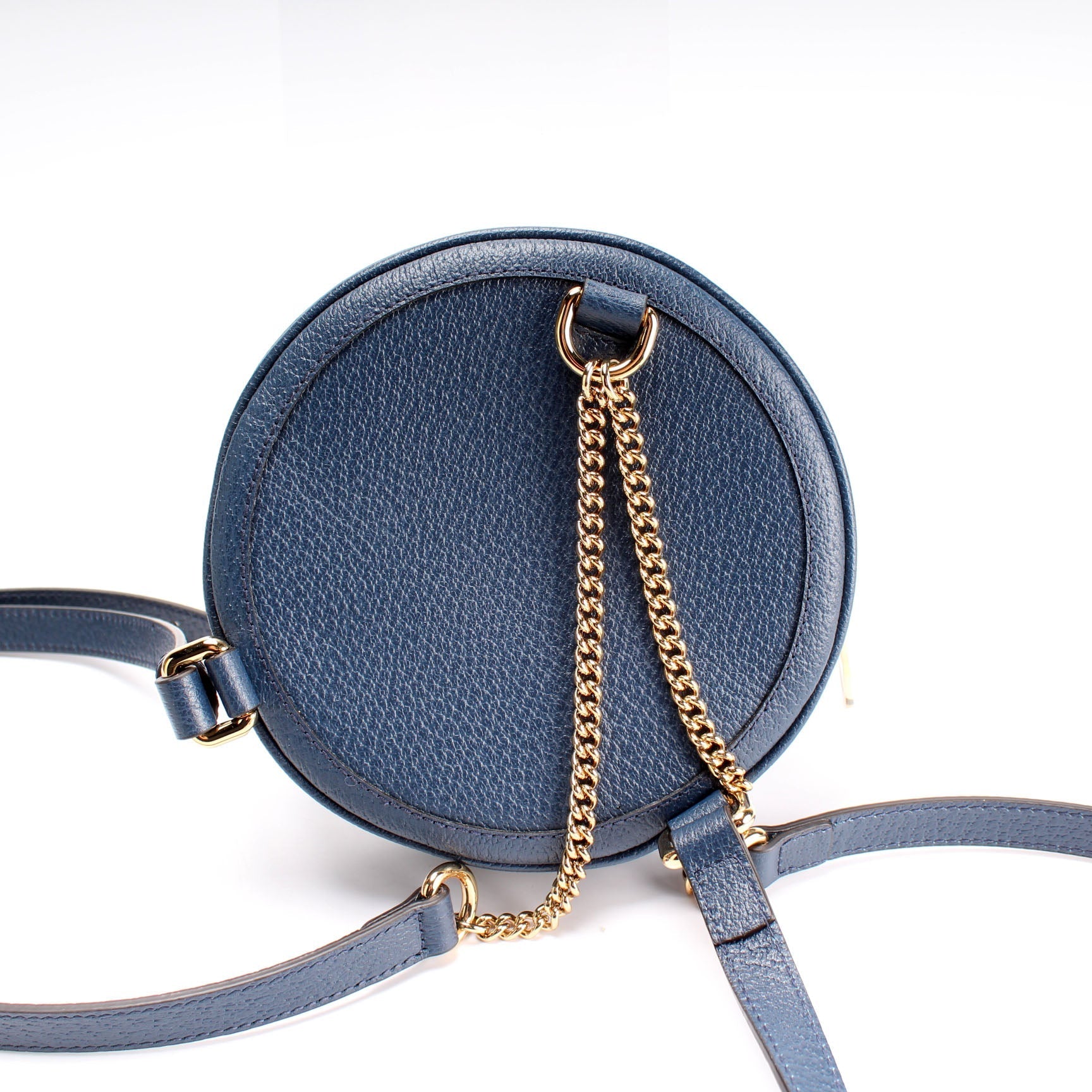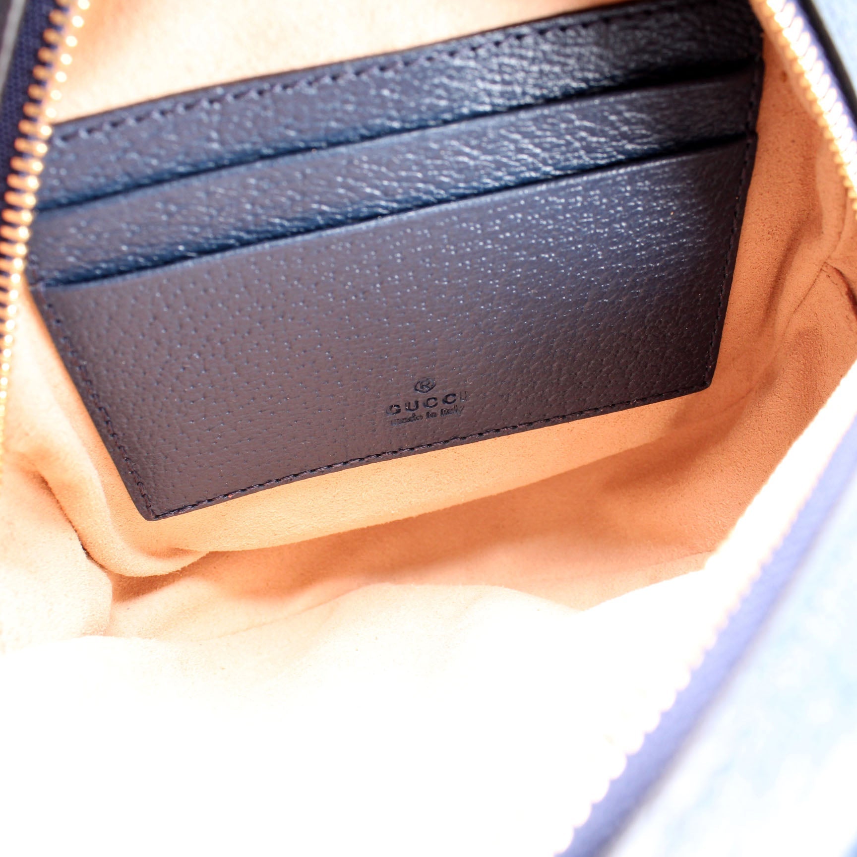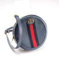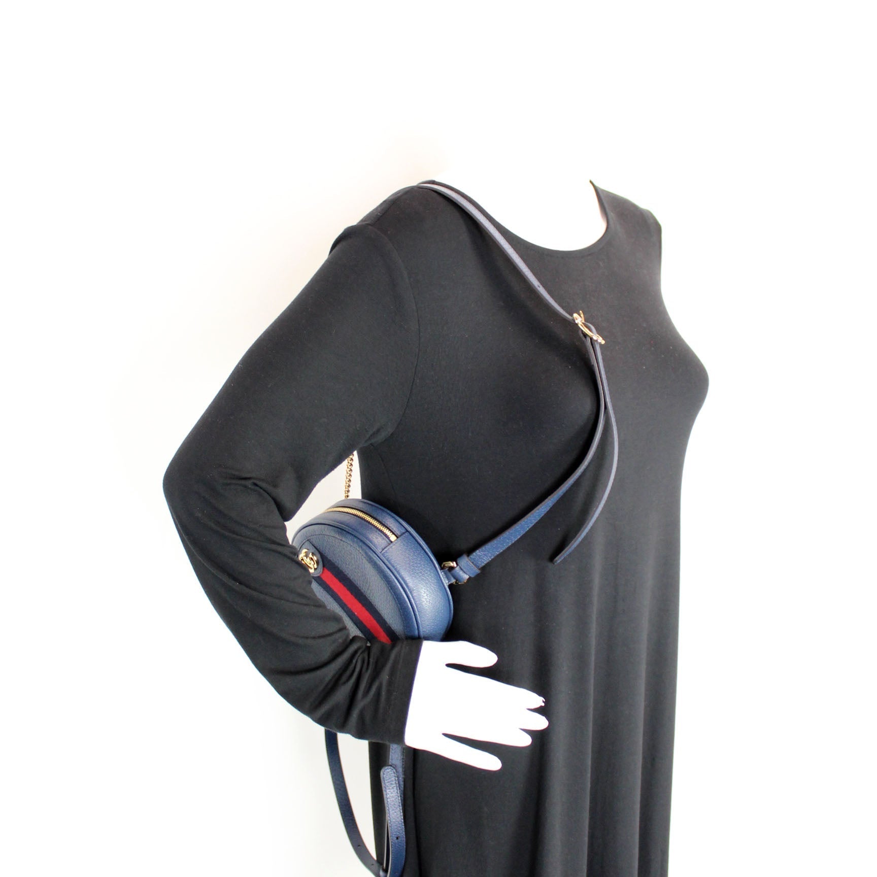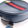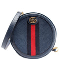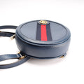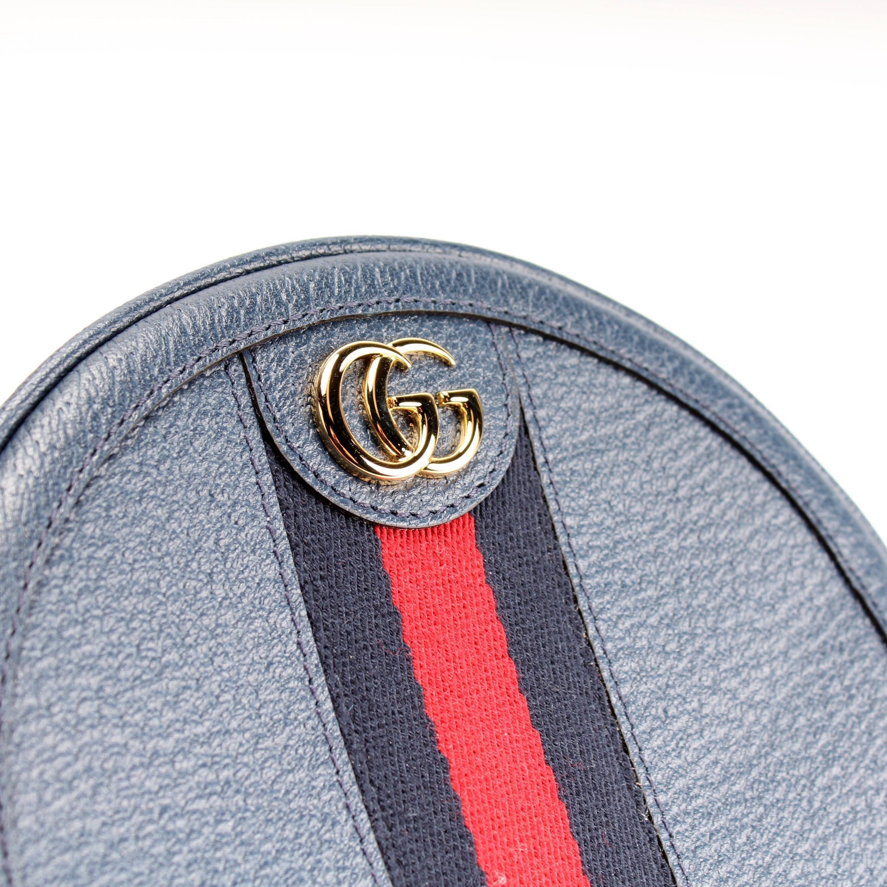 This Gucci Ophidia Web Mini Round Backpackis eye catching bag. The exterior is in the classic GG Supreme Flora coated canvas.