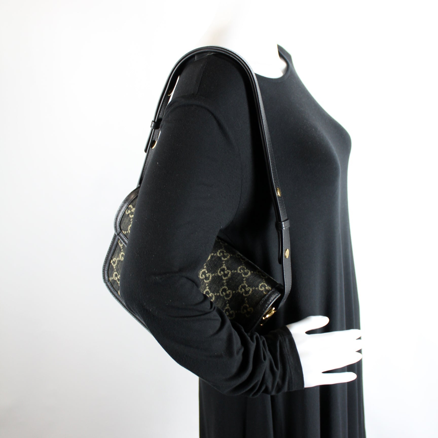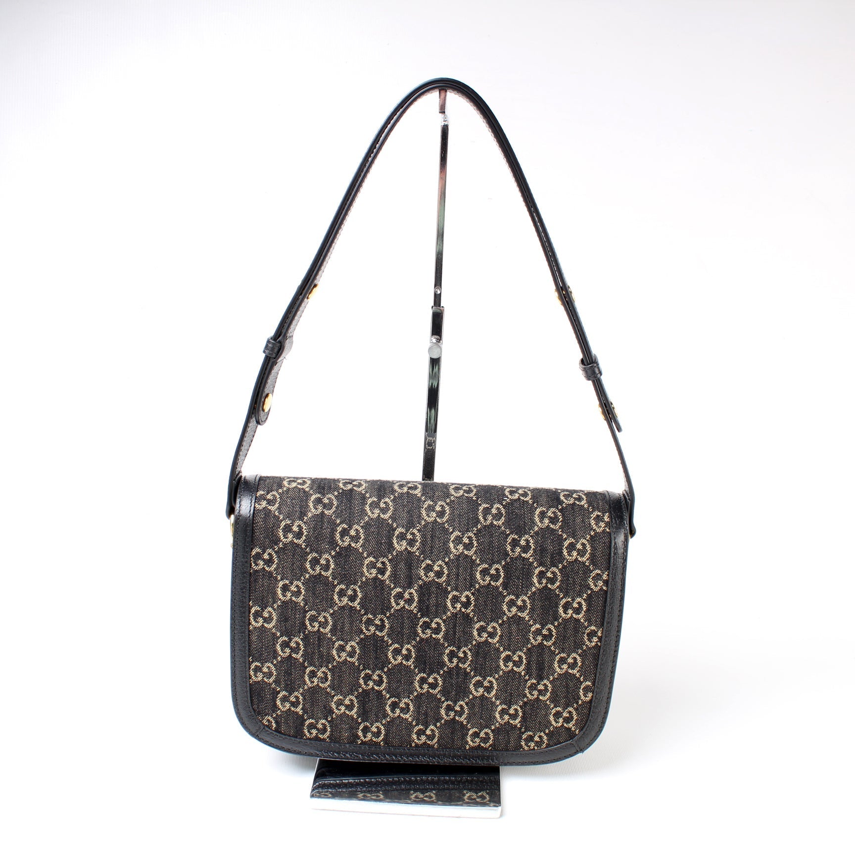 This Gucci Shoulder Bagis eye catching bag. The exterior is in the classic Gucci Denim Canvas.