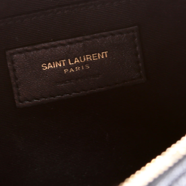 Hardware: The zip closure operates properly. The YSL logo shows light scratches.