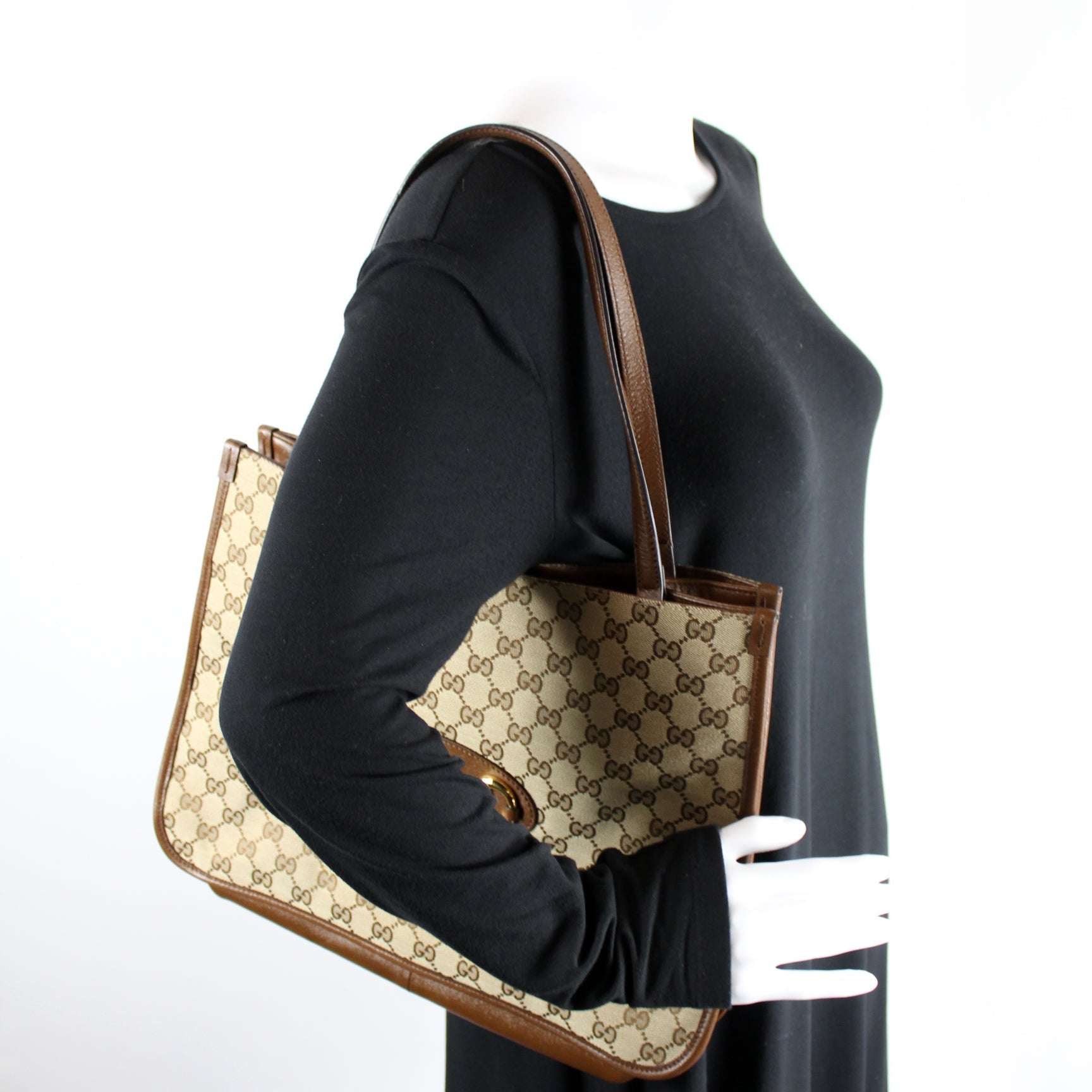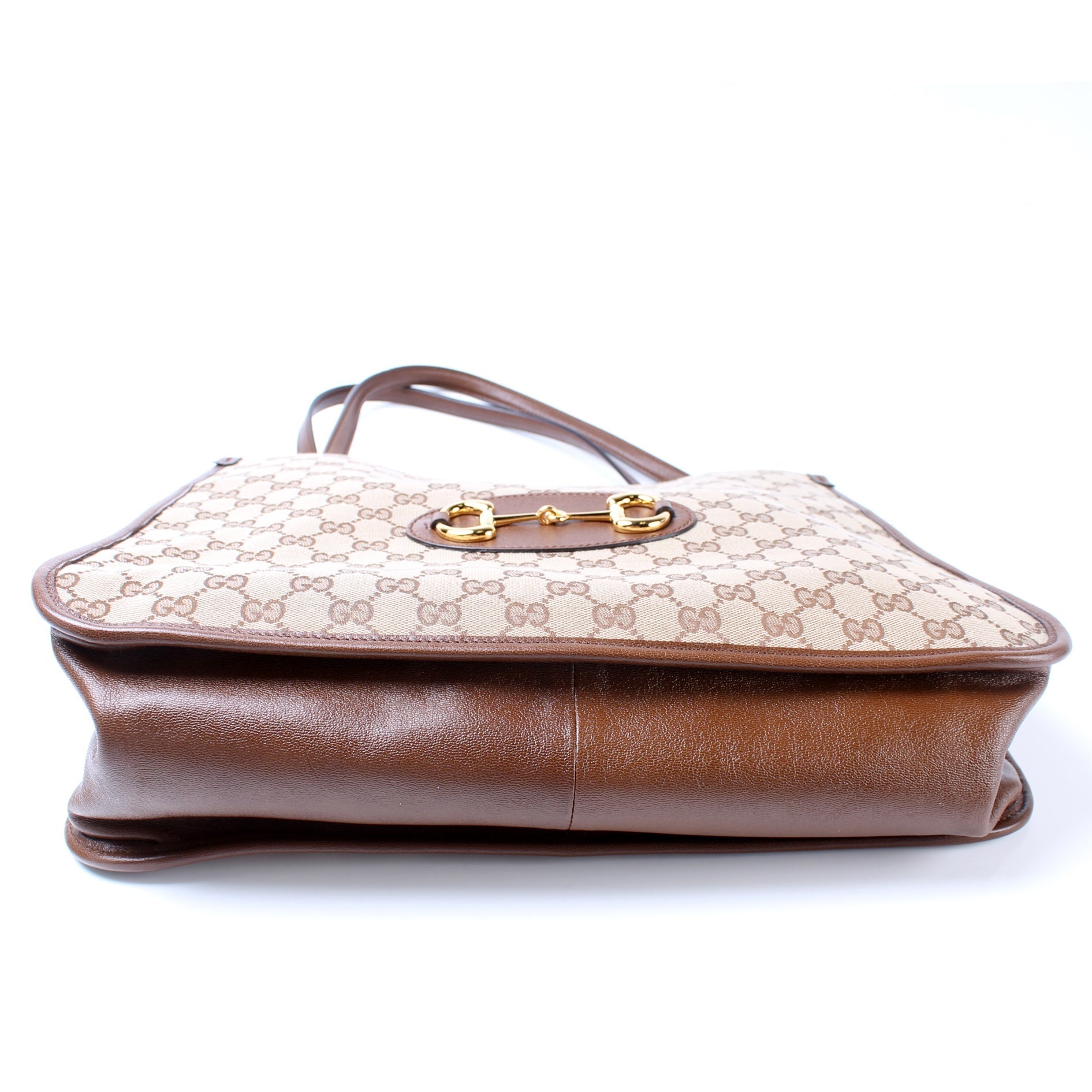This Gucci 1955 Horsebit Toteis eye catching bag. The exterior is in the classic Gucci GG canvas.