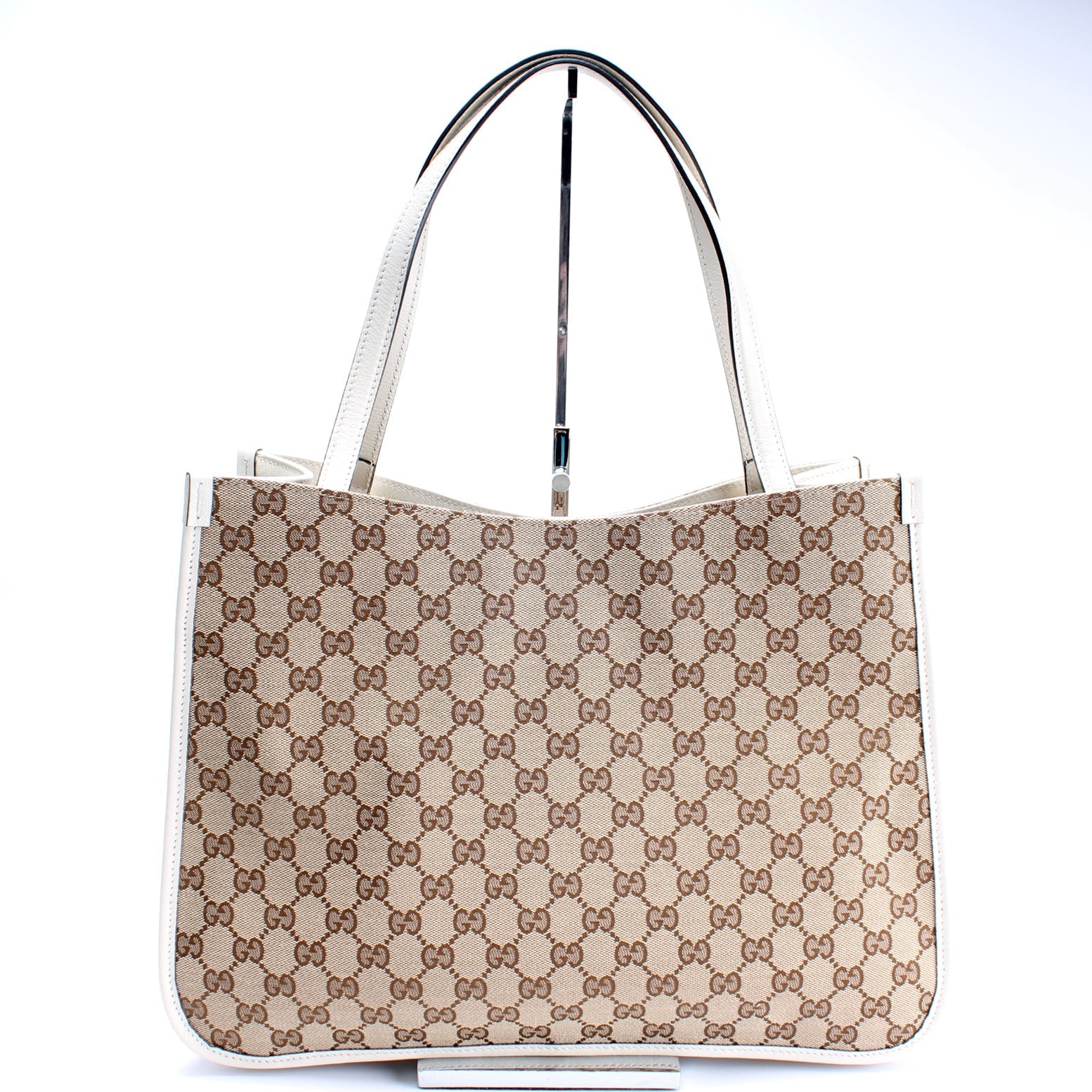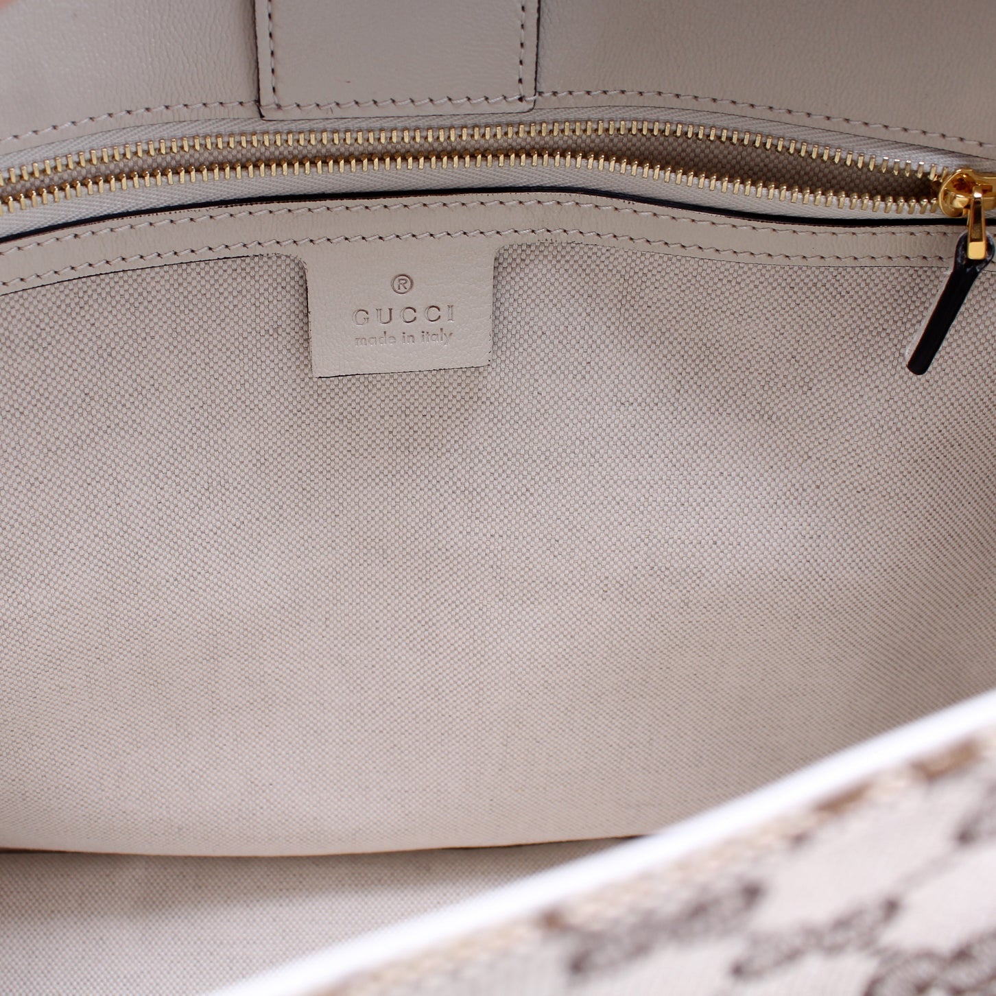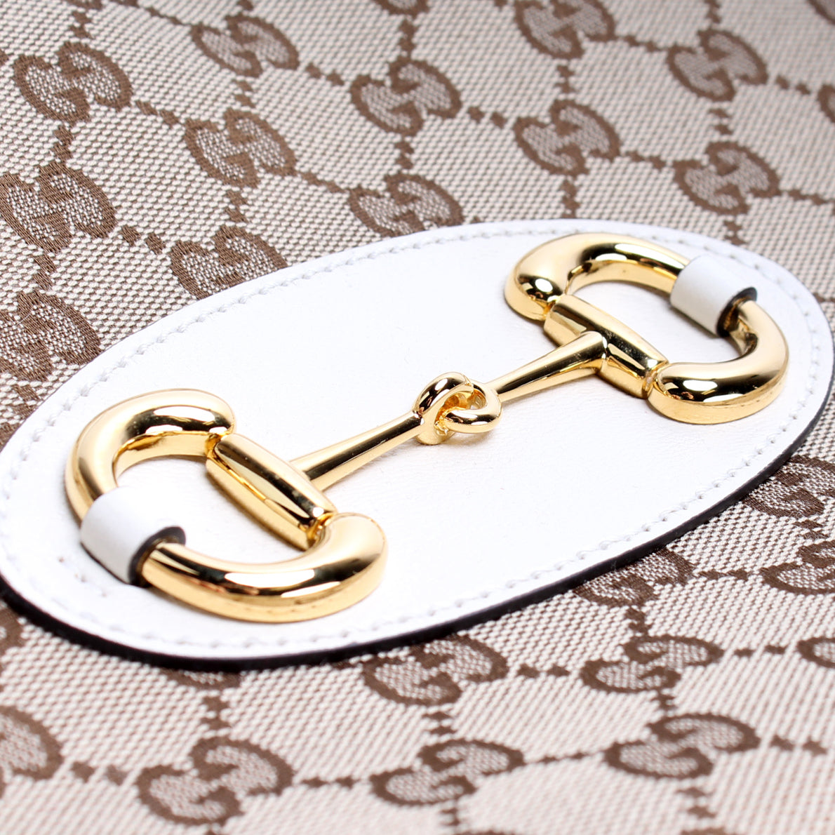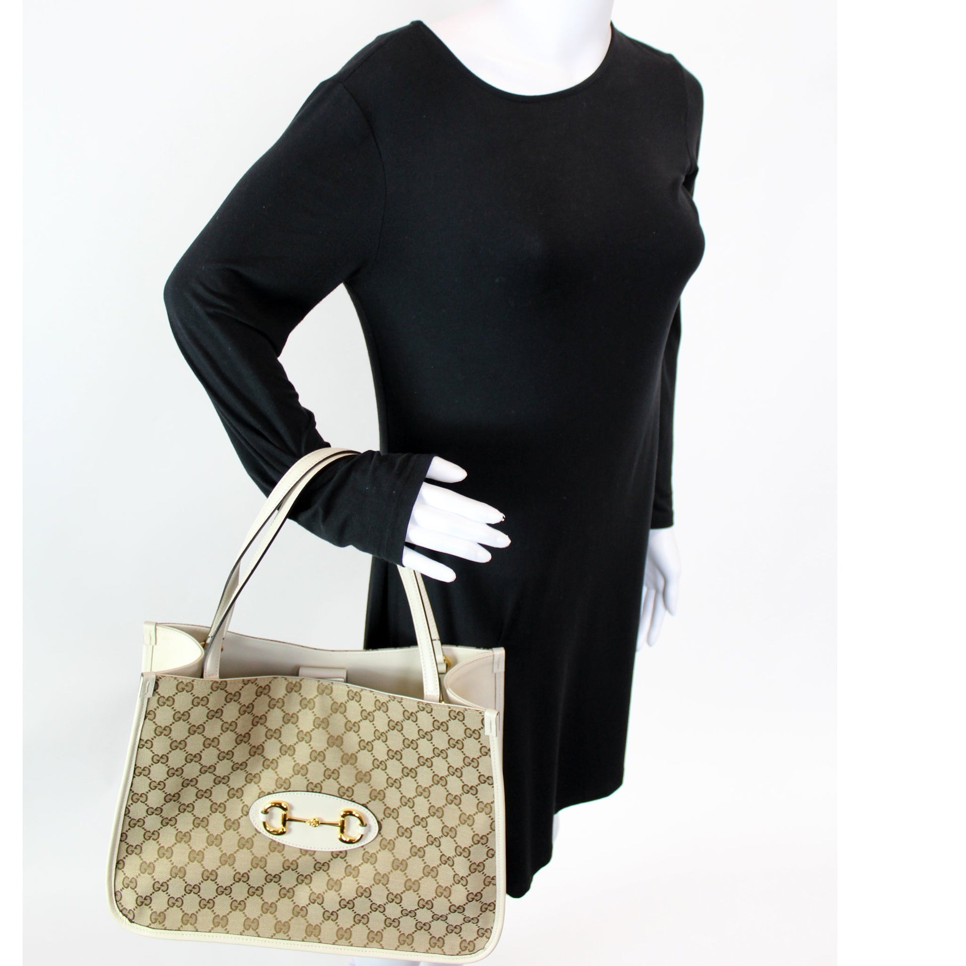 This Gucci 1955 Horsebit Toteis eye catching bag. The exterior is in the classic Gucci GG canvas.