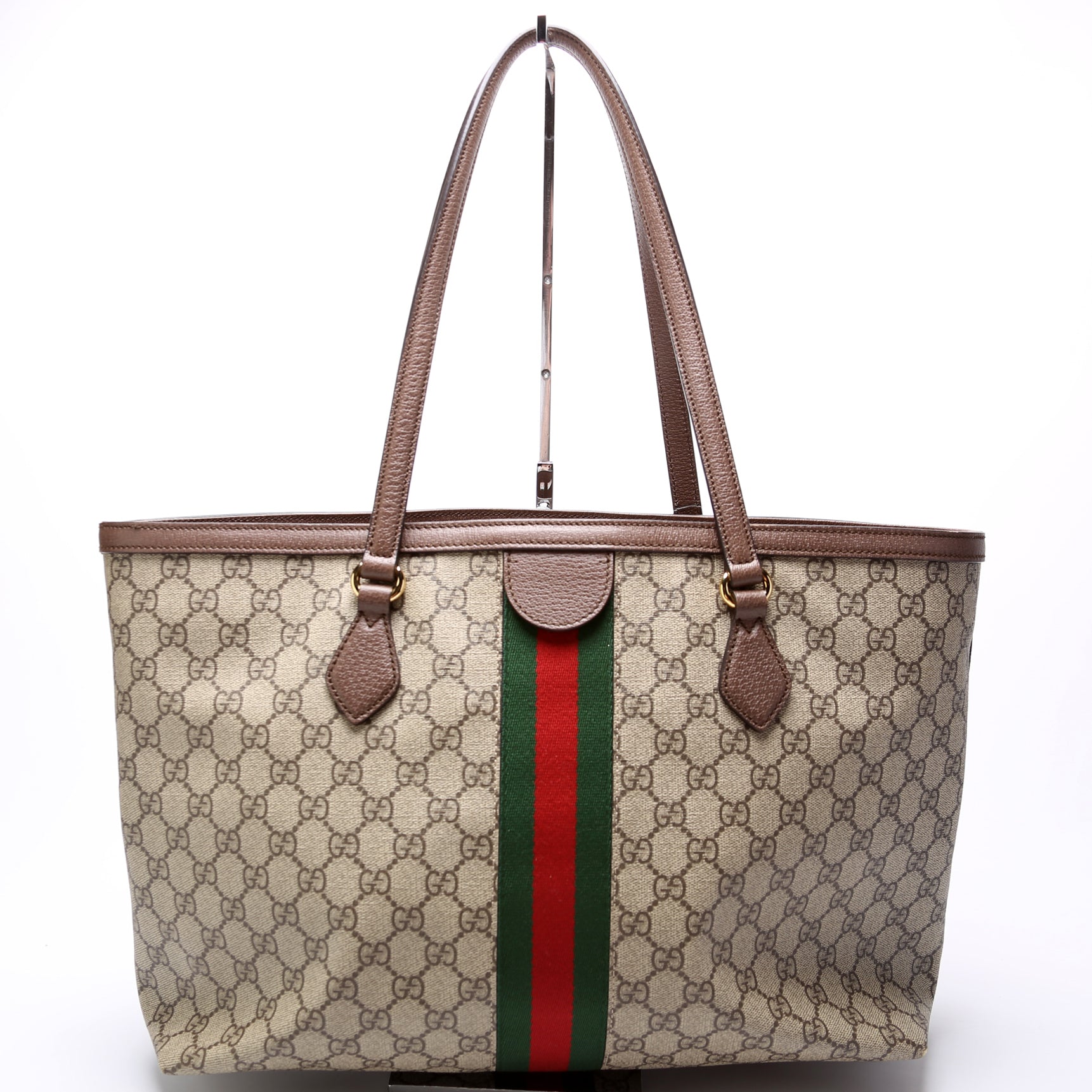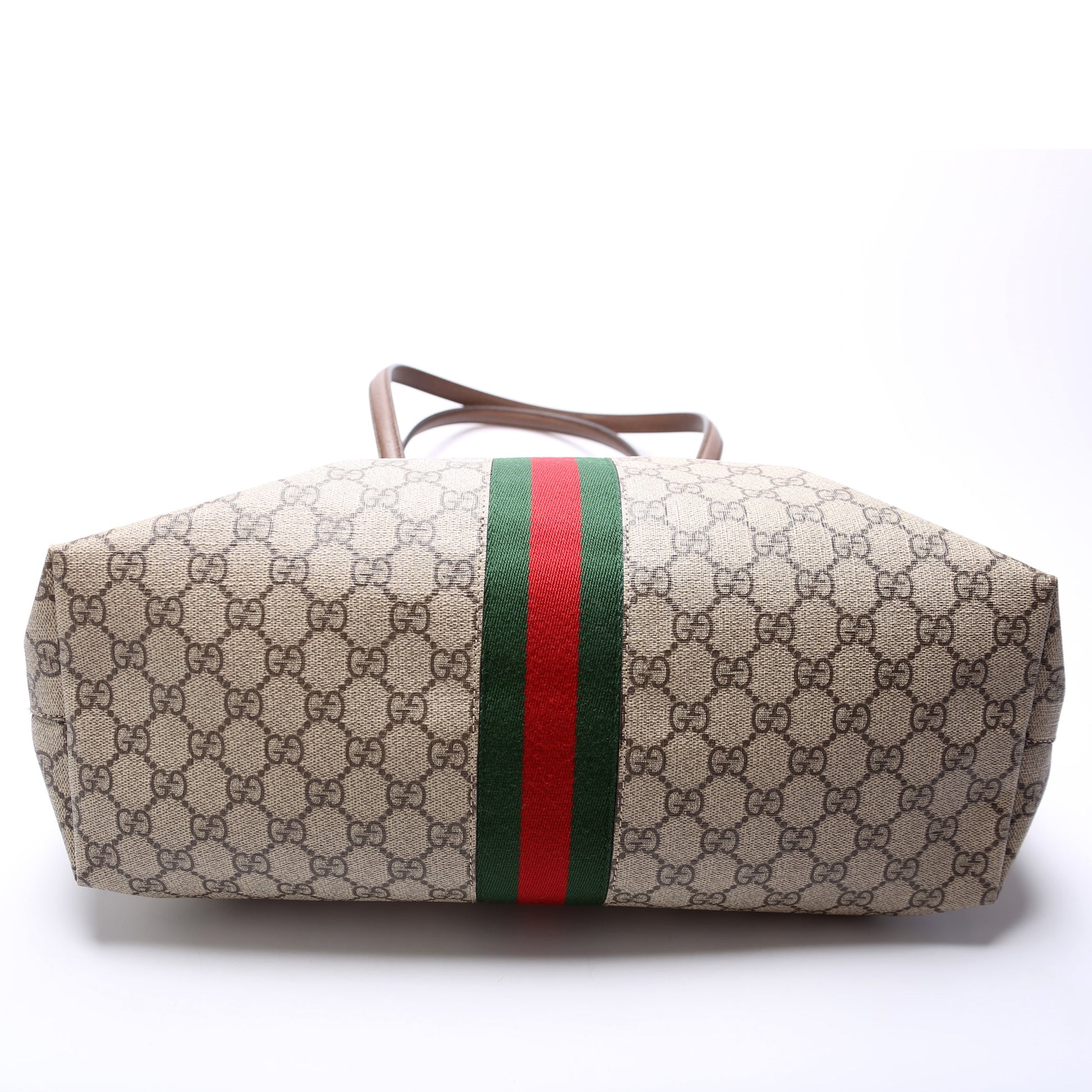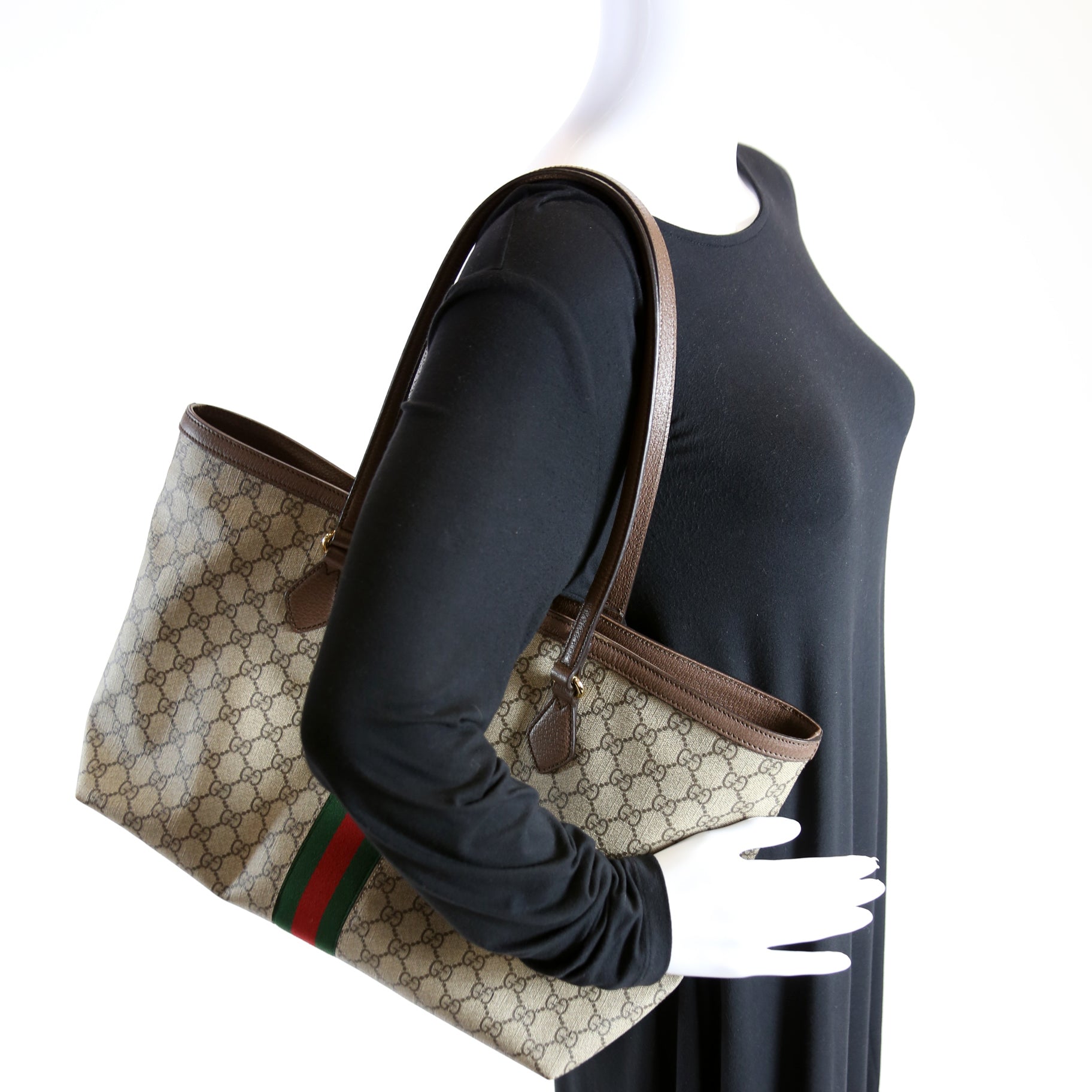 This Gucci Ophidia Tote is d 100% . The exterior is in the classic Gucci GG Supreme coated canvas.