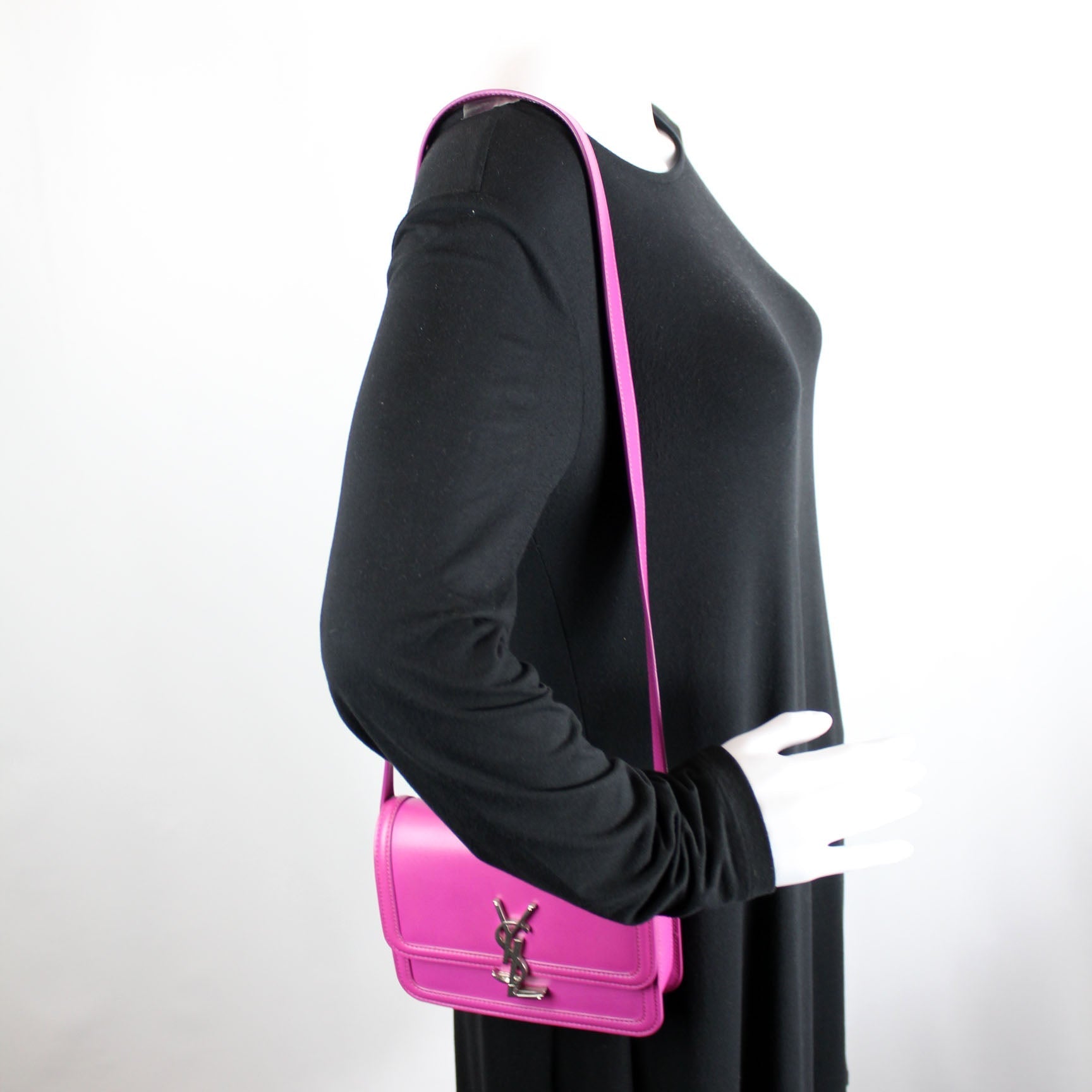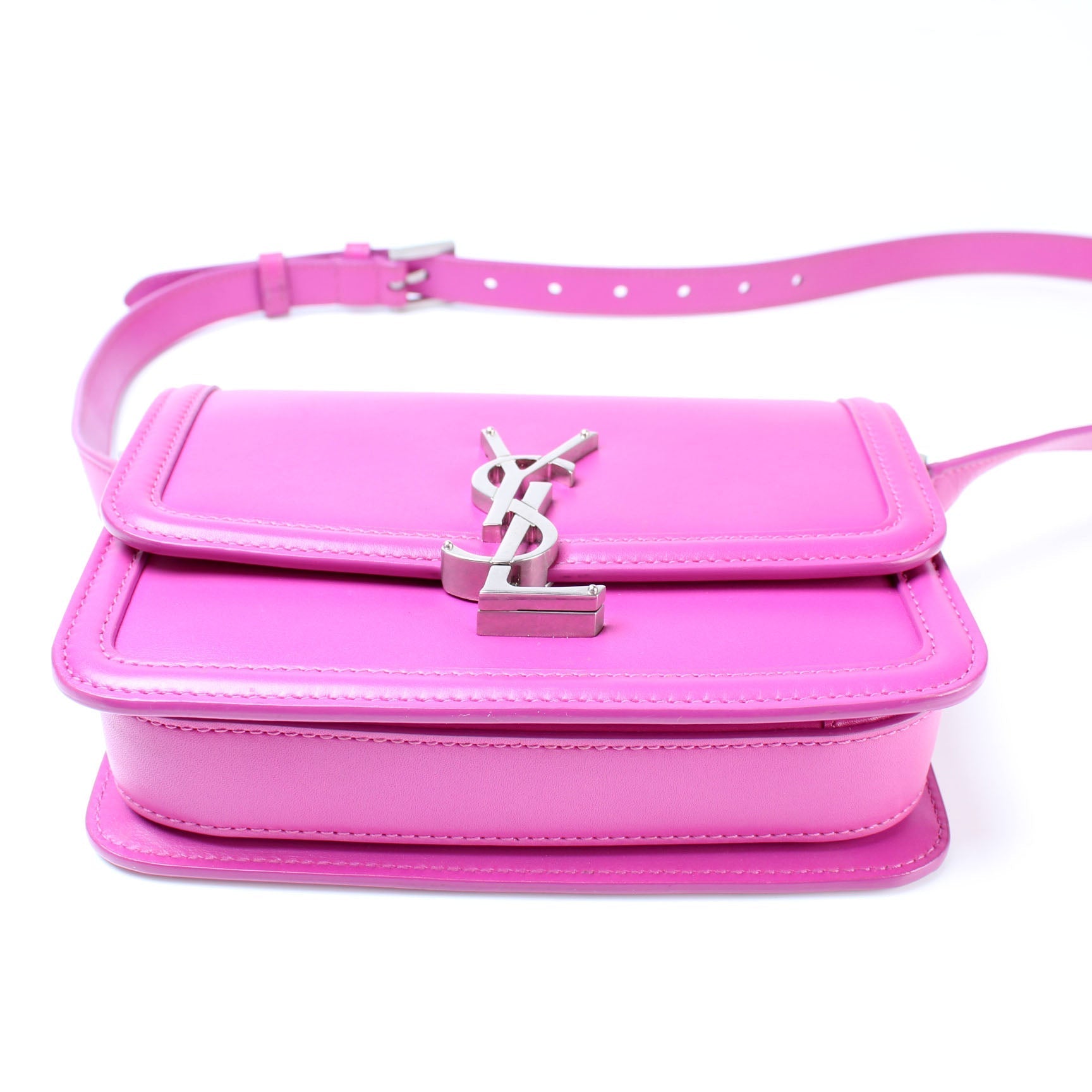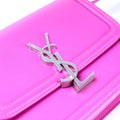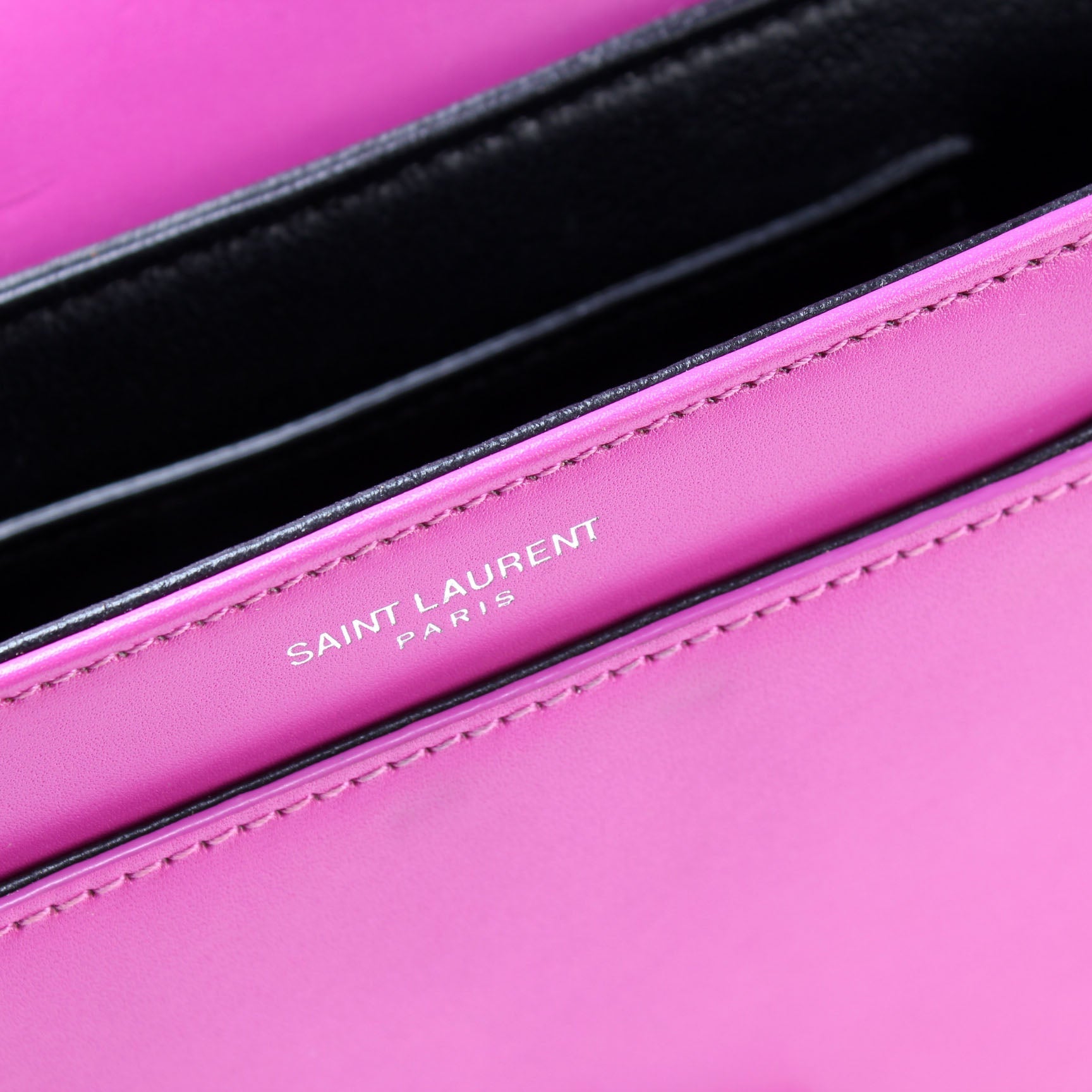 This Saint Laurent Solferino Satchel Smallis eye catching bag. The exterior is in calfskin leather.