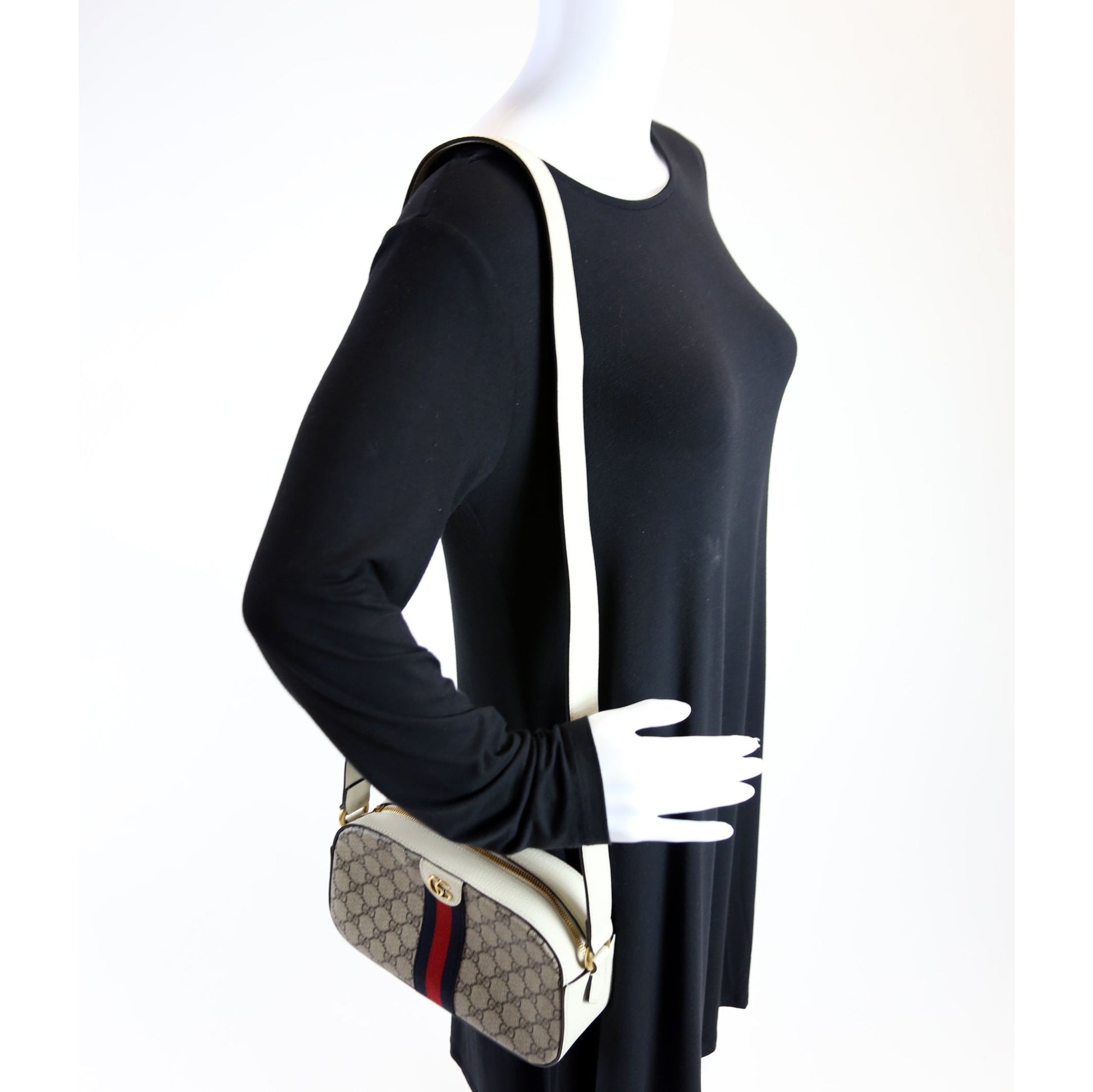 This Gucci Ophidia GG Shoulder Bag is d 100% . The exterior is in the classic Gucci GG Supreme coated canvas.