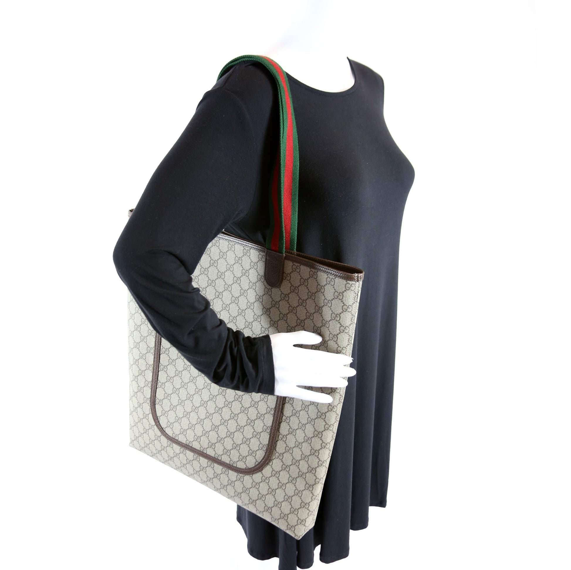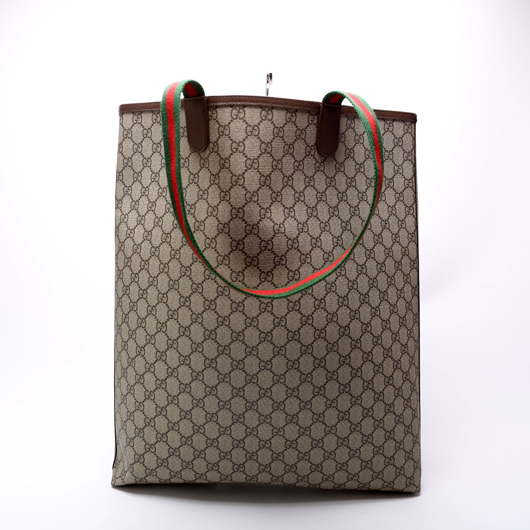 This Gucci GG Ophidia Large Toteis eye catching bag. The exterior is in the classic Gucci GG Supreme coated canvas.