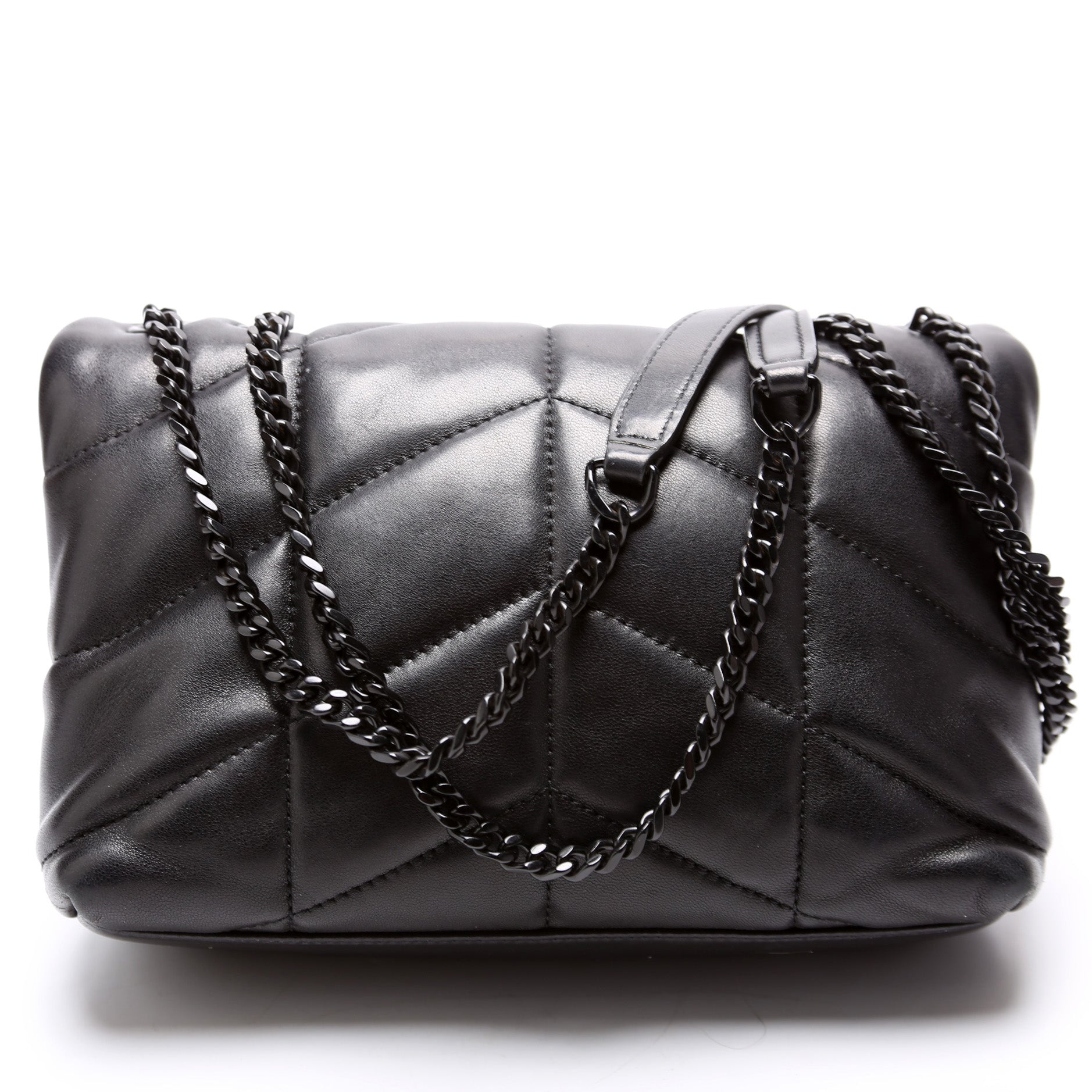 Handle: The chain strap is free of any rips or cracks. The leather has light scuffs.