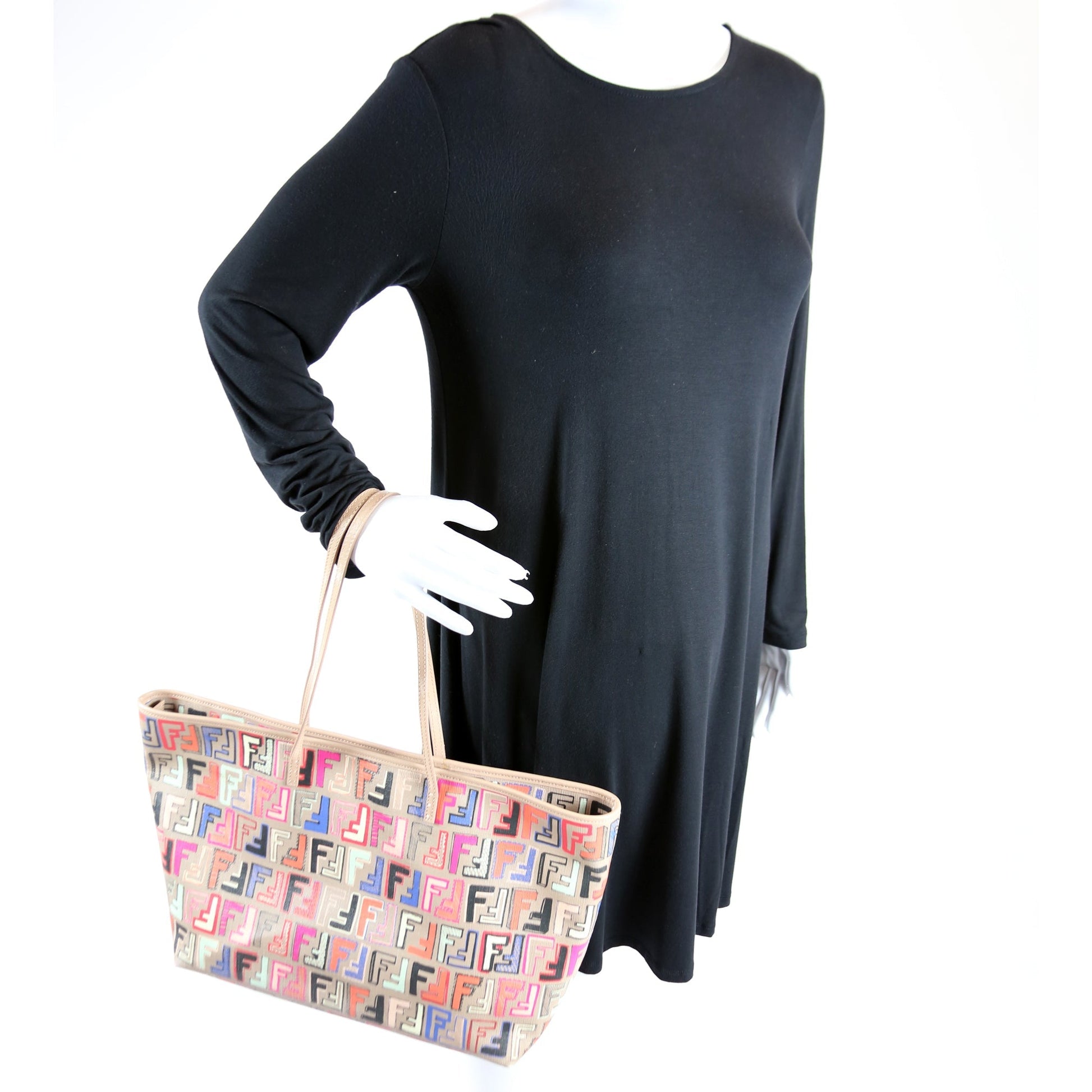 This Fendi Coated Zucca Zip Toteis eye catching bag. The exterior is in the classic Fendi Zucca coated canvas.