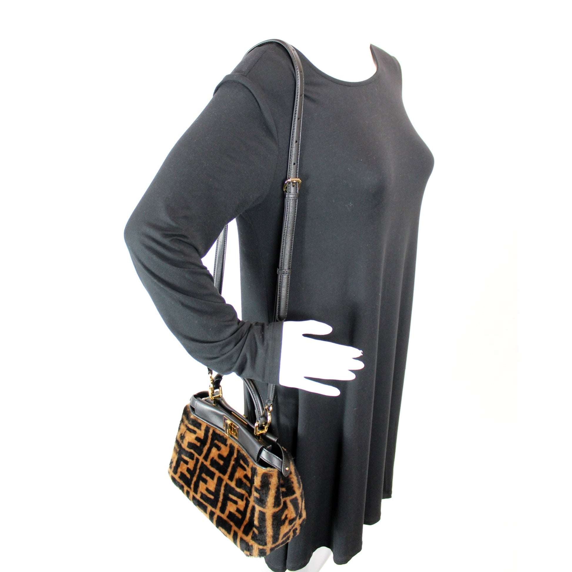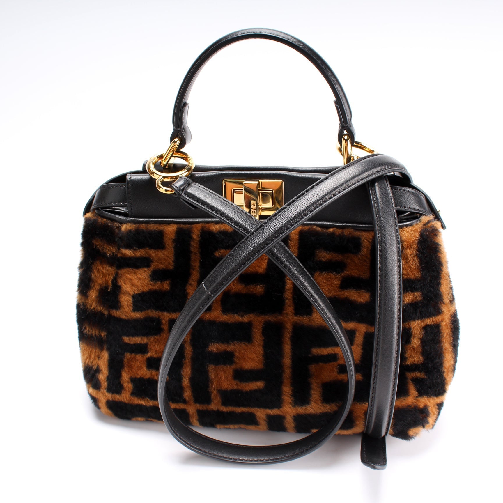 This Fendi Peekaboo FF Shearling Miniis eye catching bag.