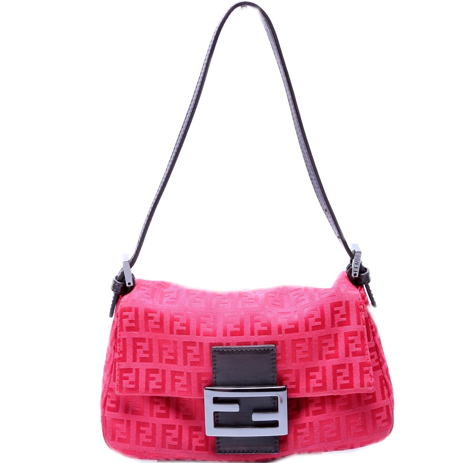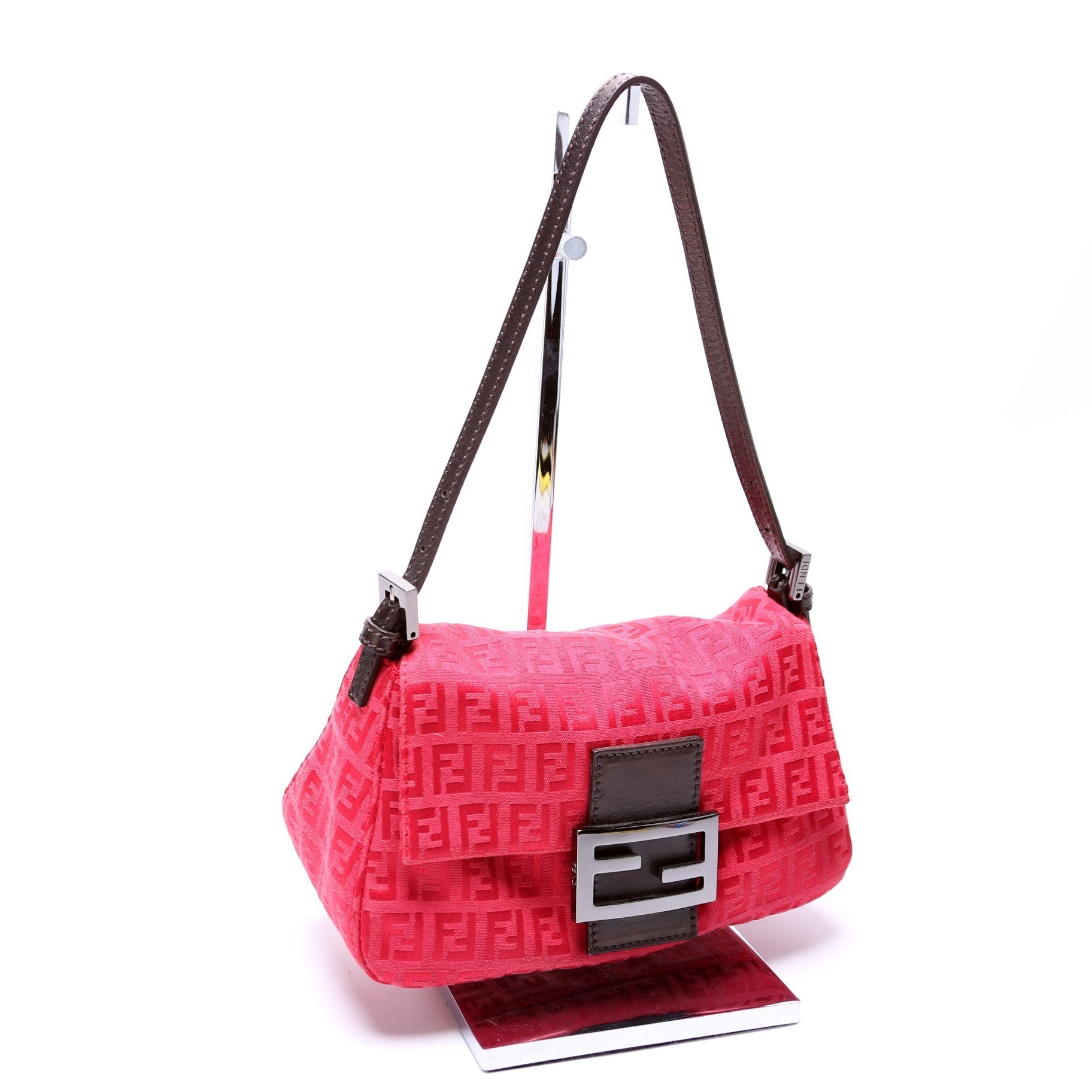 This Fendi Mini Mama Baguetteis eye catching bag. The exterior is in the classic Fendi Zucchino canvas.