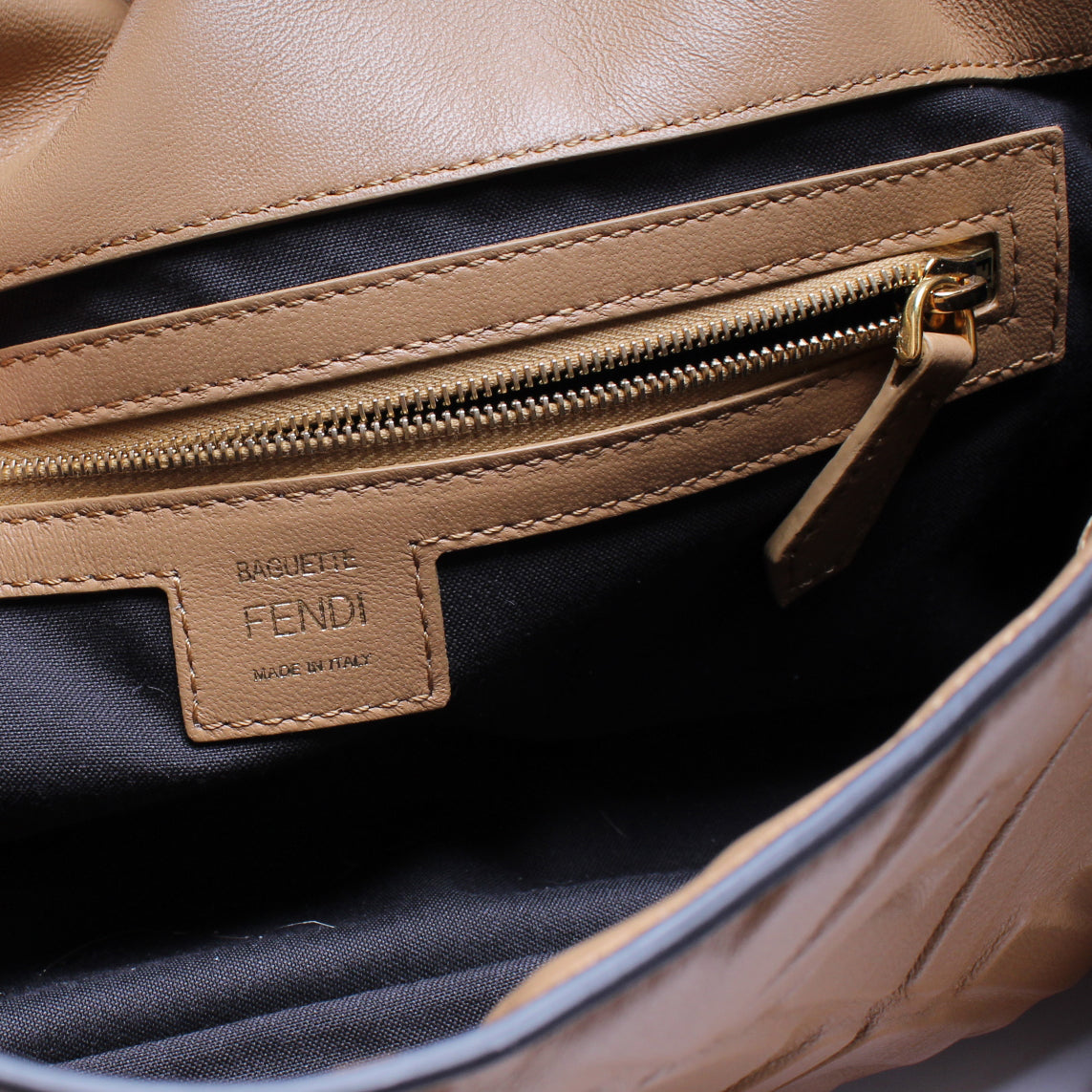 This Fendi Baguette FF Embossed Nappais eye catching bag.