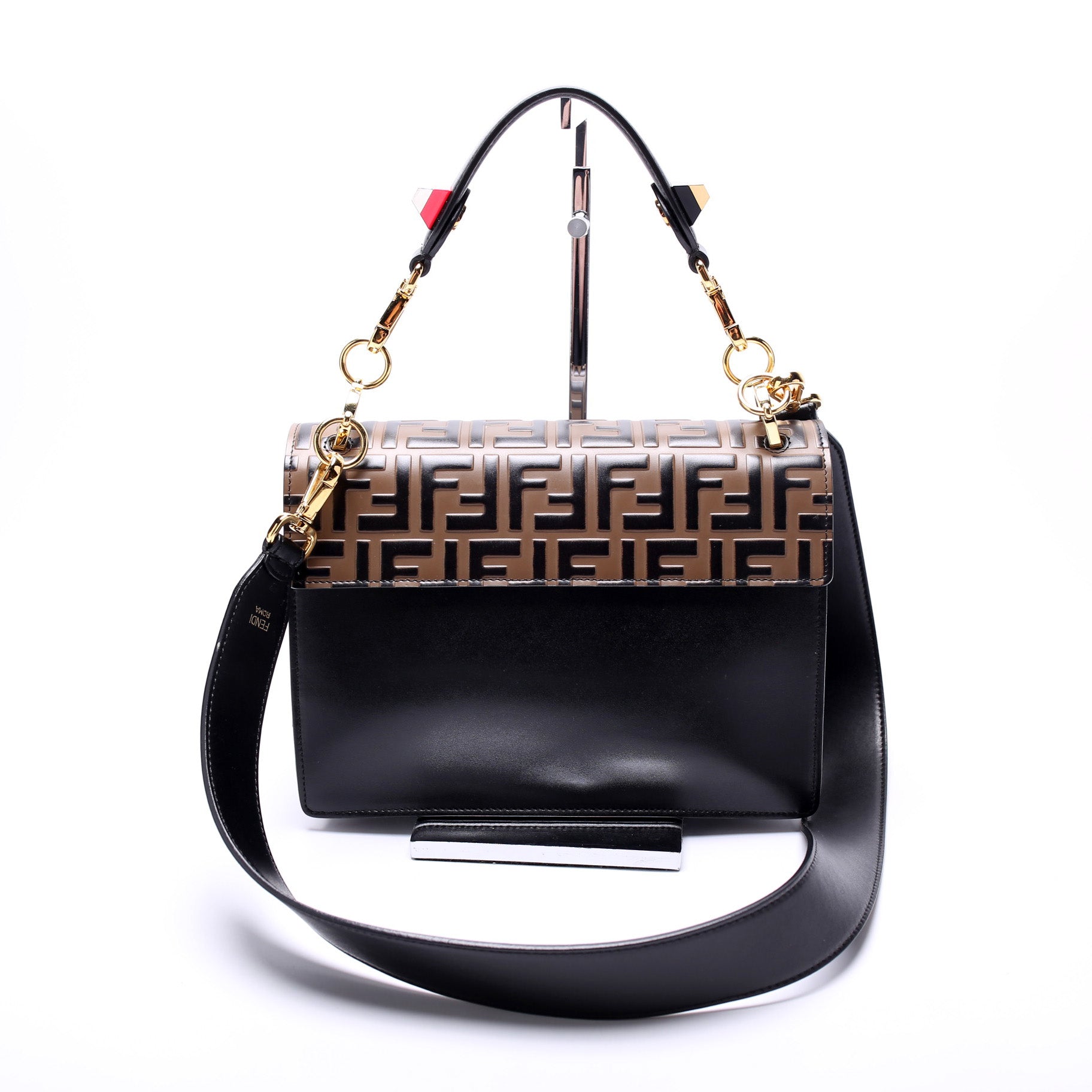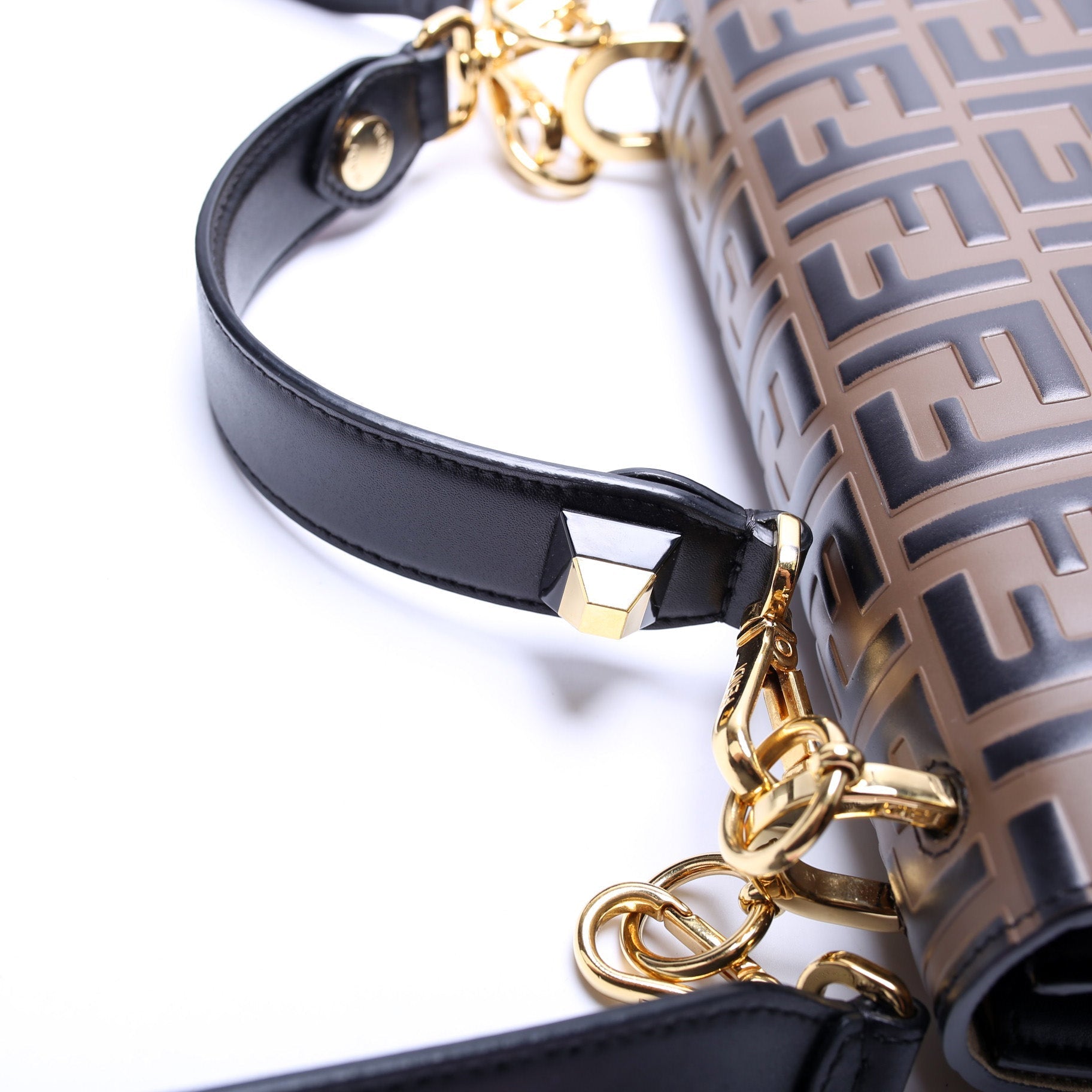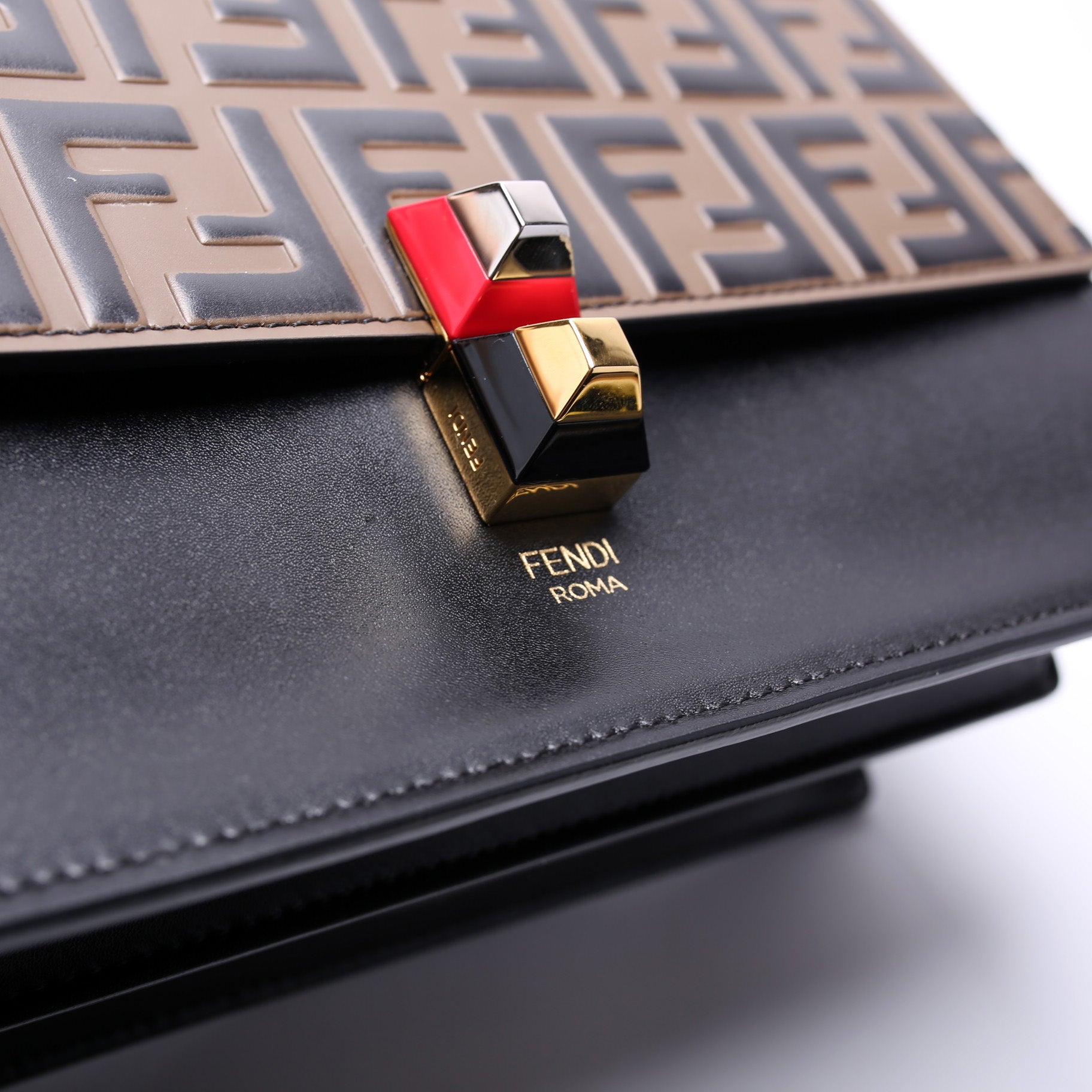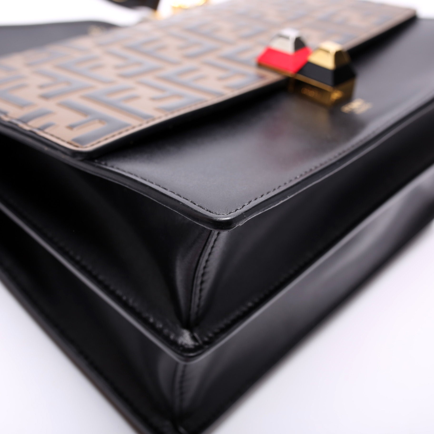 This Fendi Kan I Shoulder Bagis eye catching bag. The exterior is in the classic Fendi FF leather.