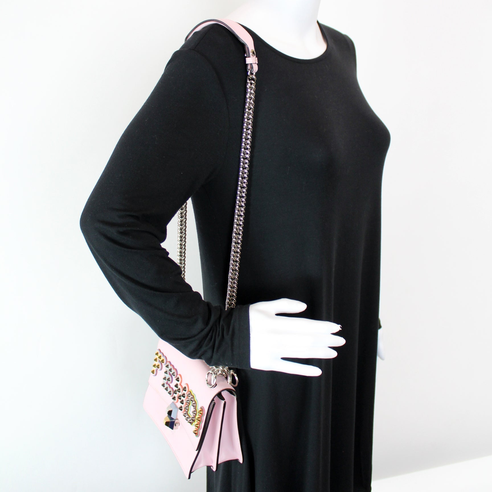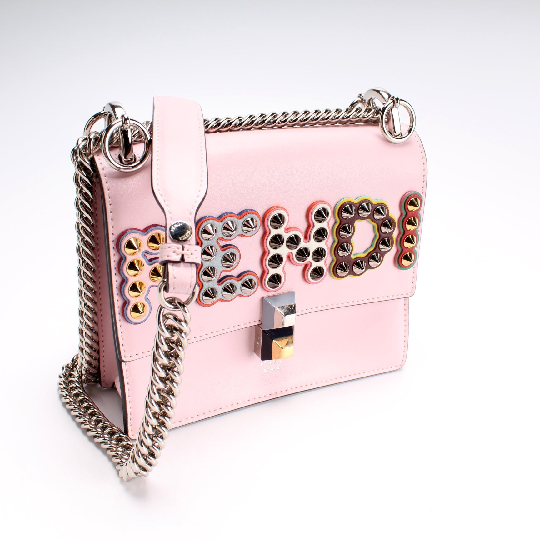 This Fendi Kan I Leather Chain Bagis eye catching bag. The exterior is in the classic Fendi Smooth leather.